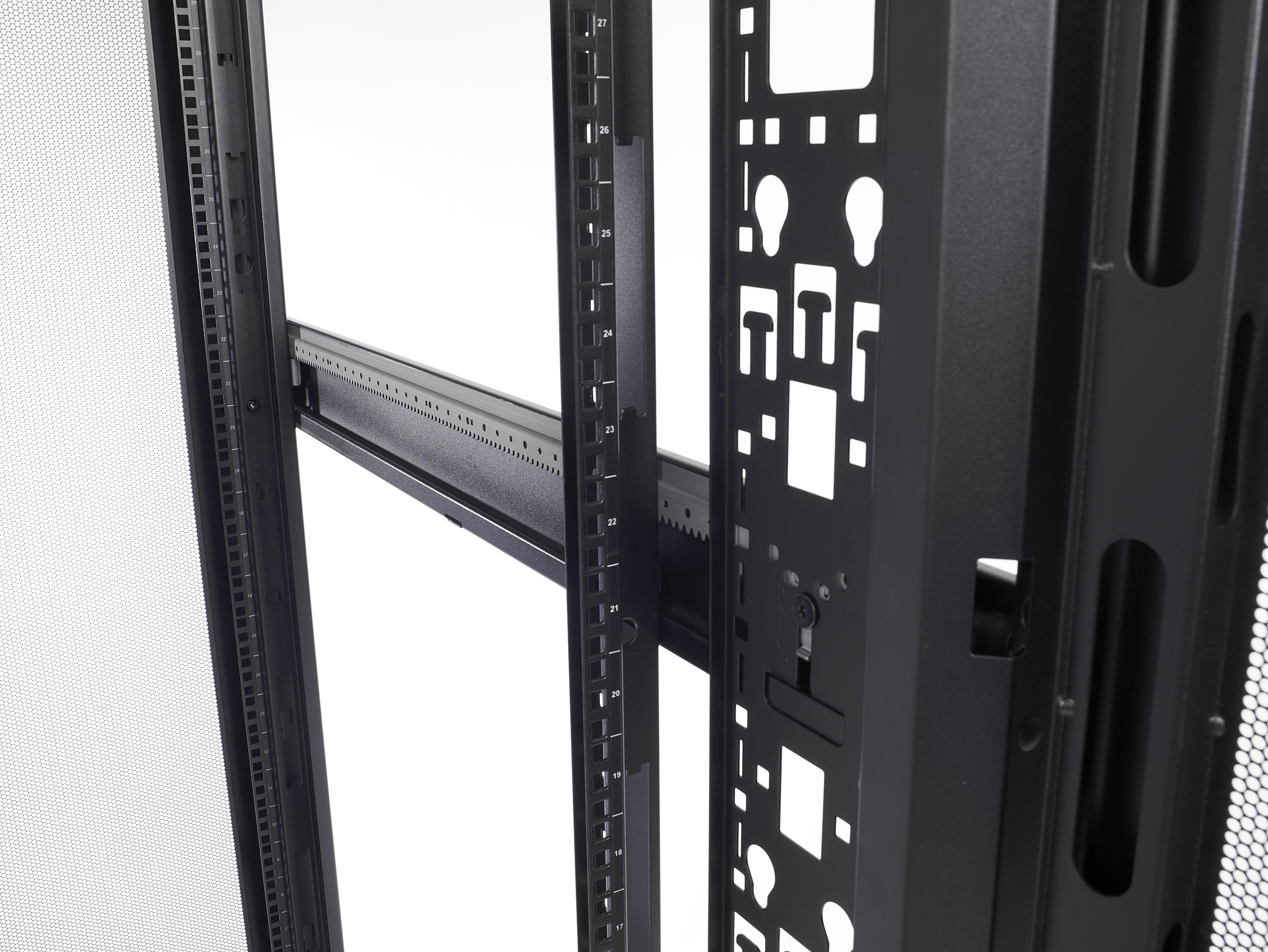 - Adjustable mounting rails and ample internal space to accommodate diverse server and networking devices.