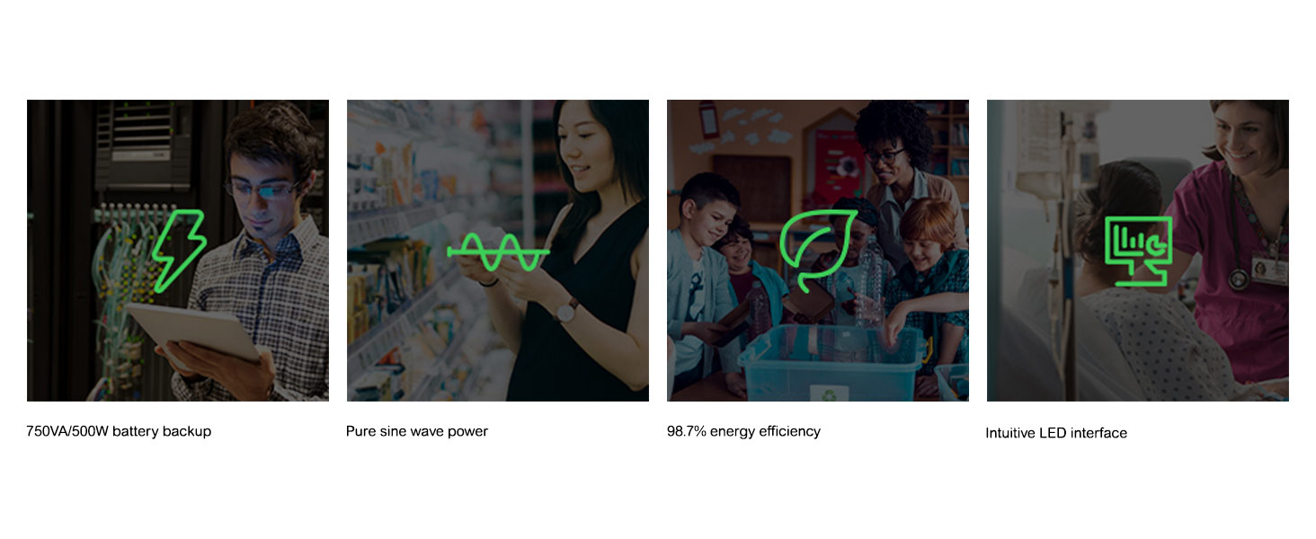 - Provides 750VA/450W power backup to protect servers, networking equipment, and workstations during outages.