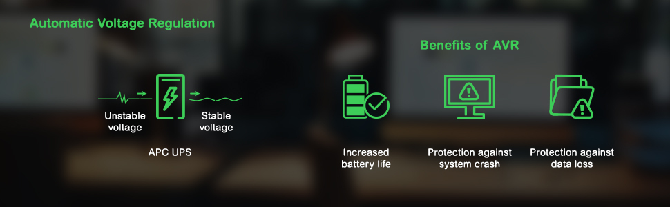 - Automatic Voltage Regulation (AVR) stabilises voltage fluctuations, ensuring consistent power quality without draining the battery.