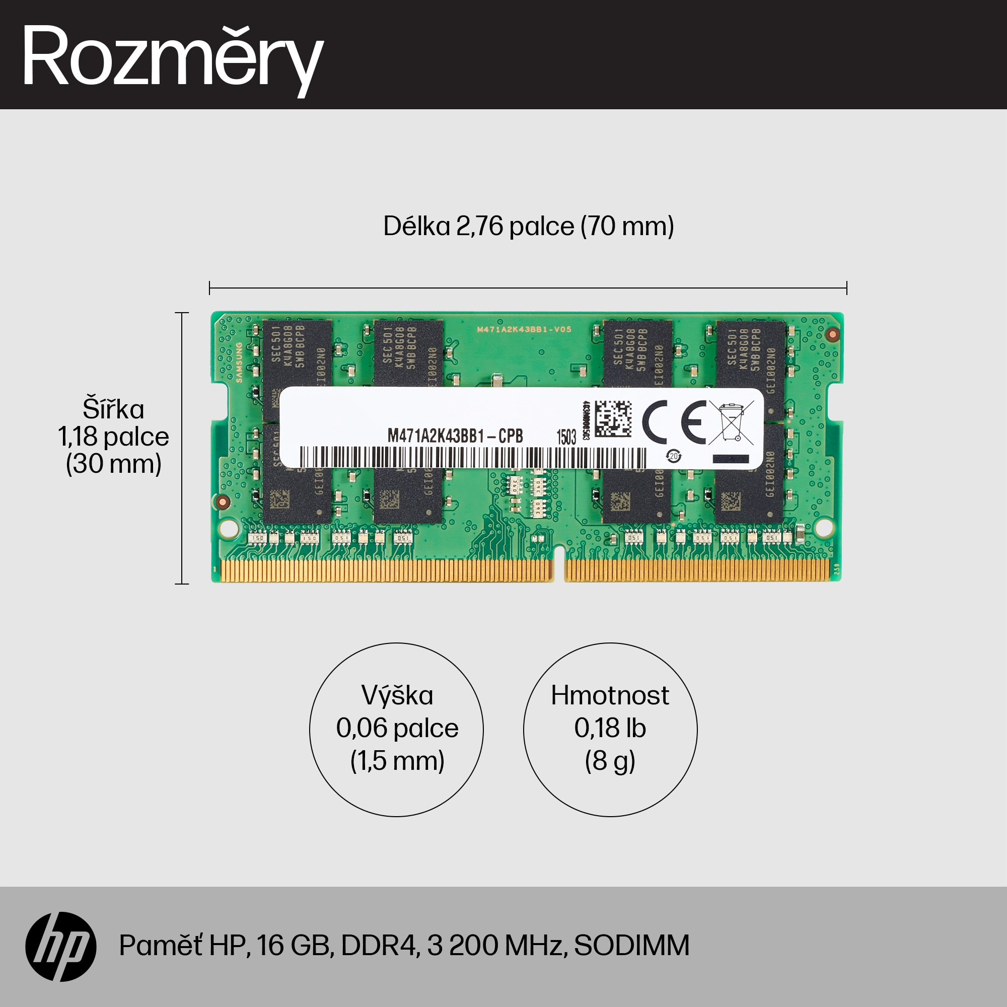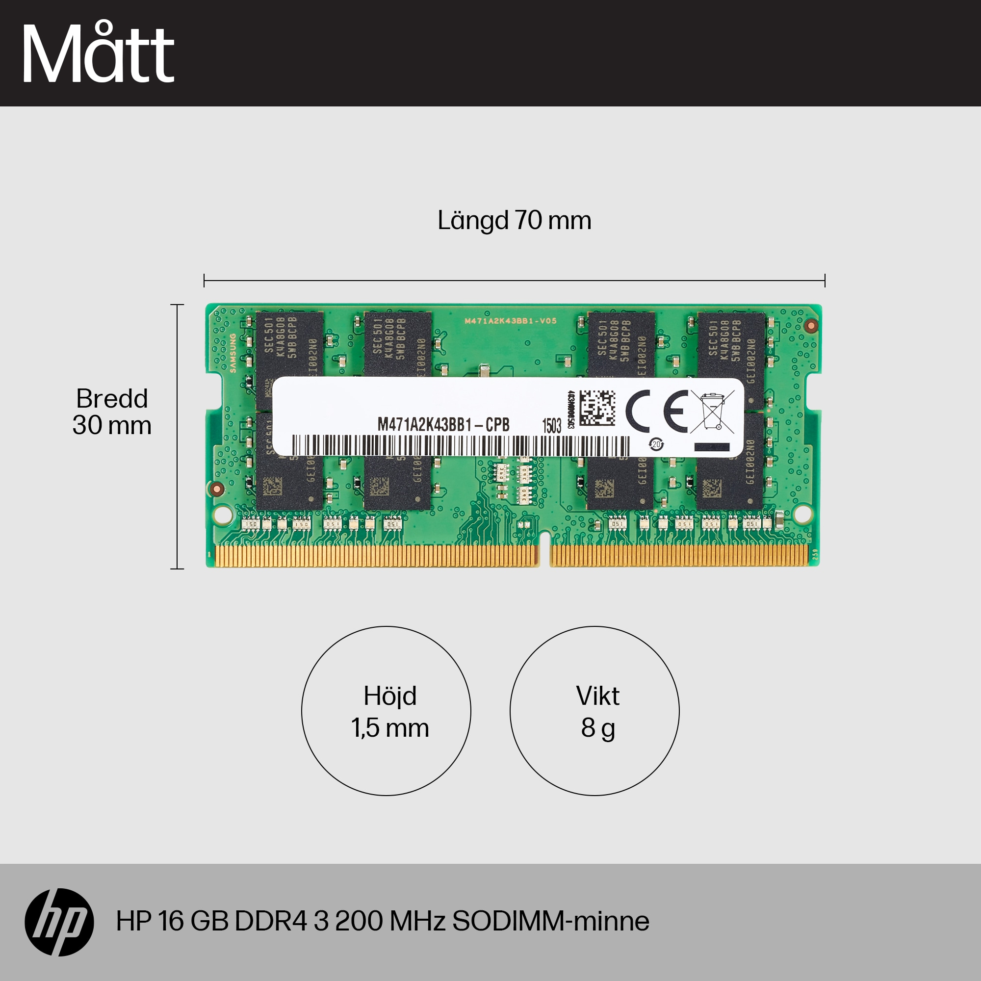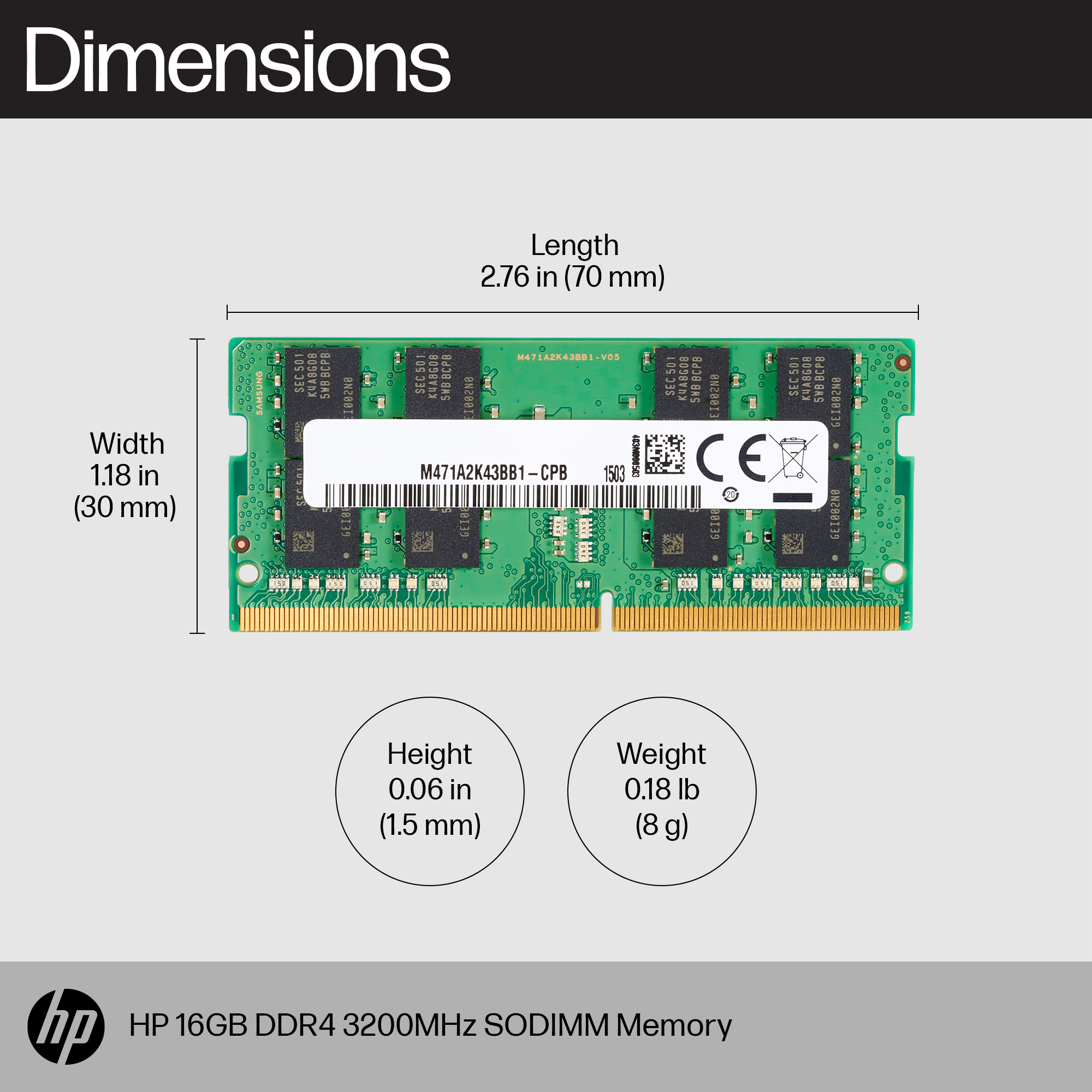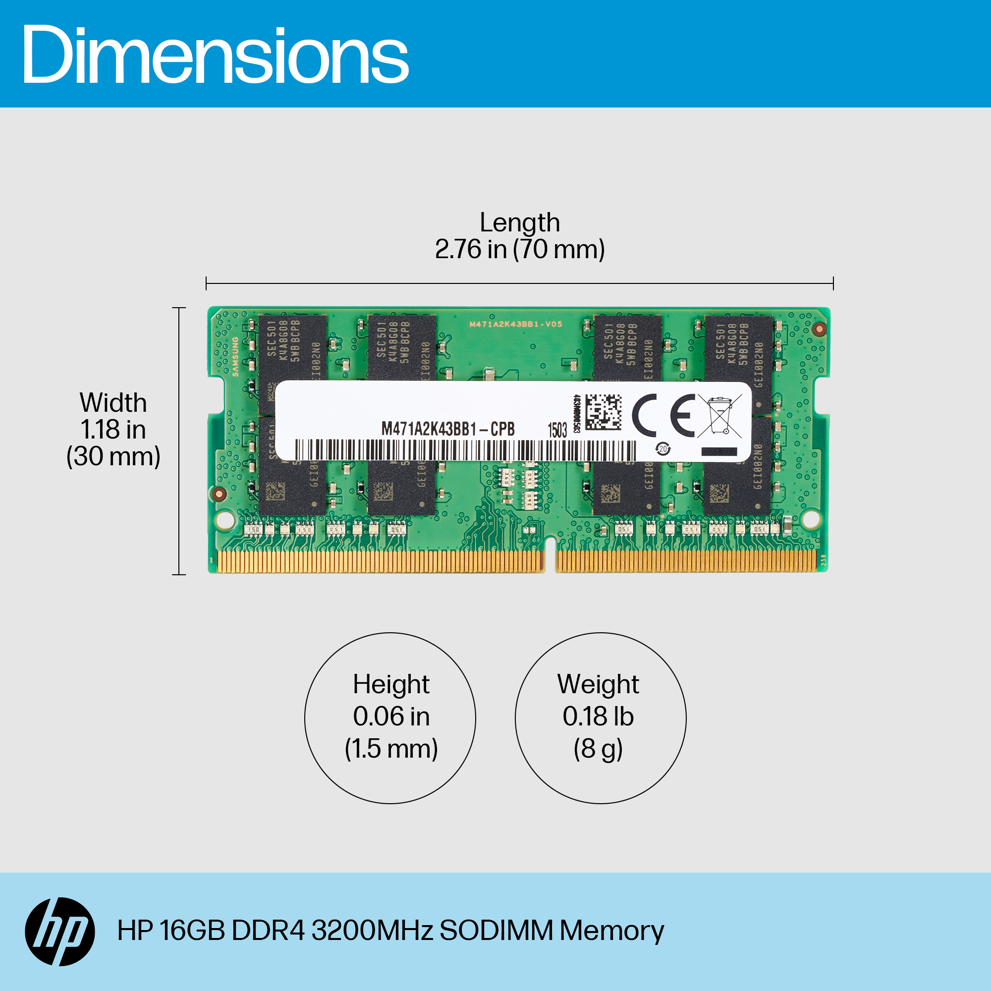 The HP 16GB DDR4 3200 SODIMM Memory memory module features a compact and sleek design tailored for space-constrained devices. Its robust build quality reflects HP’s commitment to durability and performance. The module’s low-profile form factor ensures easy installation without compromising airflow or device aesthetics. Overall, it blends seamlessly into professional setups, supporting a clean and efficient workspace.