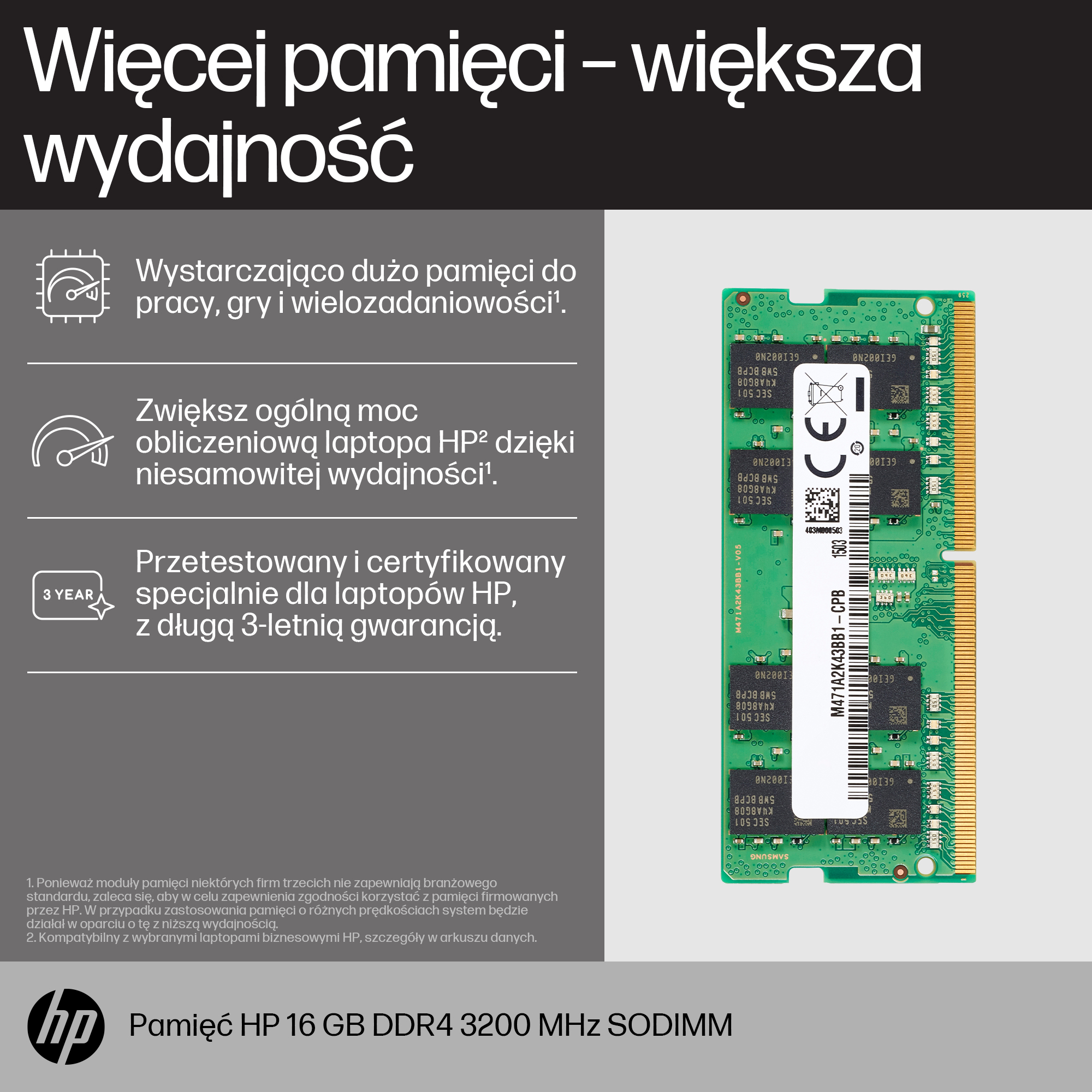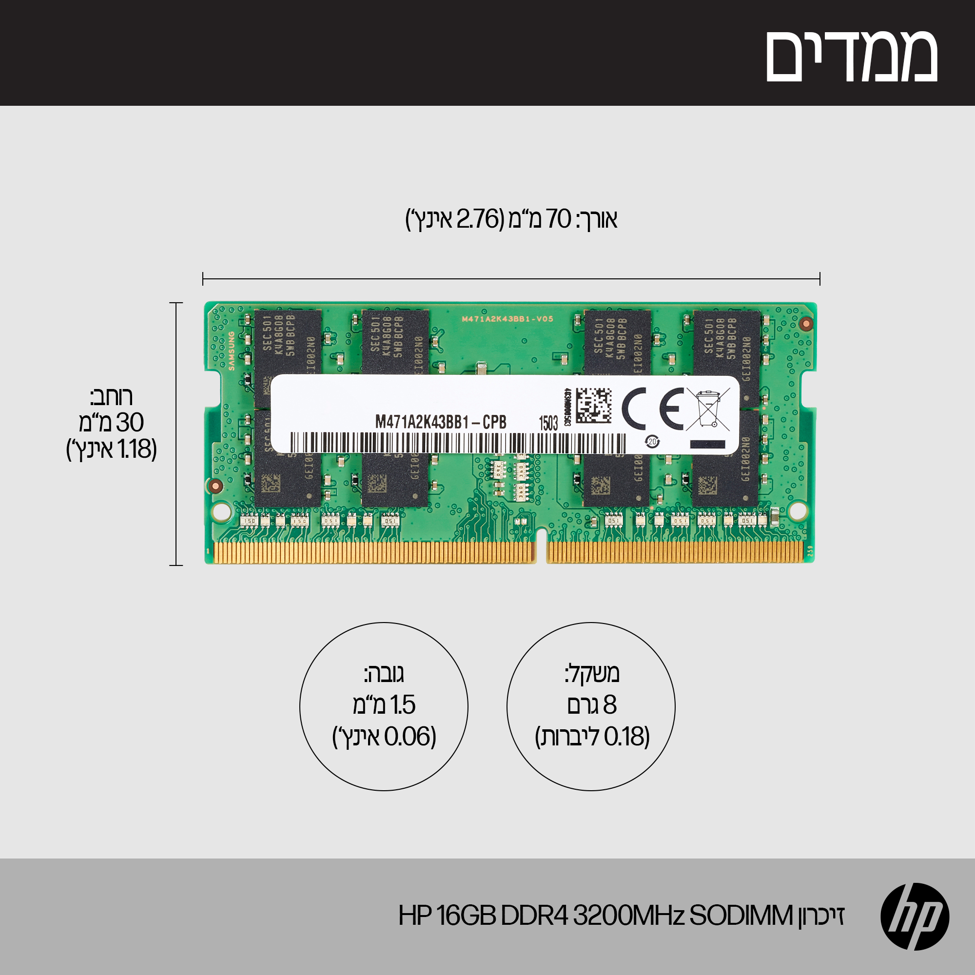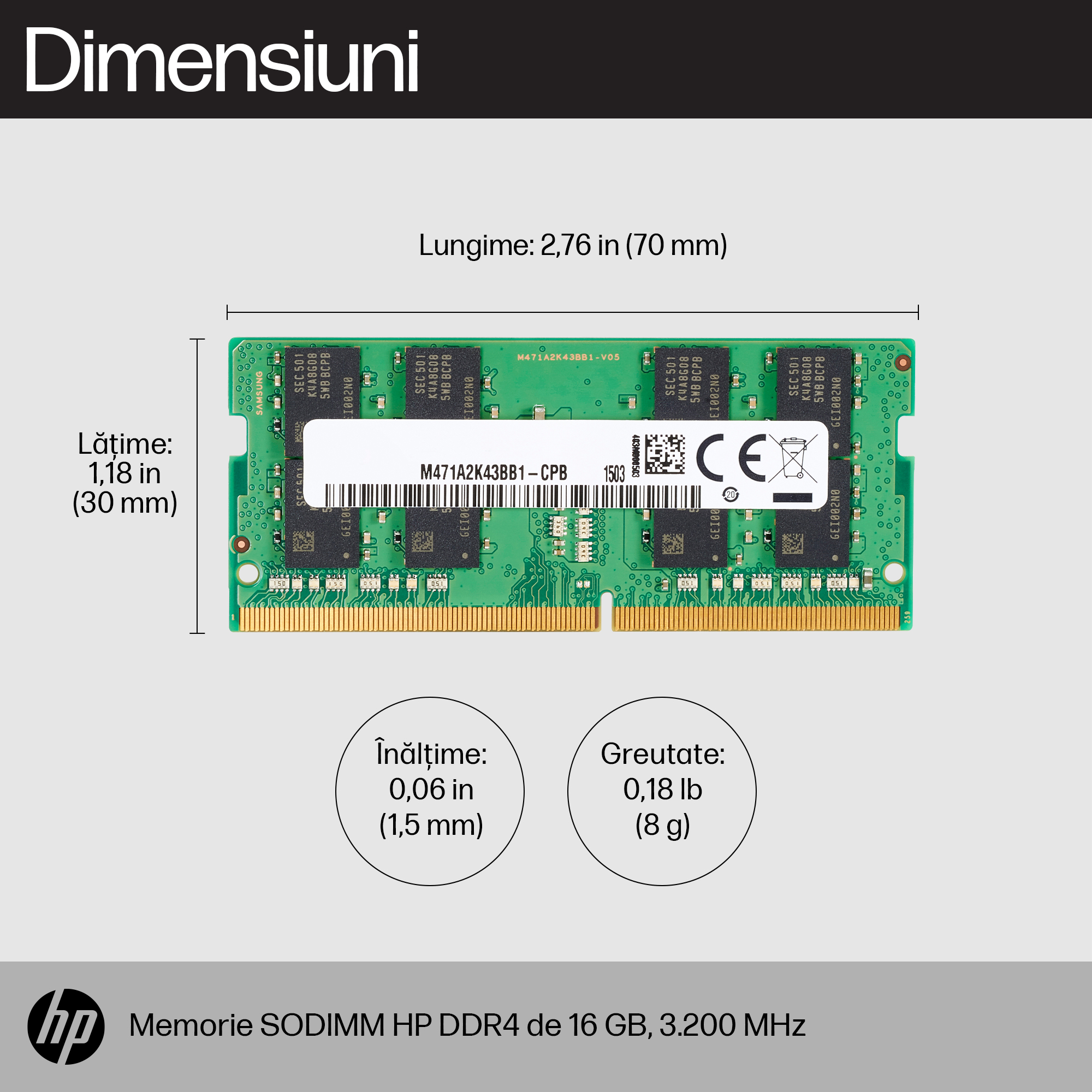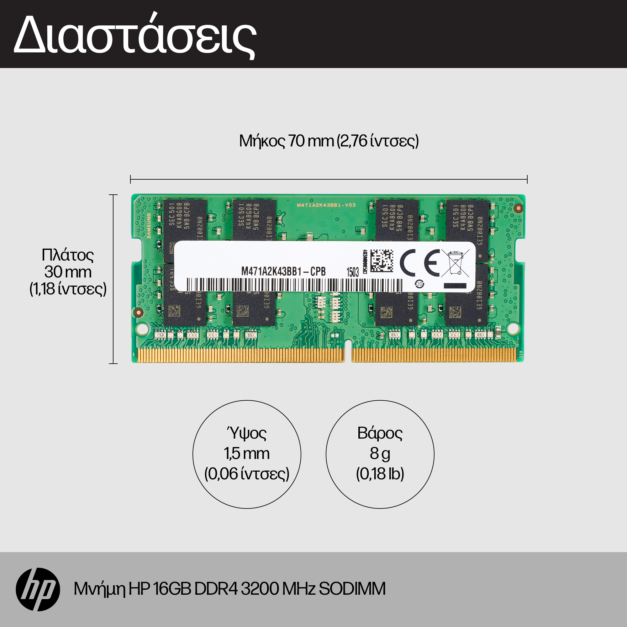 The HP 16GB DDR4 3200 SODIMM Memory memory module features a compact and sleek design tailored for space-constrained devices. Its robust build quality reflects HP’s commitment to durability and performance. The module’s low-profile form factor ensures easy installation without compromising airflow or device aesthetics. Overall, it blends seamlessly into professional setups, supporting a clean and efficient workspace.