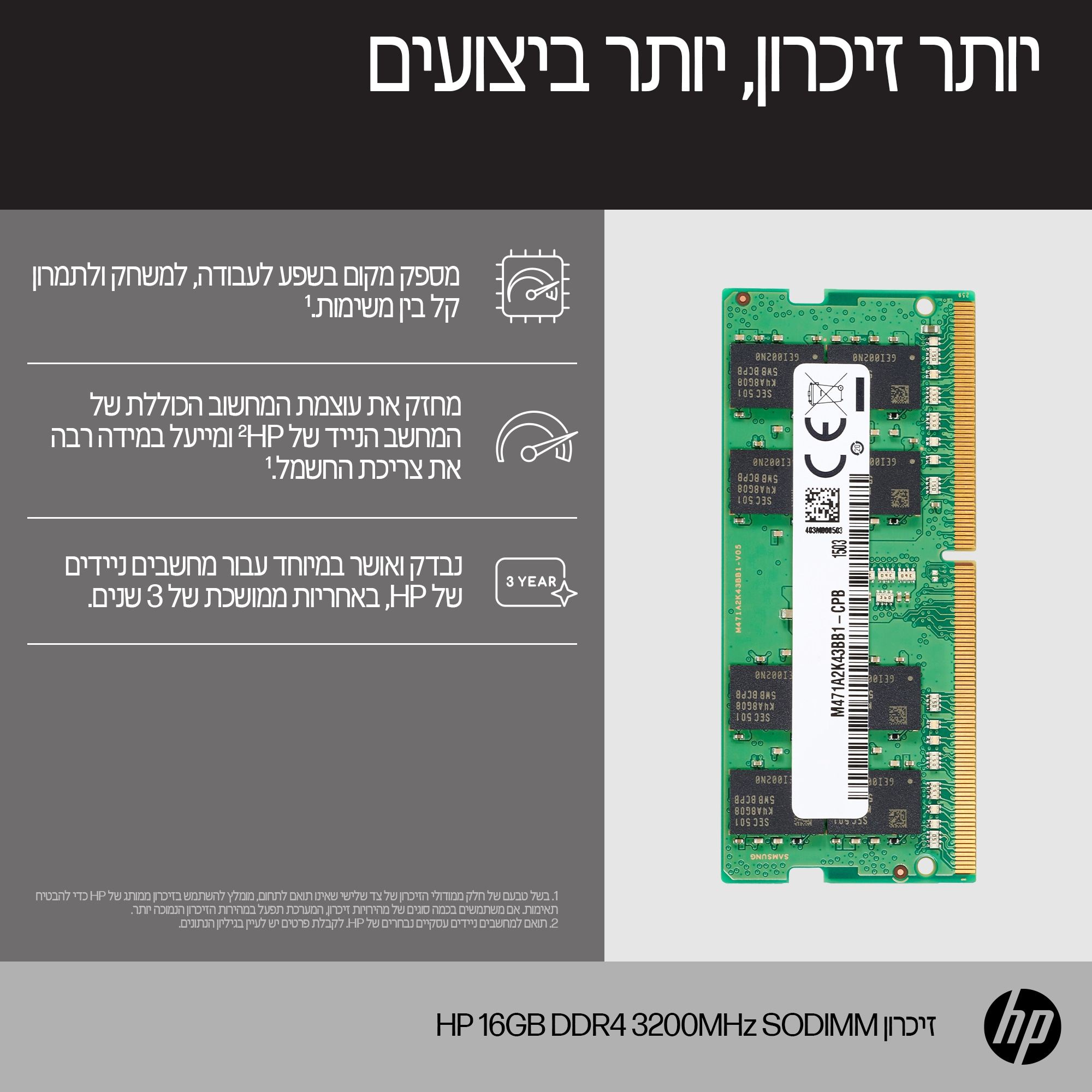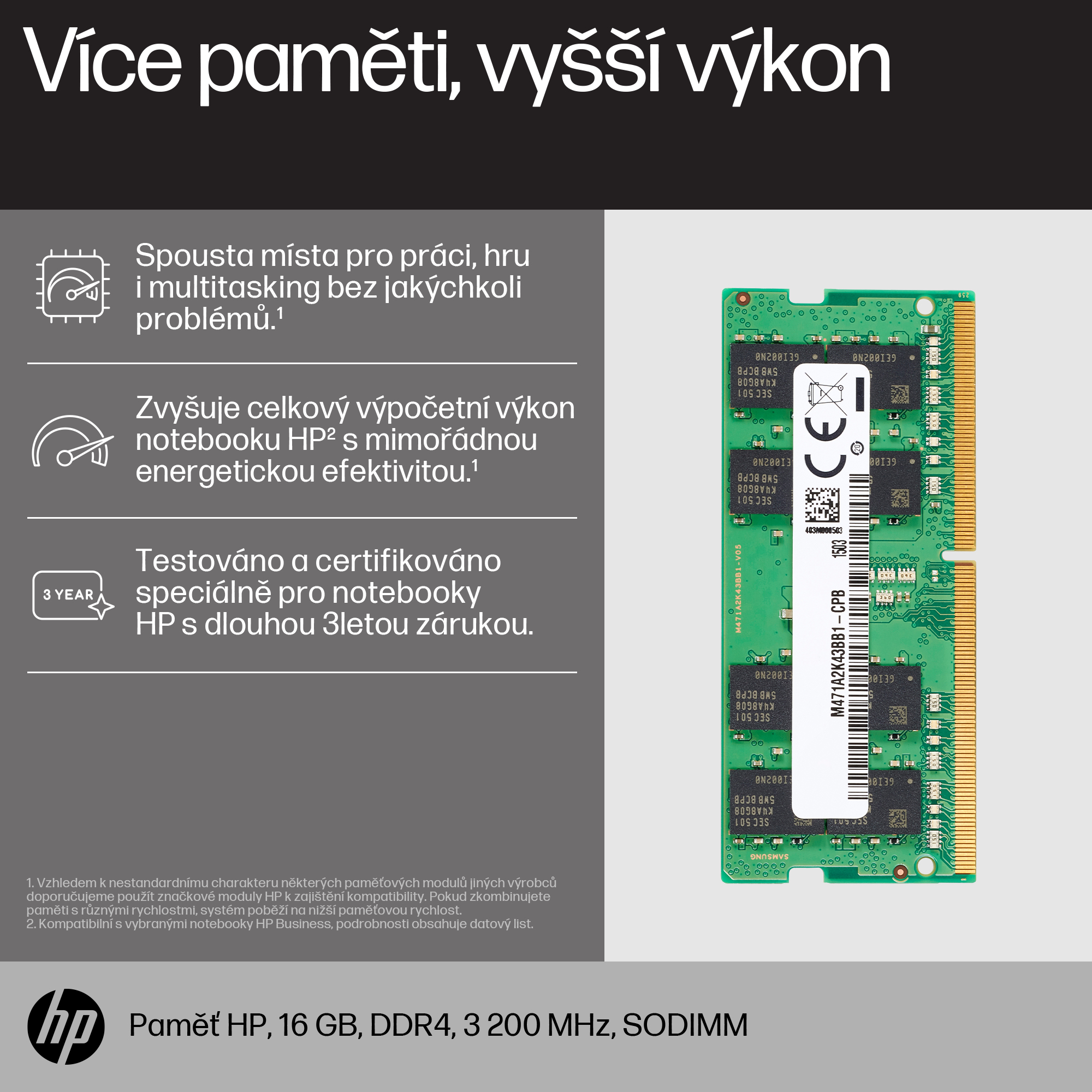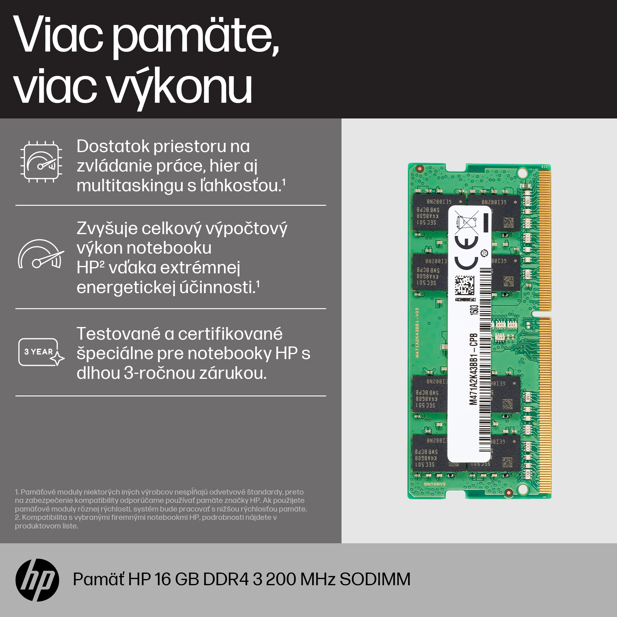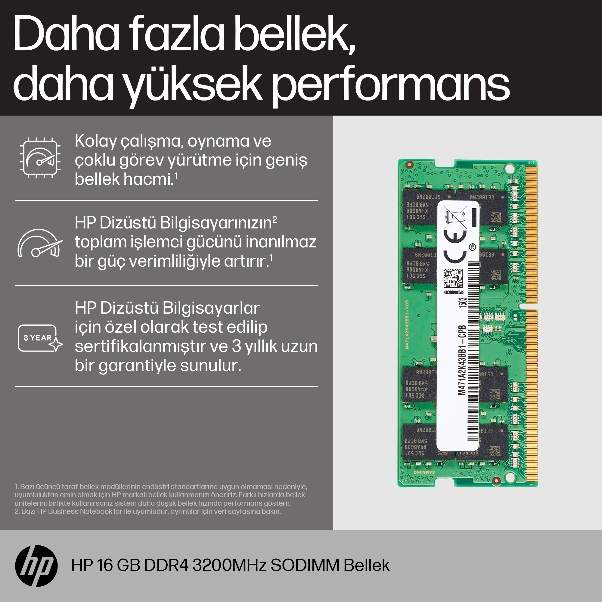 The HP 16GB DDR4 3200 SODIMM Memory memory module features a compact and sleek design tailored for space-constrained devices. Its robust build quality reflects HP’s commitment to durability and performance. The module’s low-profile form factor ensures easy installation without compromising airflow or device aesthetics. Overall, it blends seamlessly into professional setups, supporting a clean and efficient workspace.