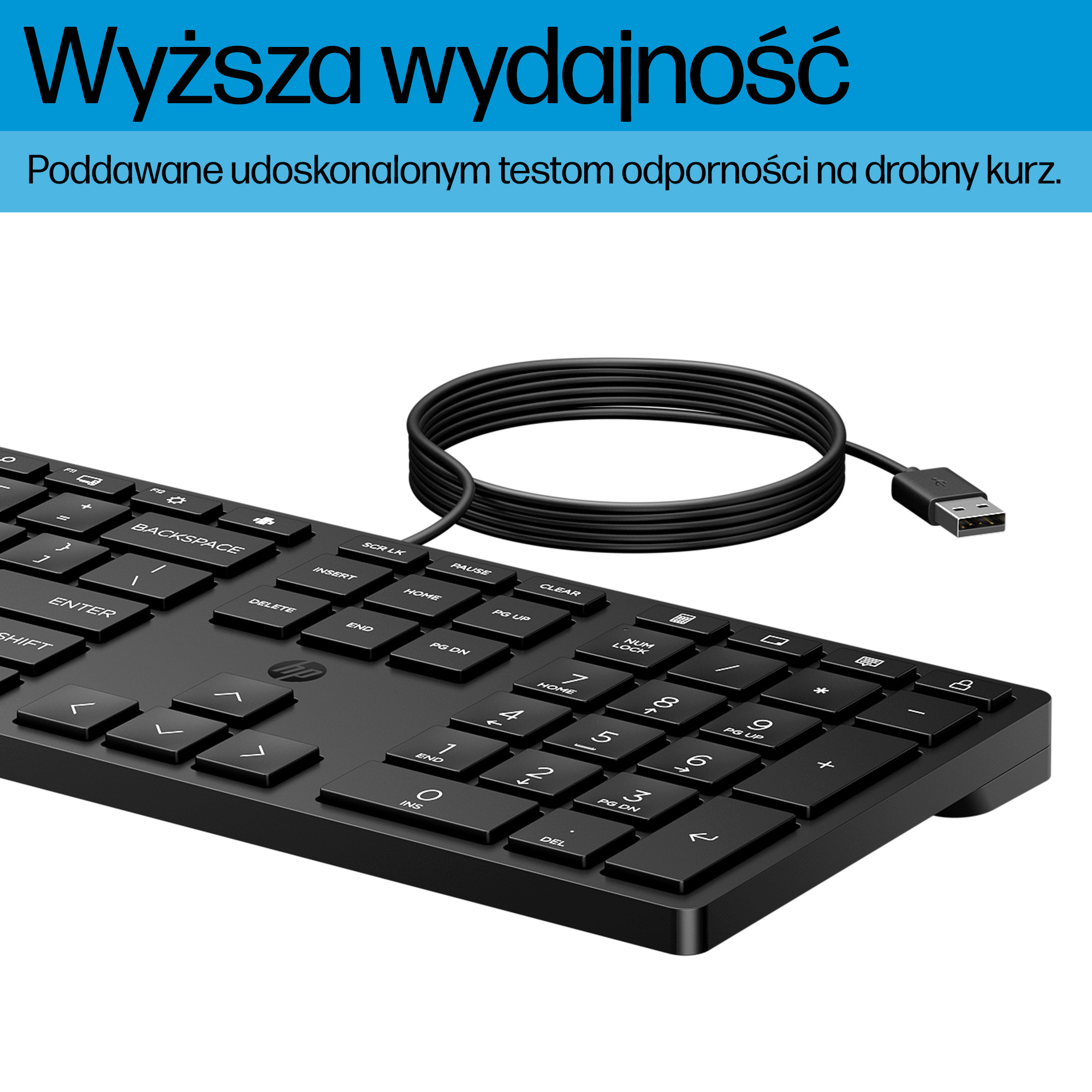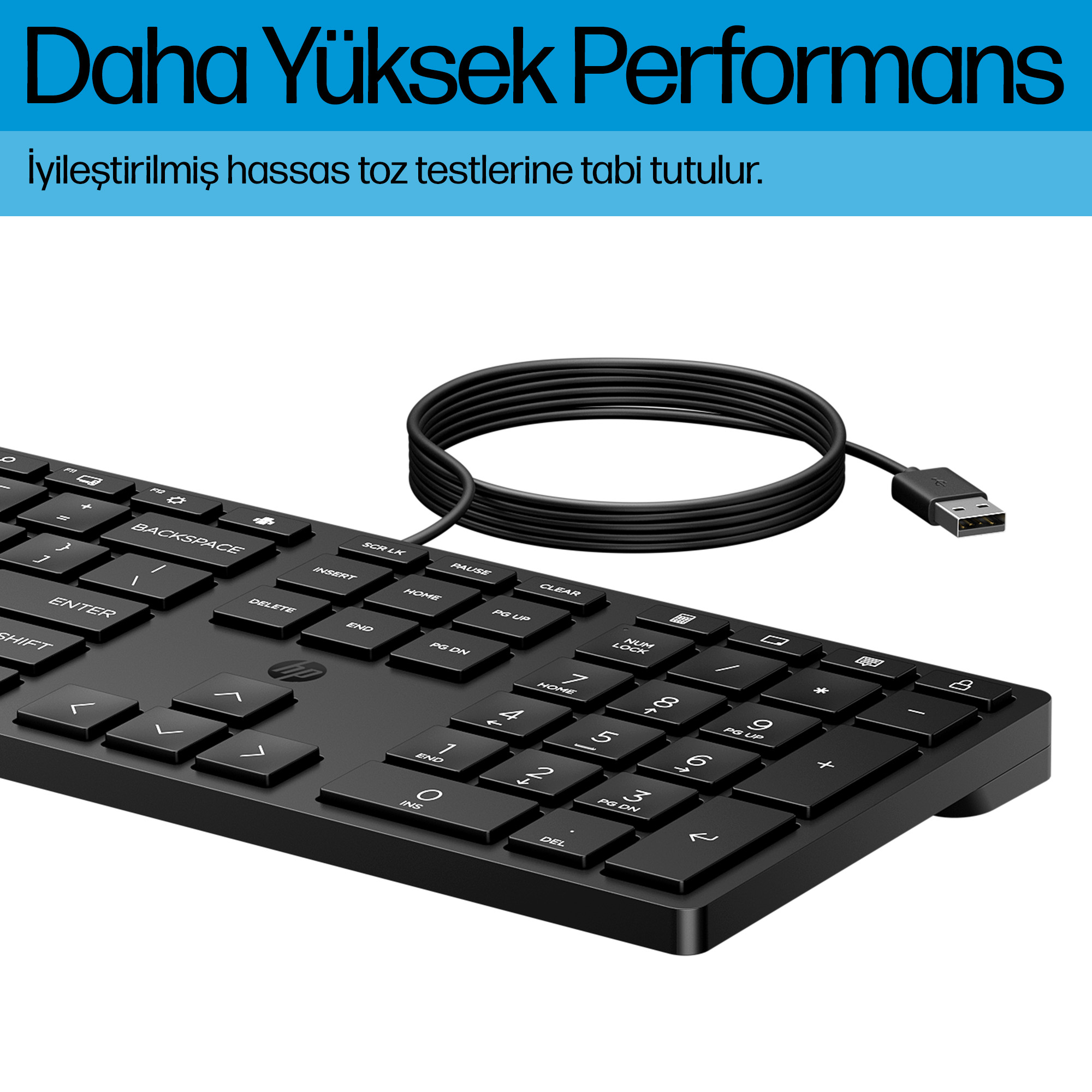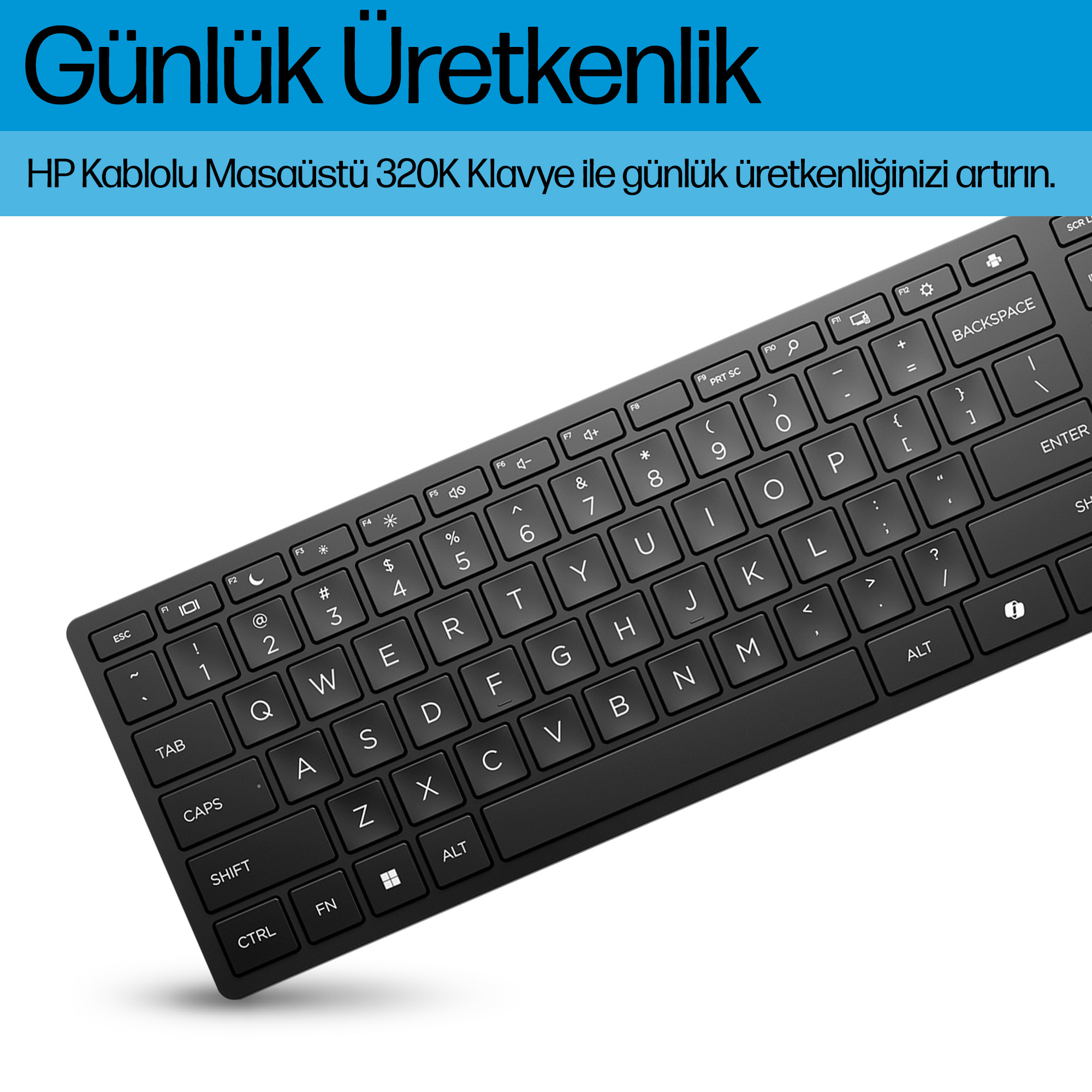 The HP 320K Wired keyboard features a sleek, professional design with low-profile keys that provide tactile feedback without excessive noise. Its matte finish resists fingerprints and smudges, maintaining a clean appearance in shared workspaces. The keyboard’s compact footprint fits comfortably on any desk, making it suitable for both open-plan offices and home workstations.