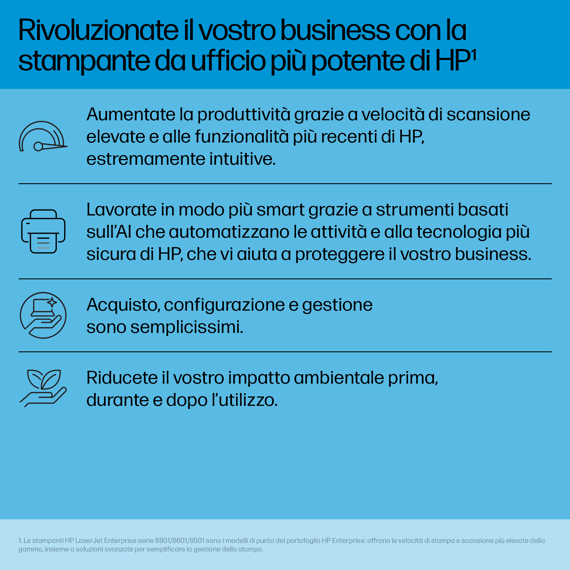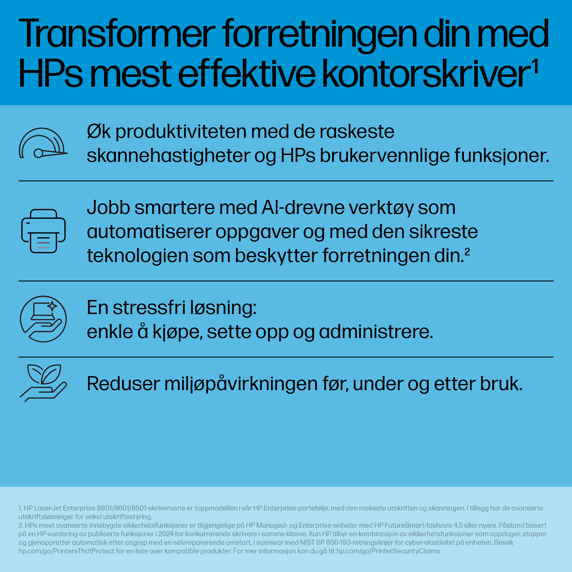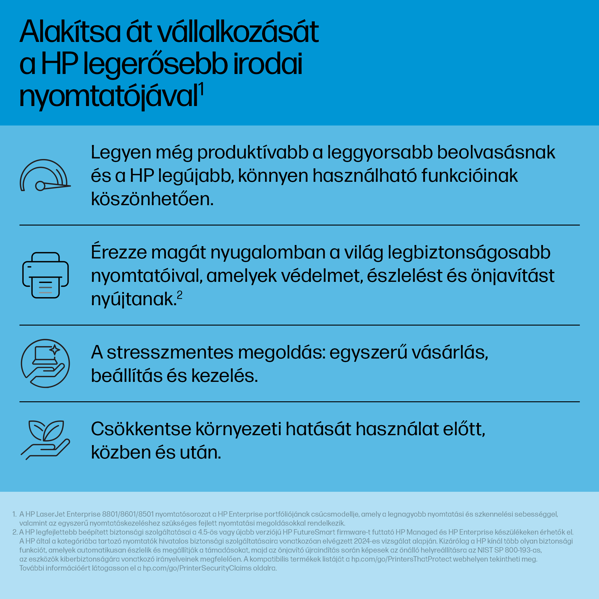 - Equipped with HP’s JetIntelligence technology, the printer delivers faster print speeds and improved toner efficiency, reducing overall cost per page.