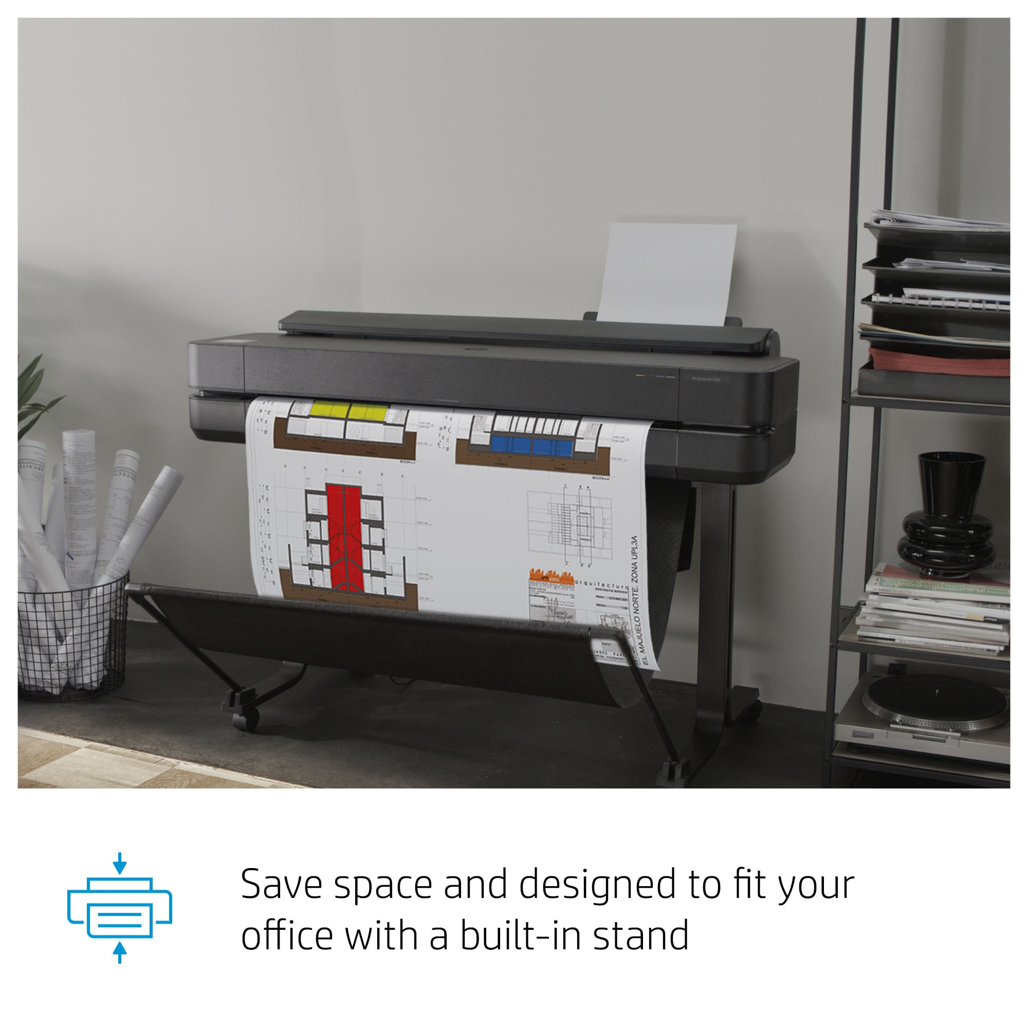 The HP Designjet T650 36-in Printer large format printer features a sleek, professional design that fits well in modern office environments. Its intuitive control panel and clean lines reflect HP’s commitment to user-friendly technology. The sturdy chassis and quality materials provide a durable feel, reassuring users of its reliability during heavy workloads.