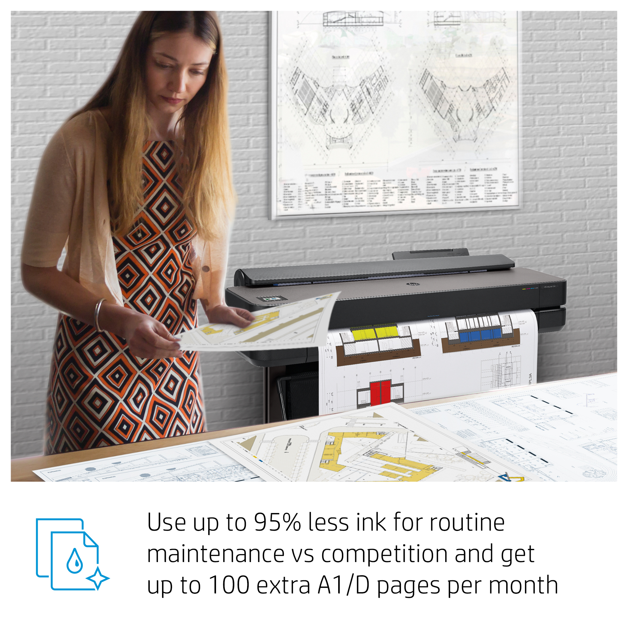 - Equipped with HP’s advanced printhead technology, delivering sharp lines and vibrant colours essential for technical drawings and presentations.