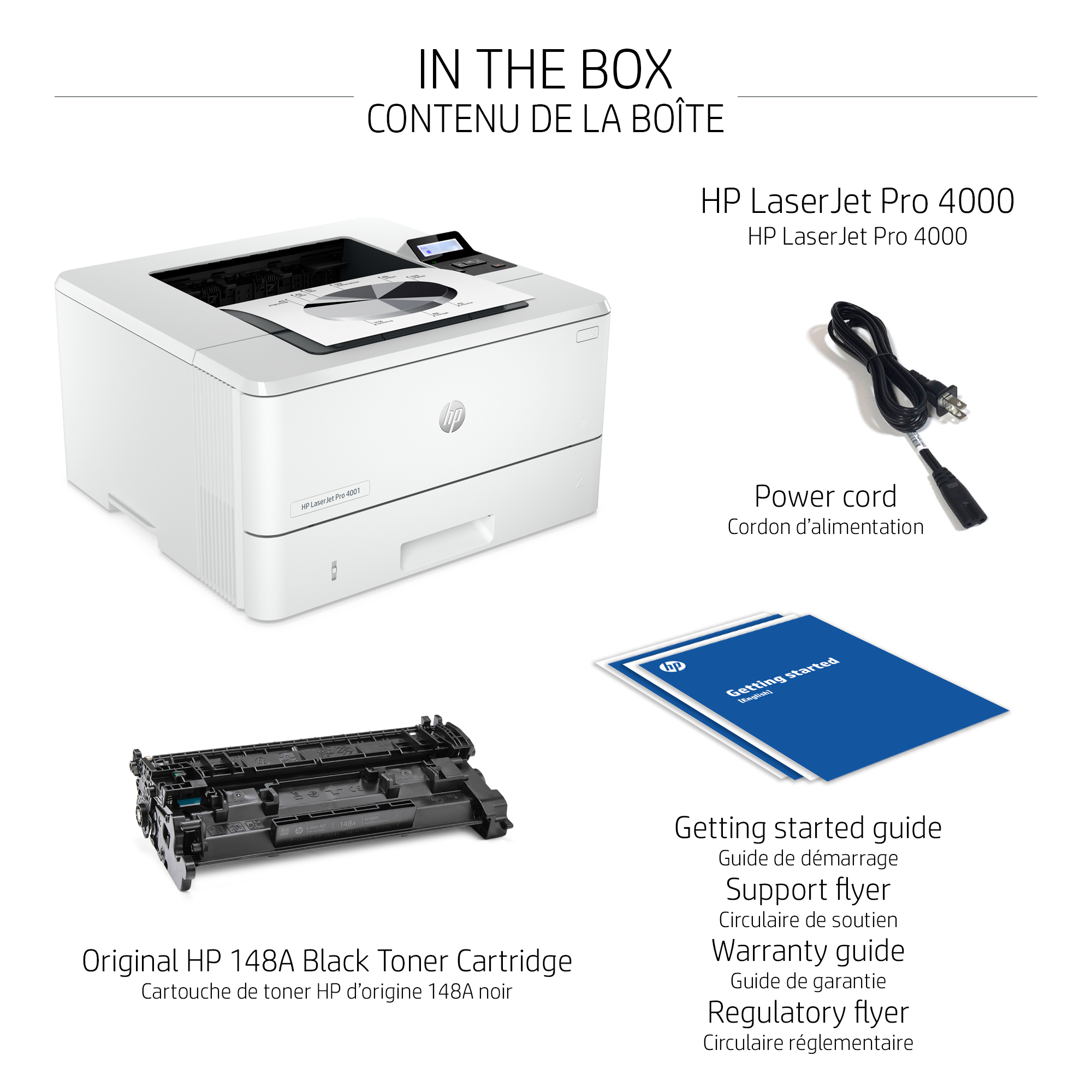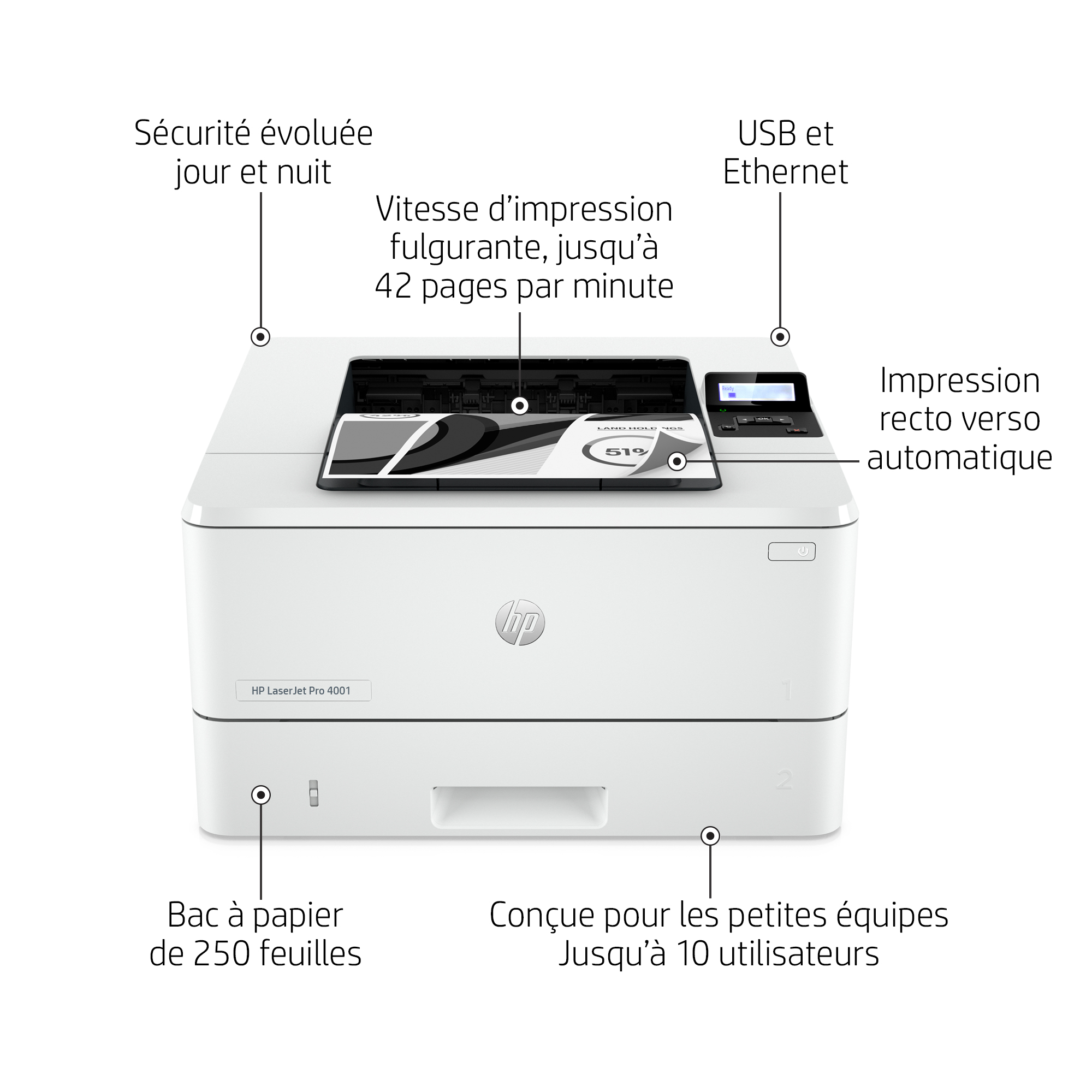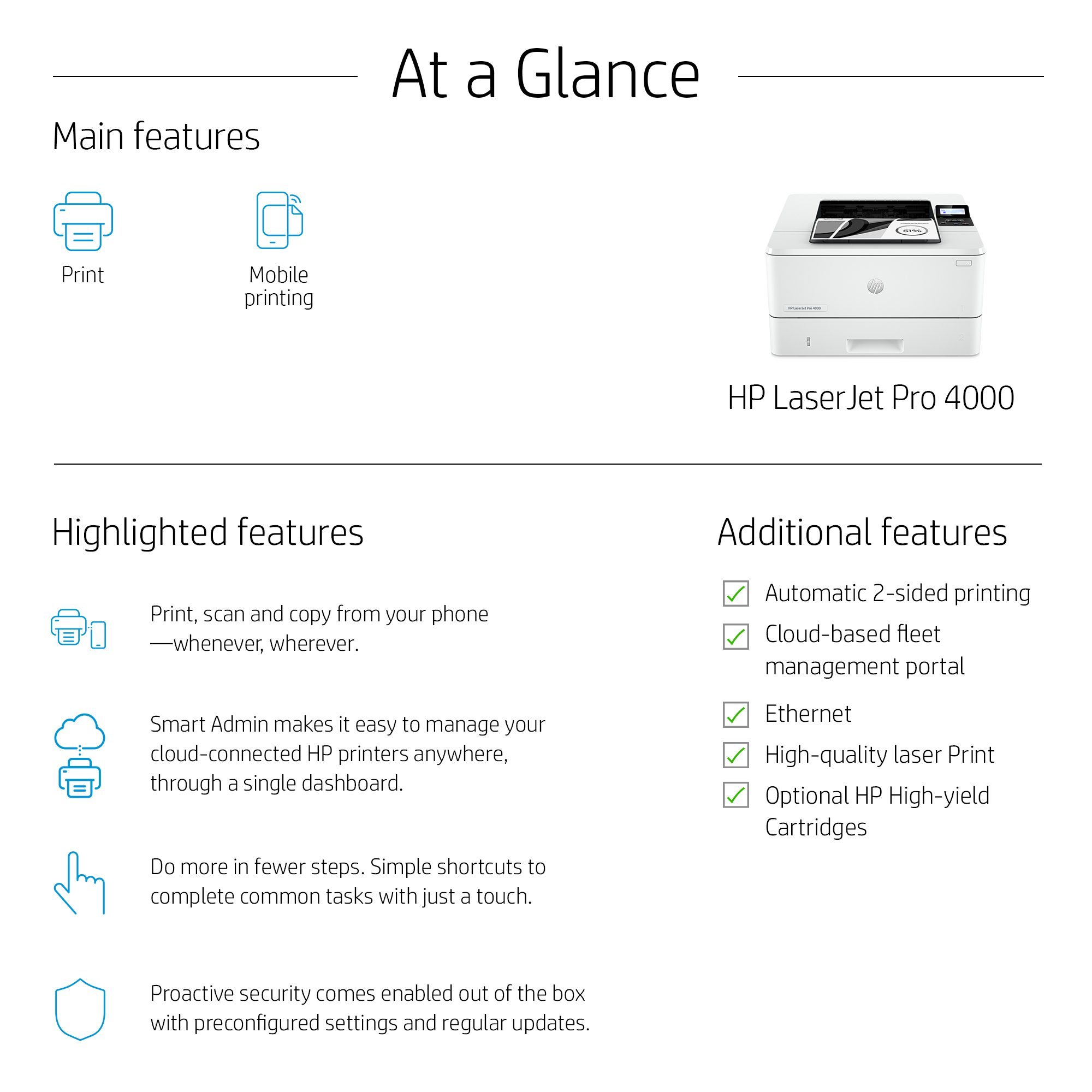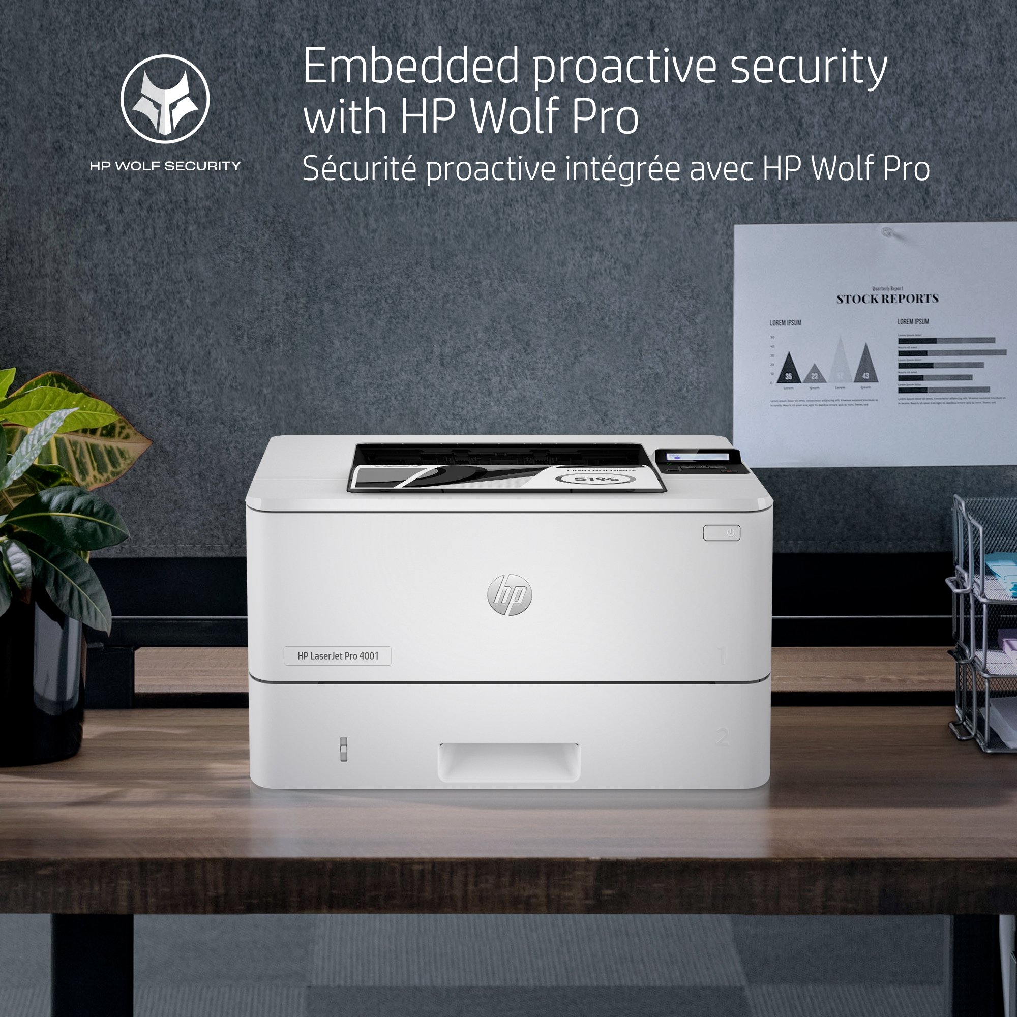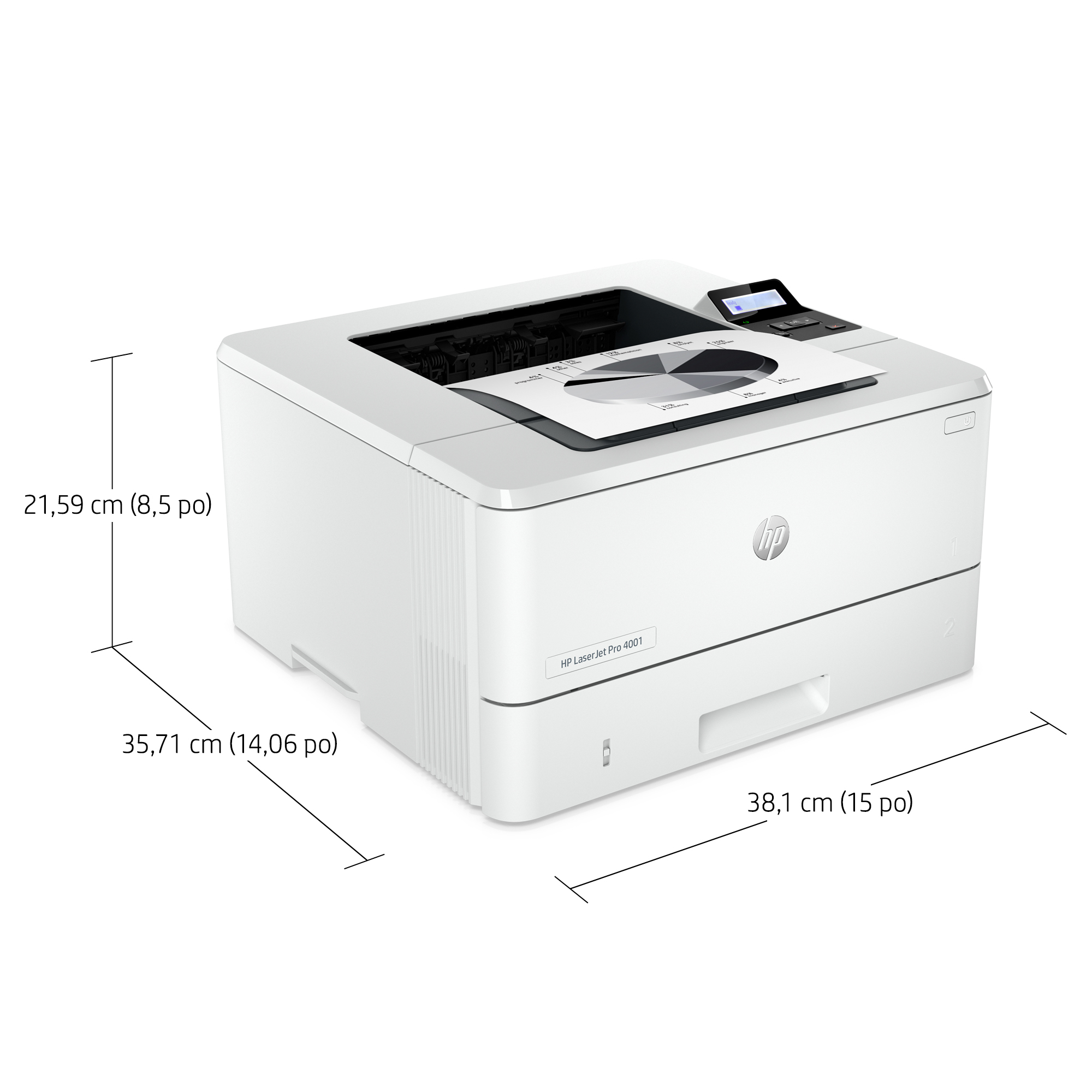 The HP LaserJet Pro 4001dn Printer features a sleek, professional design with a matte black finish that complements any office environment. Its compact footprint ensures it fits neatly on desks or shared printing stations. The intuitive control panel offers straightforward navigation, making it user-friendly for all staff levels. Durable construction guarantees long-term reliability, even under heavy workloads.
