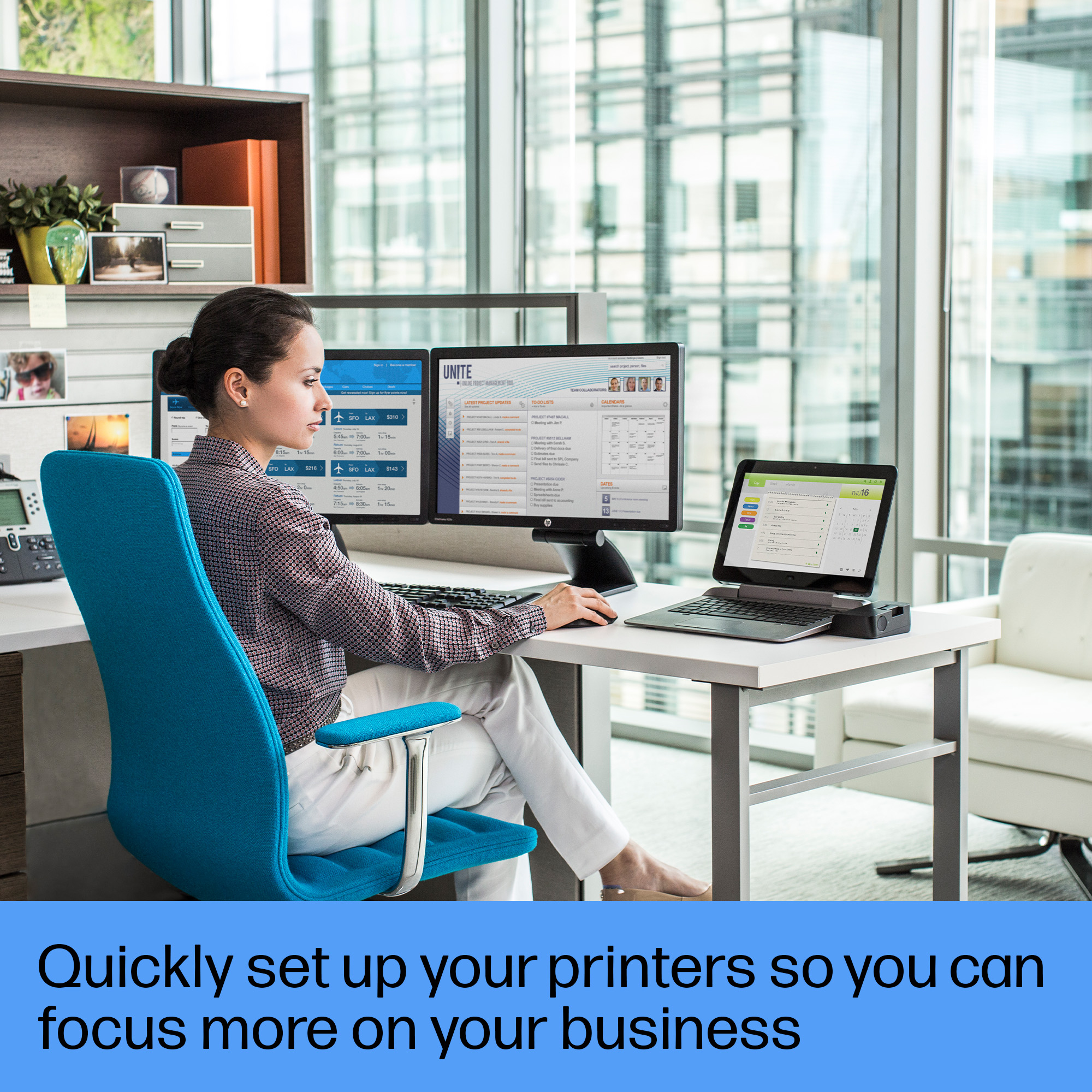 - Supports HP’s JetIntelligence technology for enhanced toner yield and security features, ensuring cost-effective and secure printing.