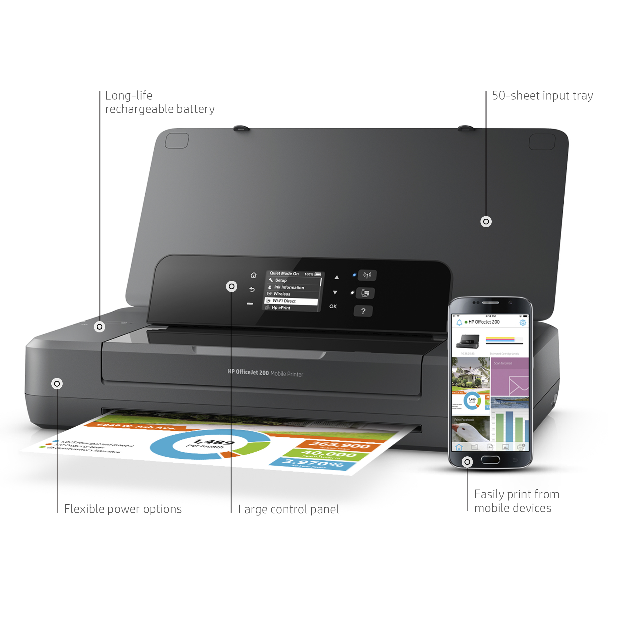 • The HP Officejet 200 Mobile Printer inkjet printer SKU: CZ993A uses HP thermal inkjet technology to deliver sharp text and vibrant images, ensuring professional-quality documents on the move.
