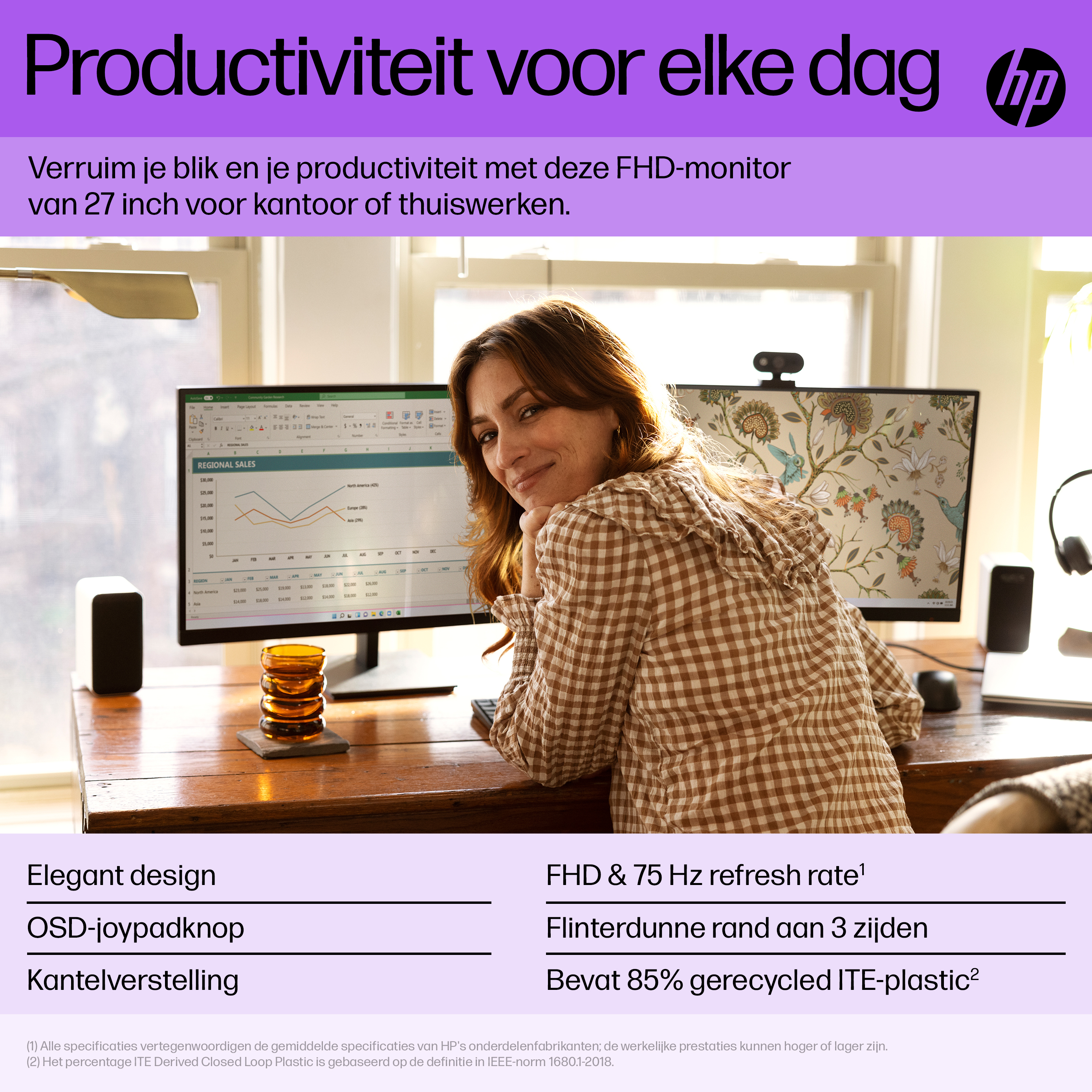 - 27-inch Full HD (1920 x 1080) IPS panel delivers sharp, vibrant images with wide viewing angles for collaborative workspaces.