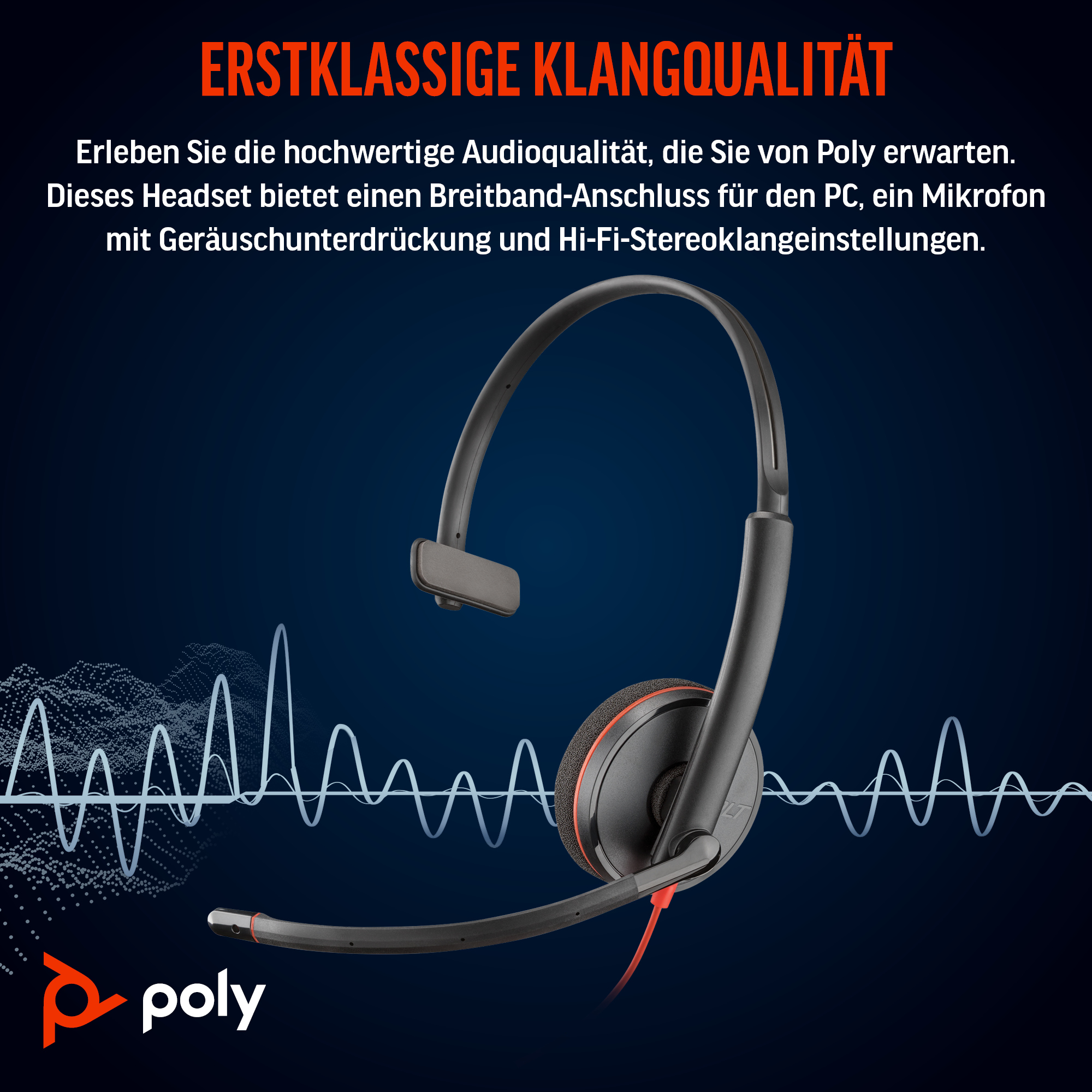The Poly Blackwire 3210 Monaural USB-C Headset +USB-C/A Adapter features a sleek, professional design with a durable yet lightweight frame. Its adjustable headband and cushioned ear pad provide comfort for extended use. The minimalist aesthetic fits well in any office or home workspace, reflecting a modern and practical approach to business communication tools.