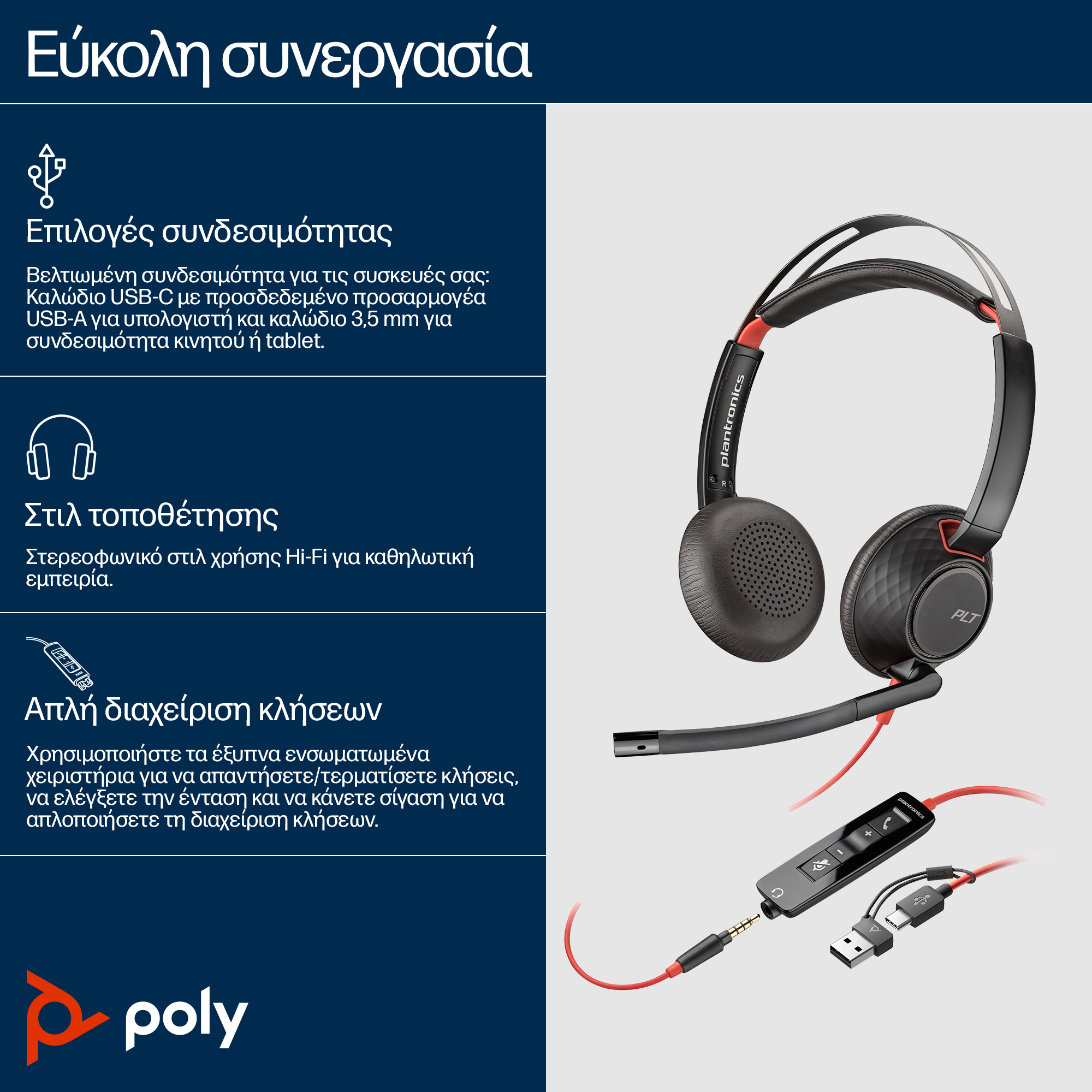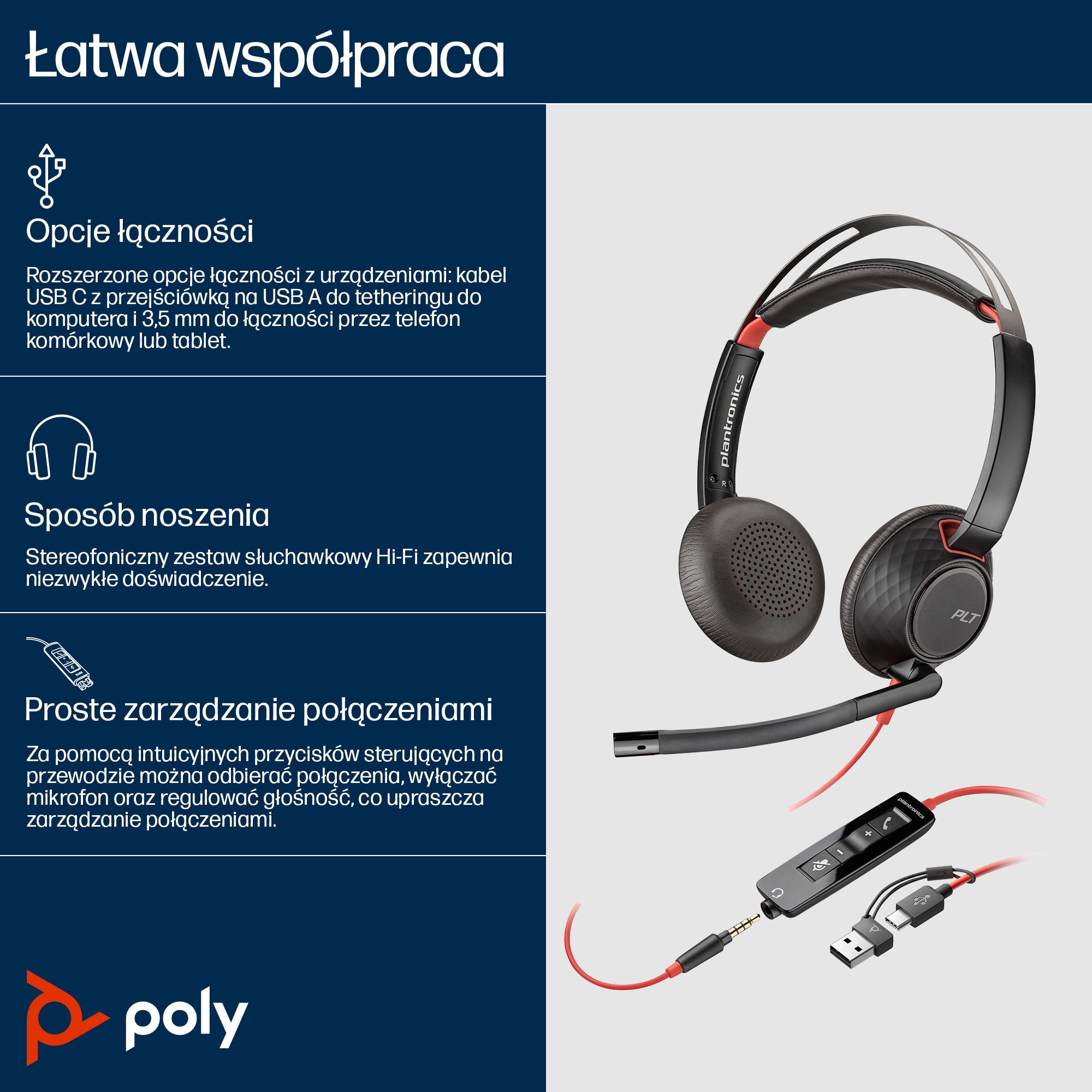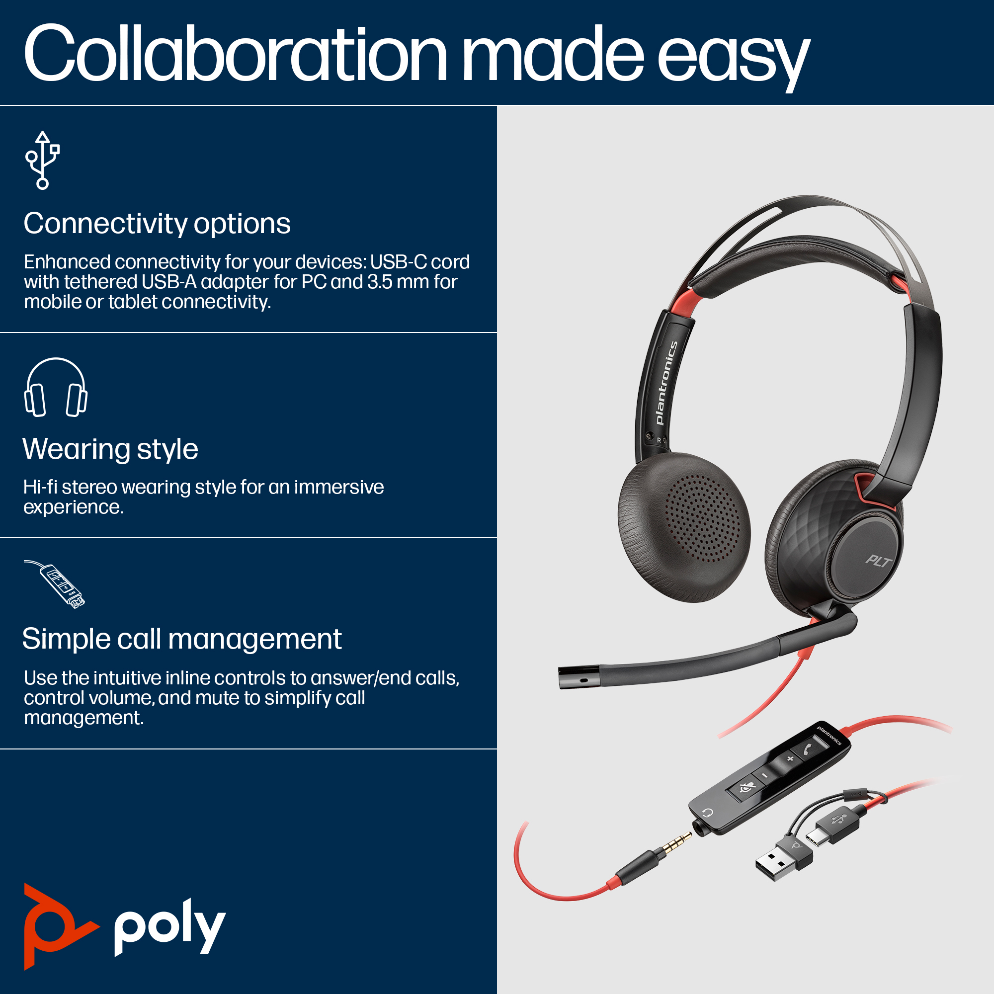 Poly Blackwire 5220 Stereo USB-C Headset +3.5mm Plug +USB-C/A Adapter SKU – 8X231AA delivers crystal-clear audio and versatile connectivity, enhancing productivity for Australian hybrid workplaces.