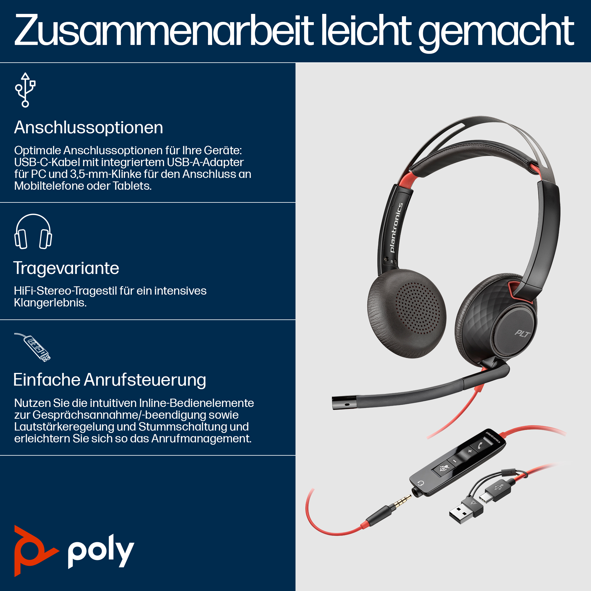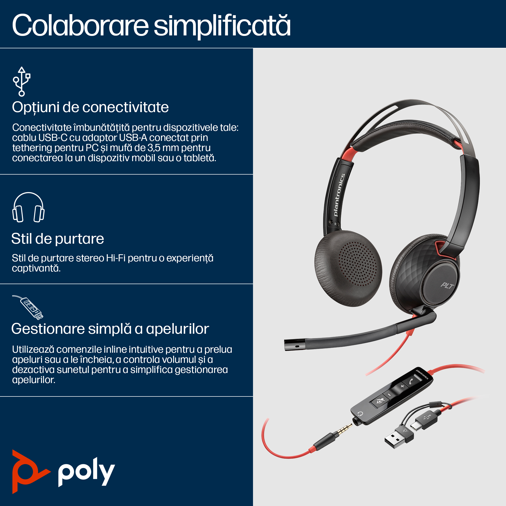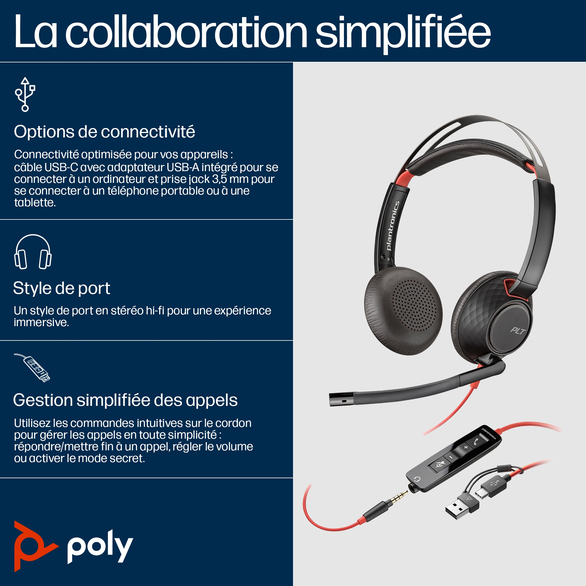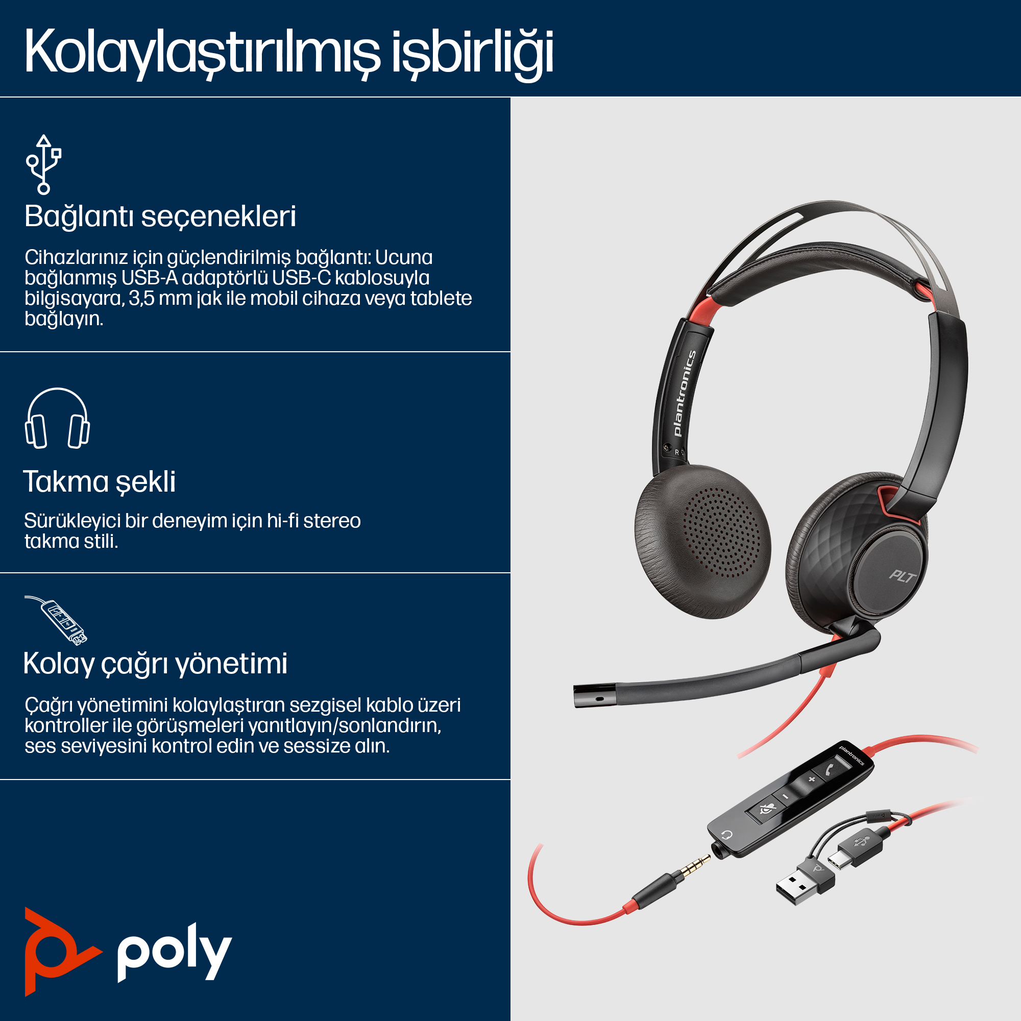 Poly Blackwire 5220 Stereo USB-C Headset +3.5mm Plug +USB-C/A Adapter SKU – 8X231AA delivers crystal-clear audio and versatile connectivity, enhancing productivity for Australian hybrid workplaces.