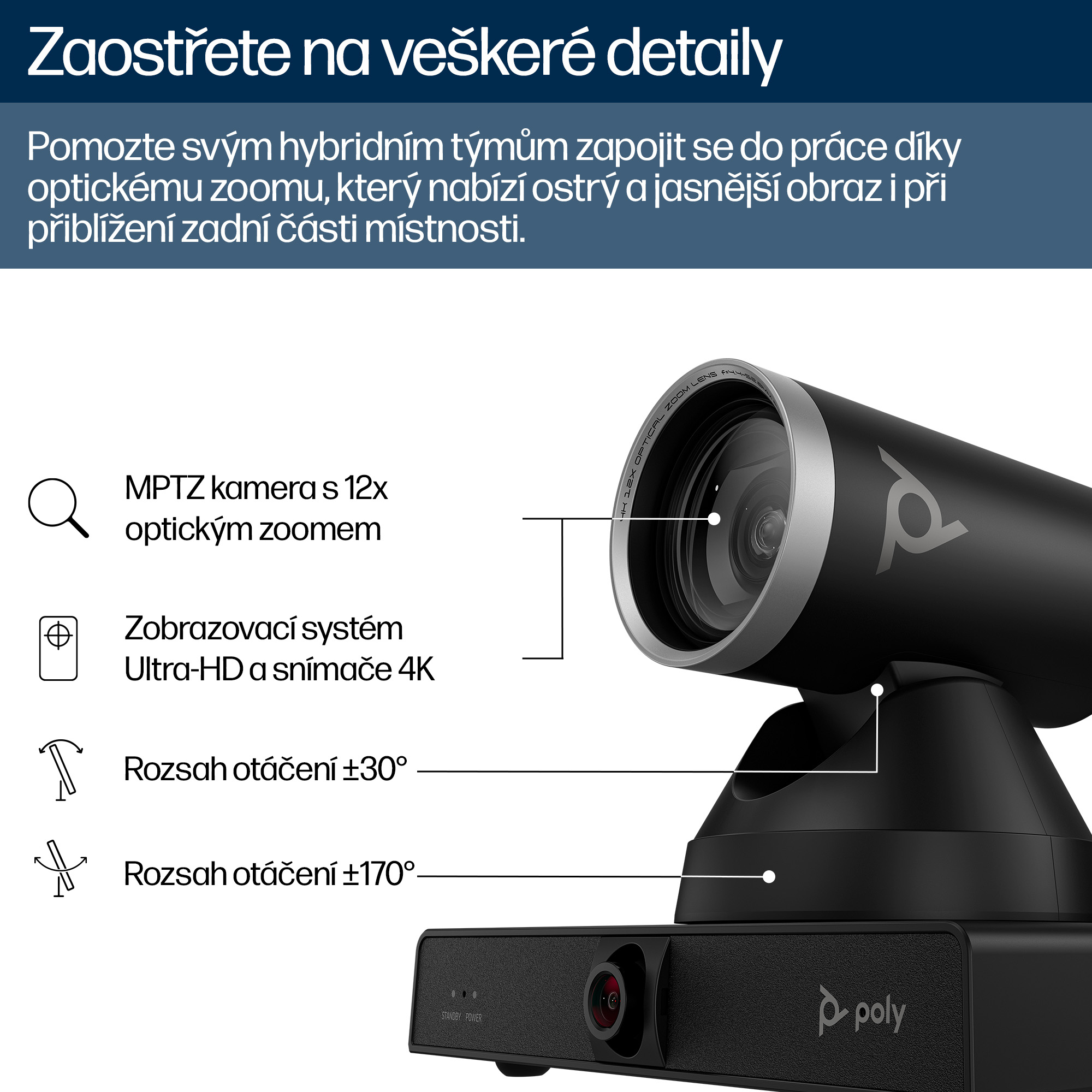 - The 12x optical zoom lens provides detailed close-ups without sacrificing image quality, ideal for large meeting spaces.