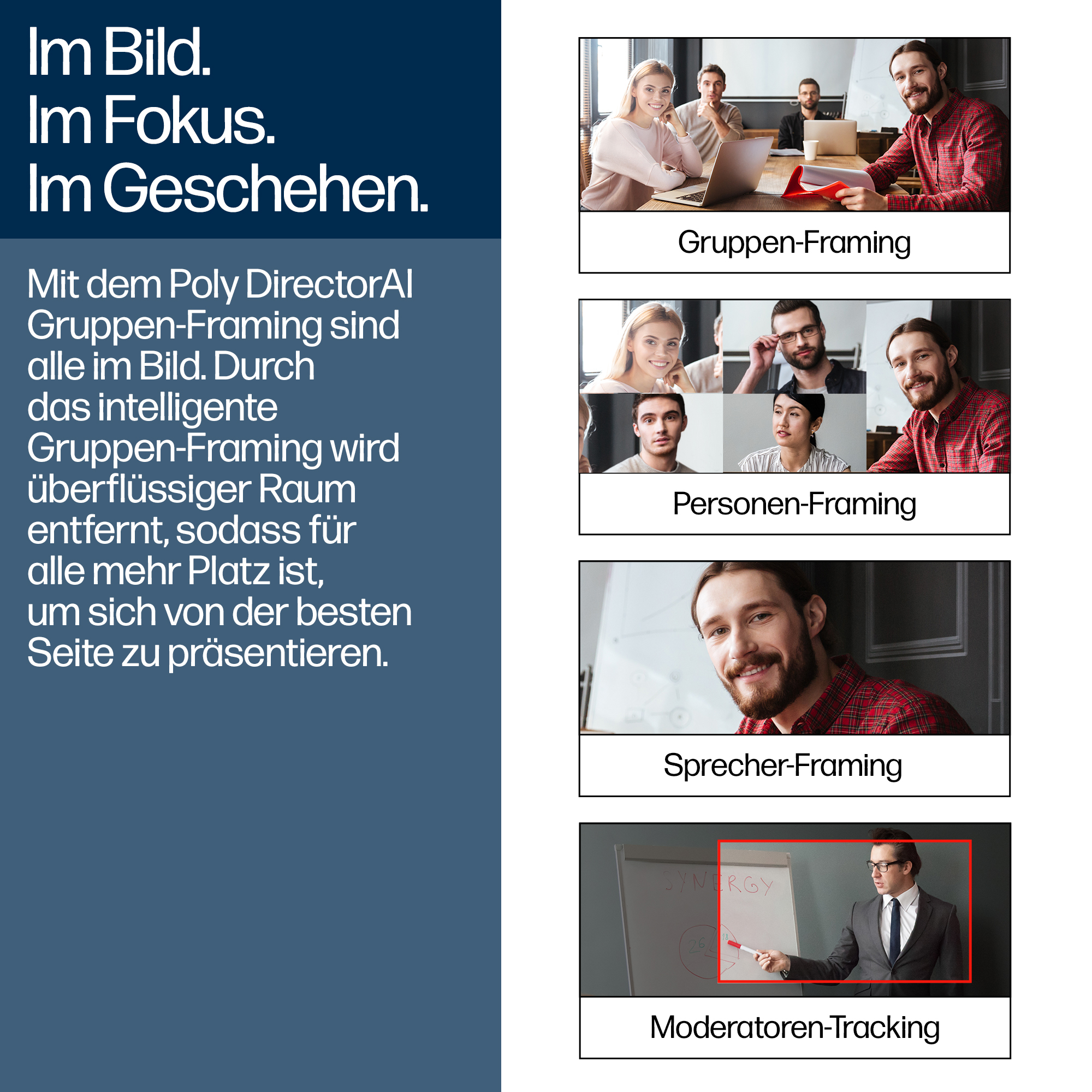 - Advanced AI algorithms detect active speakers and adjust framing dynamically, improving meeting engagement and focus.