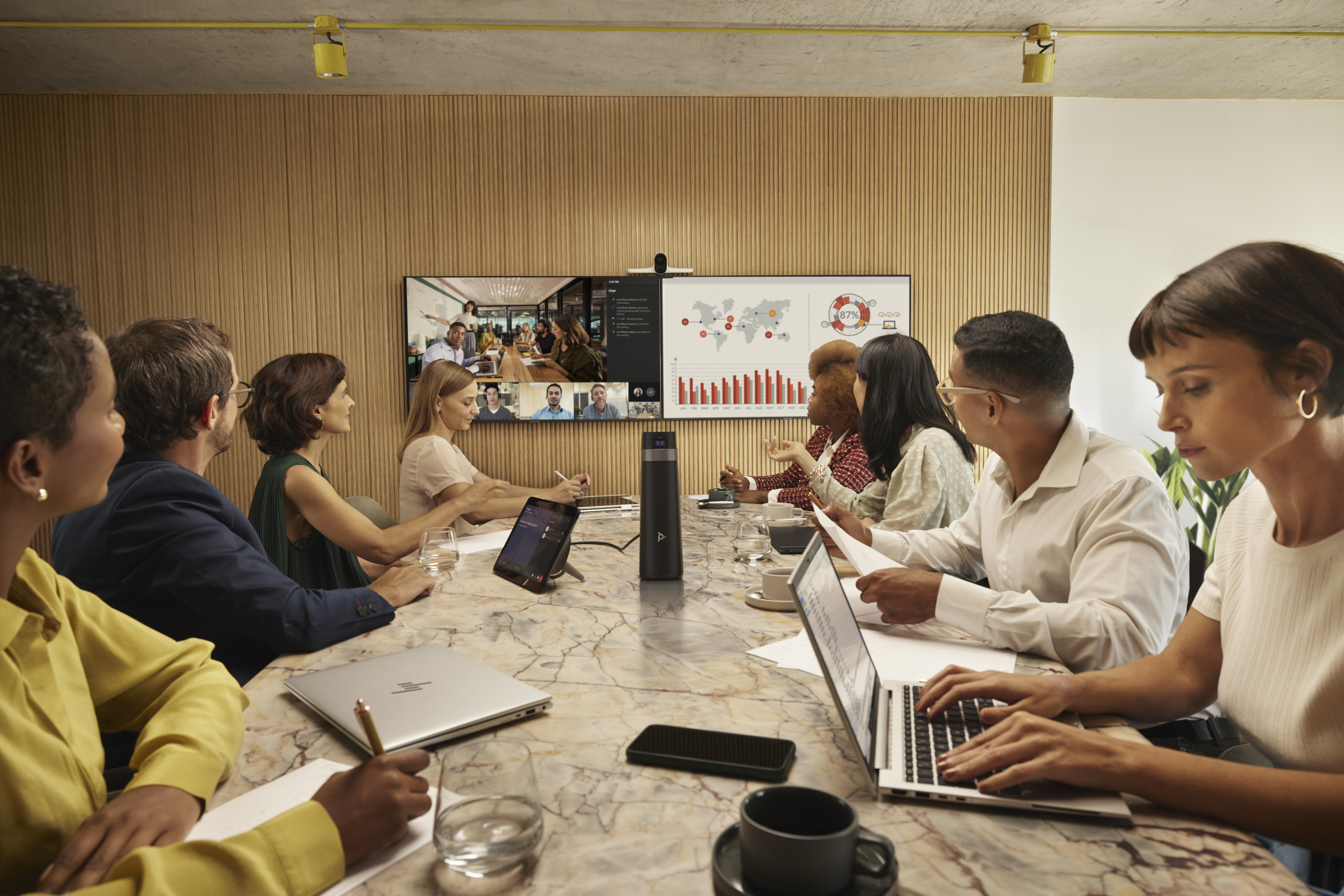 - 4K Ultra HD video quality with AI-driven auto-framing and speaker tracking for crystal-clear meetings.