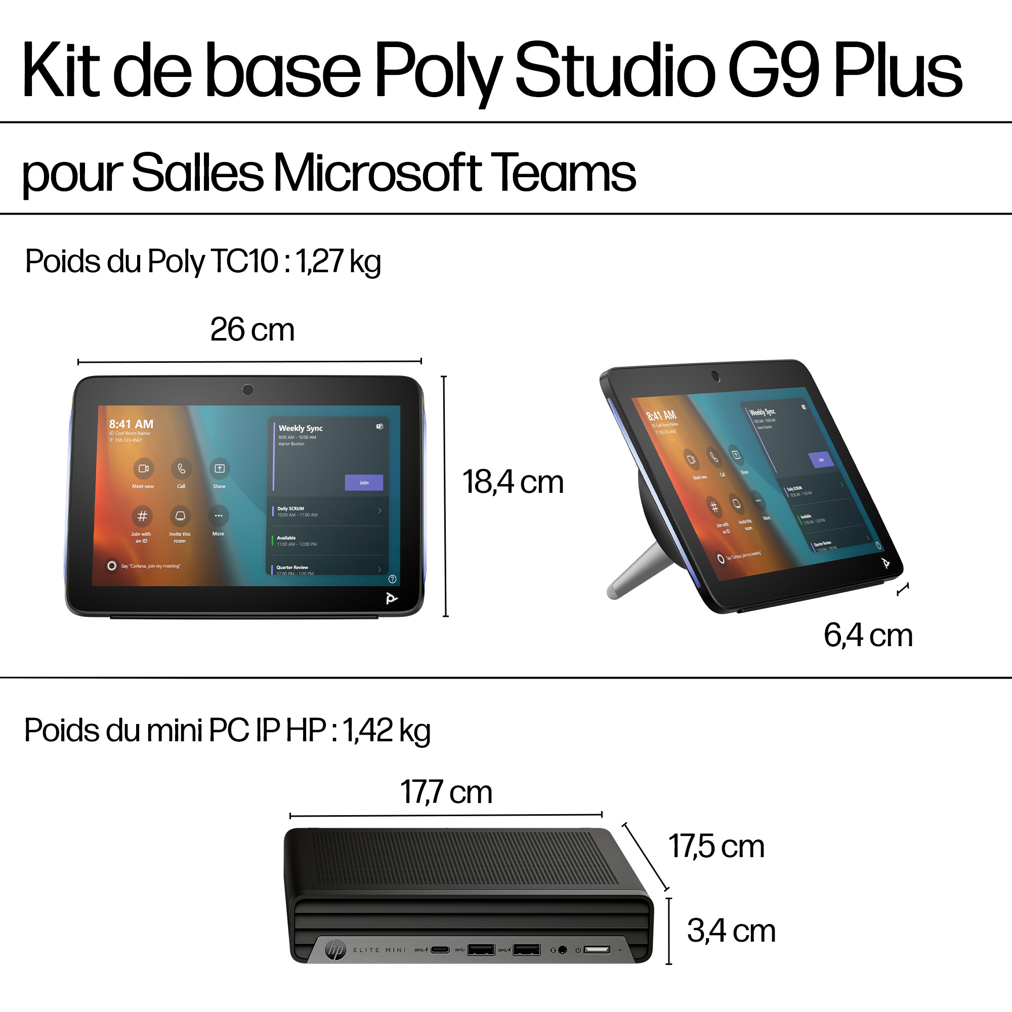 - The HP Mini IP PC embedded in the kit offers robust processing power tailored for Microsoft Teams applications, ensuring smooth multitasking and reliable performance.