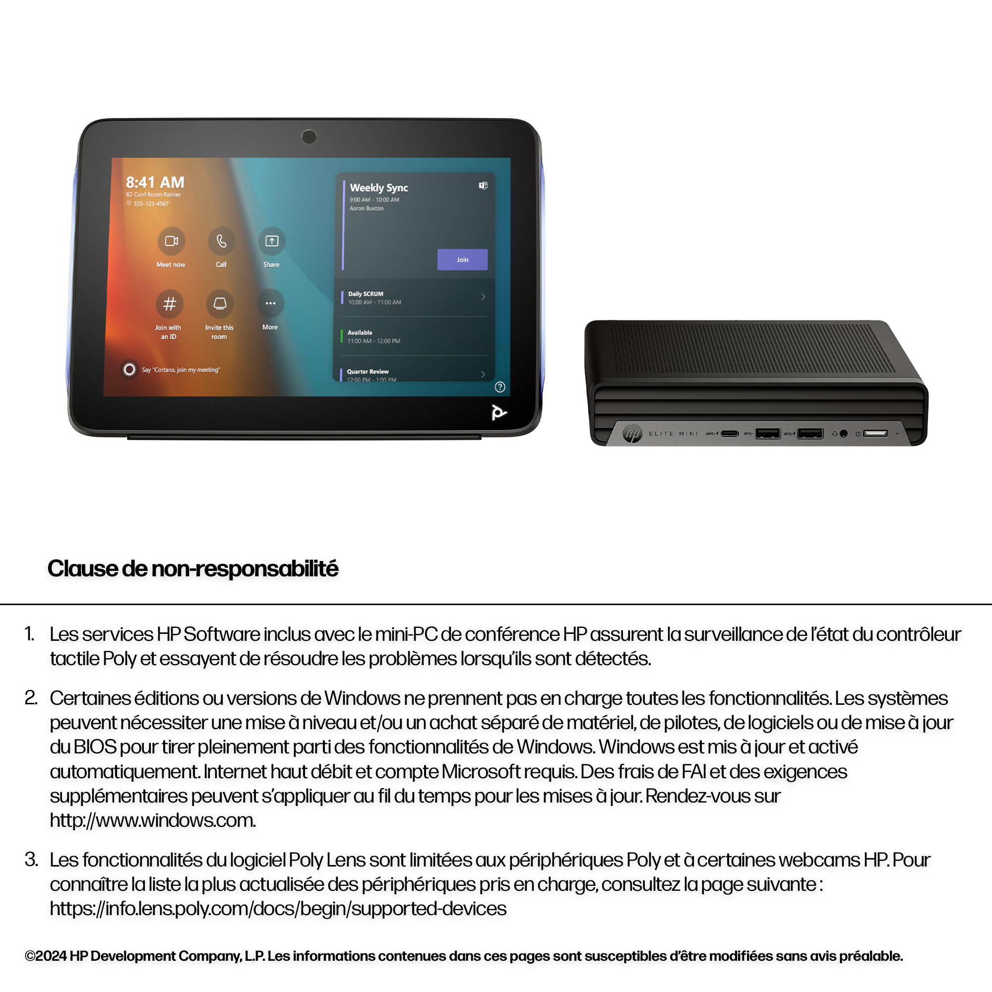 - Includes HP Mini IP PC and TC10 touch controller for intuitive meeting management and enhanced control.
