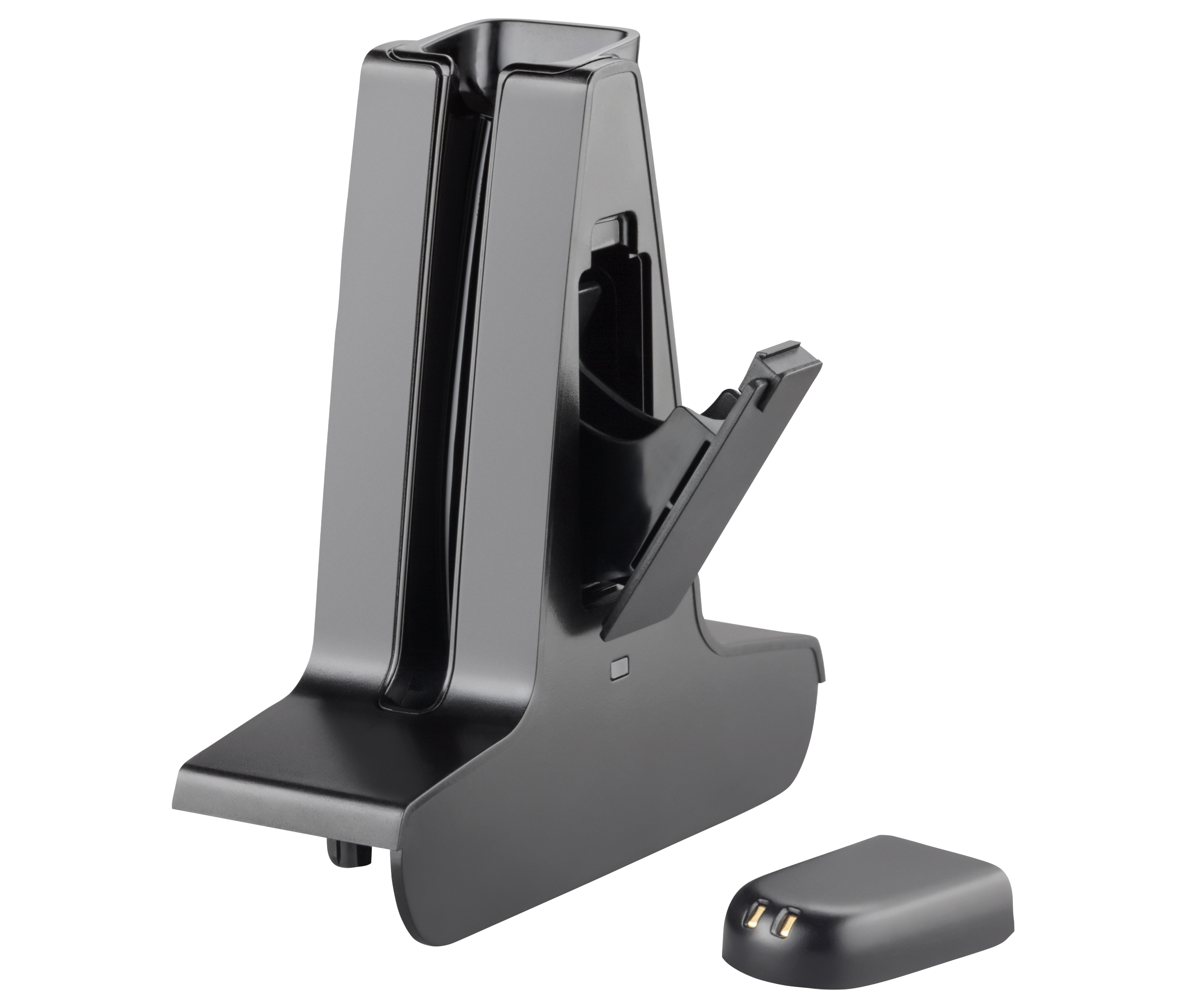 The Poly Savi 8245 Headset Cradle and Wearing Accessories feature a sleek, modern design that complements contemporary office aesthetics. Crafted from durable materials, the cradle offers a stable resting place for the headset, while the wearing accessories provide a comfortable, ergonomic fit. The minimalist design ensures it blends effortlessly into any workspace without adding clutter.
