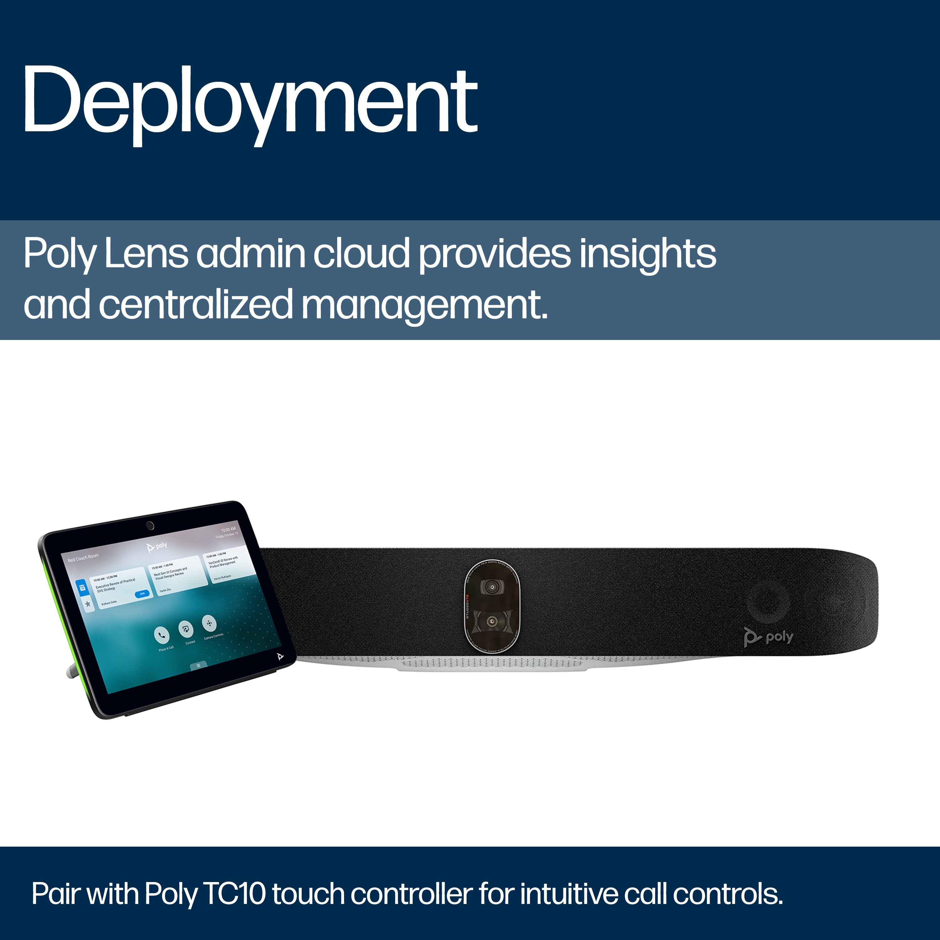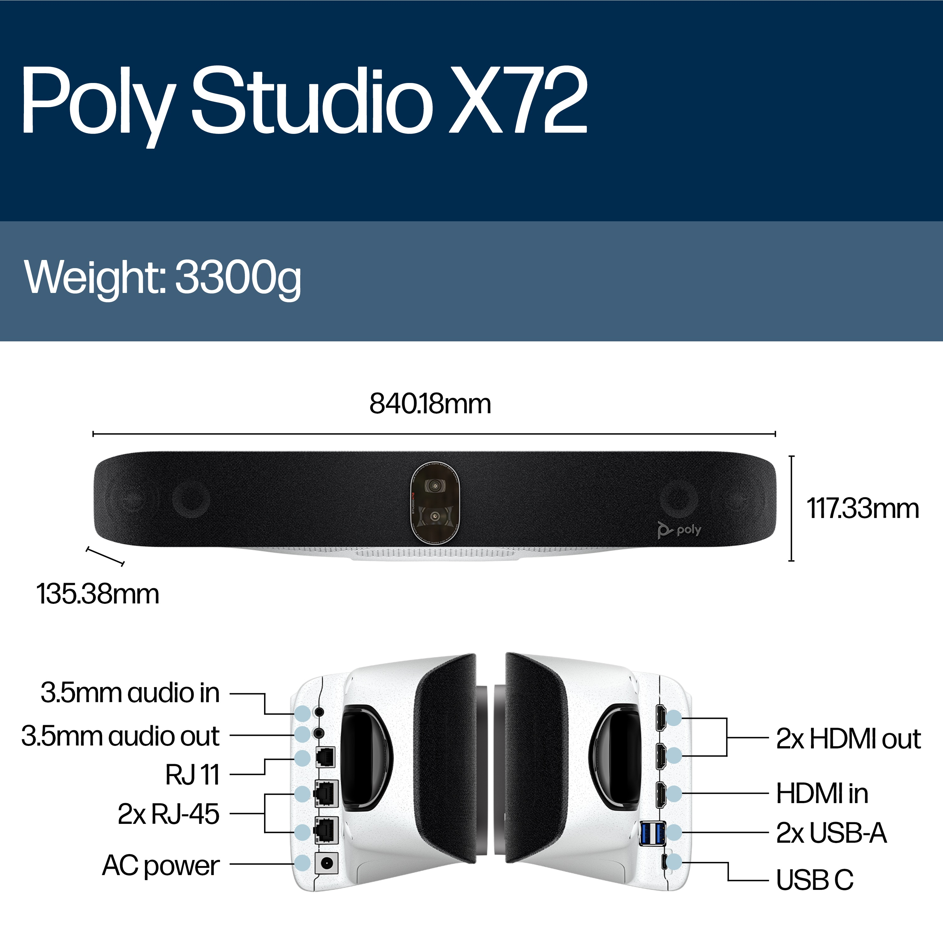 The Poly Studio X72 boasts a sleek, minimalist design that complements any professional meeting space. Its all-in-one video bar form factor reduces cable clutter and installation complexity, creating a clean and organised environment. The premium build quality reflects Poly’s commitment to durability and performance, making it a standout choice for Australian businesses prioritising both aesthetics and functionality.