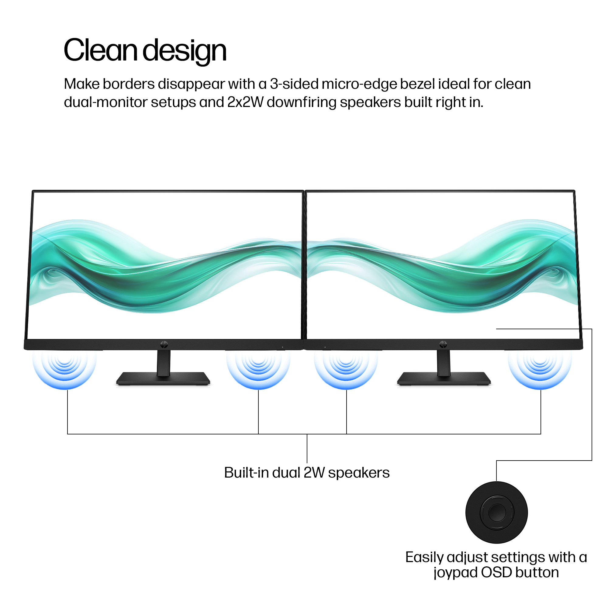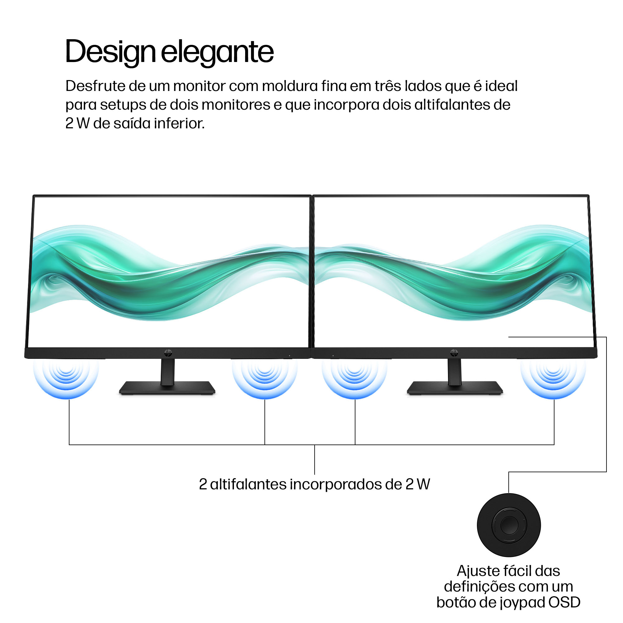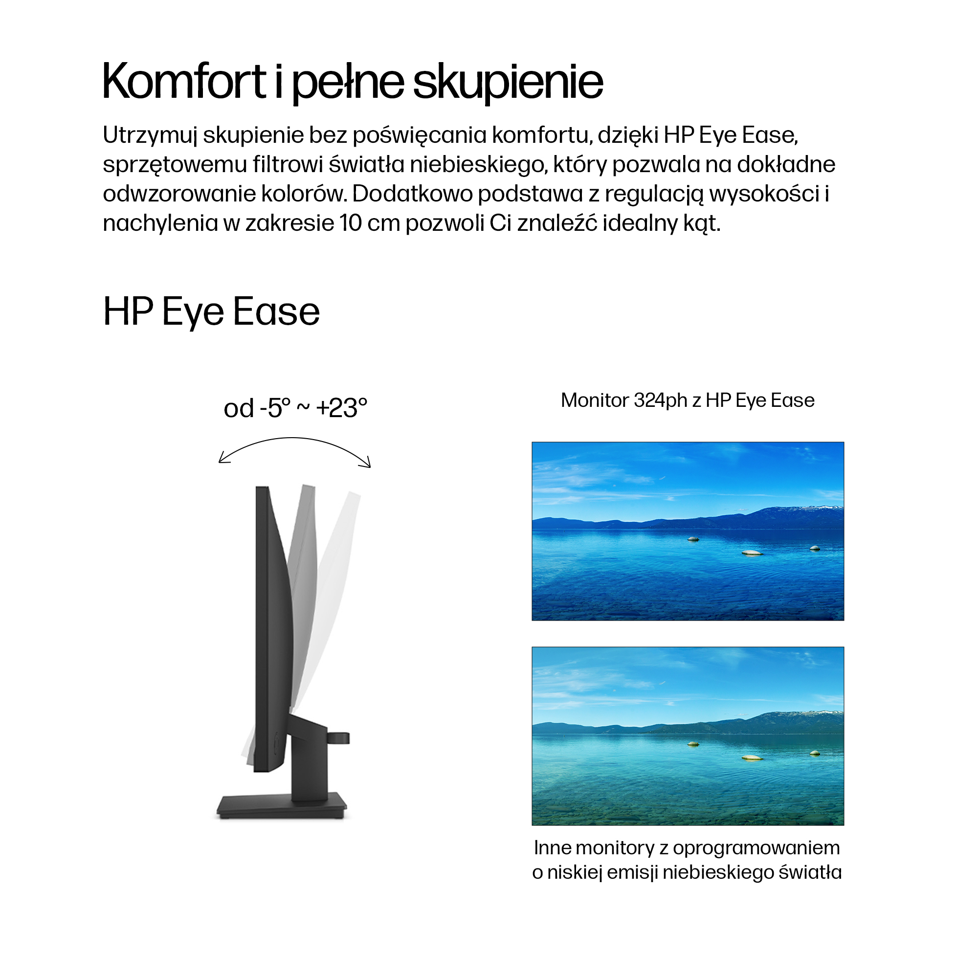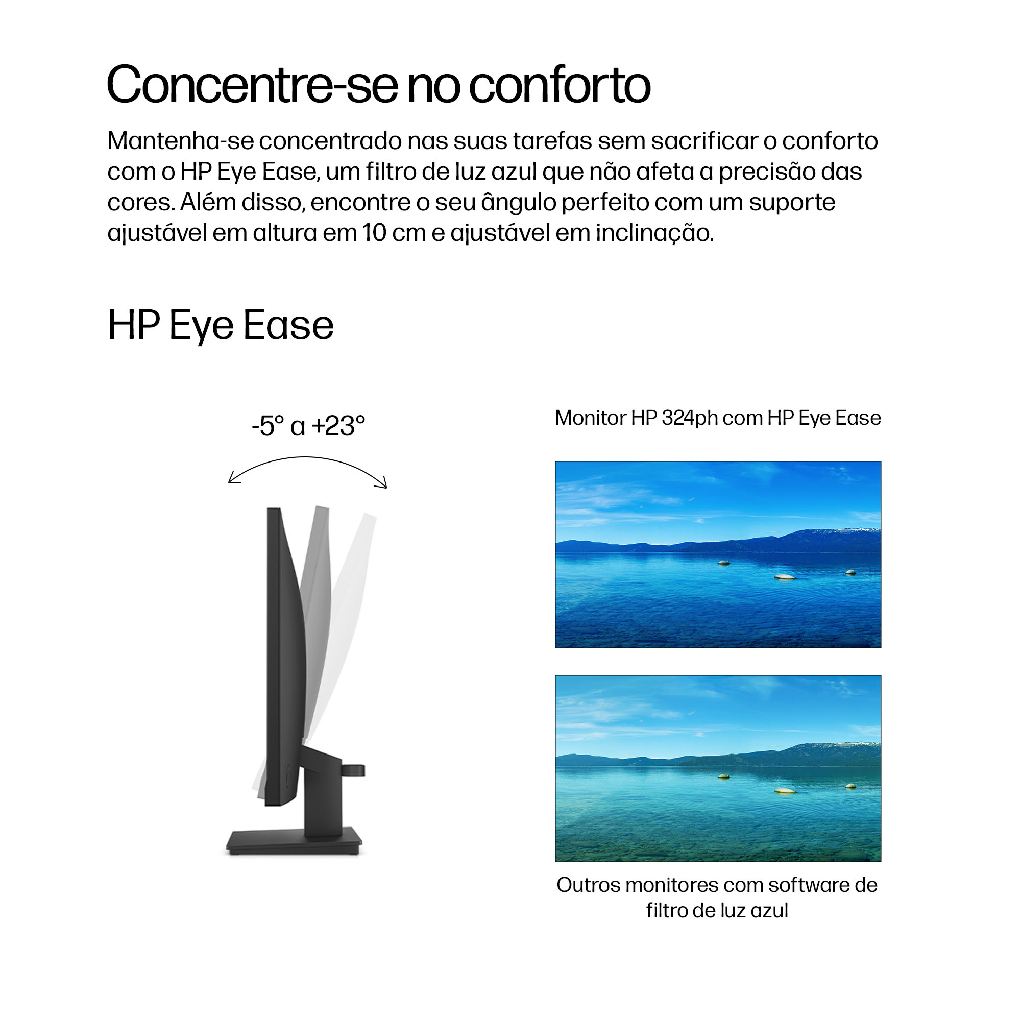 The HP Series 3 Pro 23.8 inch FHD Monitor – 324ph computer monitor features a modern, minimalist design with a slim profile that fits effortlessly into any office setting. Its matte black finish and narrow bezels provide a professional aesthetic while maximising screen space. The adjustable stand offers flexibility, allowing users to tailor the viewing angle for optimal comfort throughout the workday. This monitor balances style and function, making it a valuable addition to any business environment.