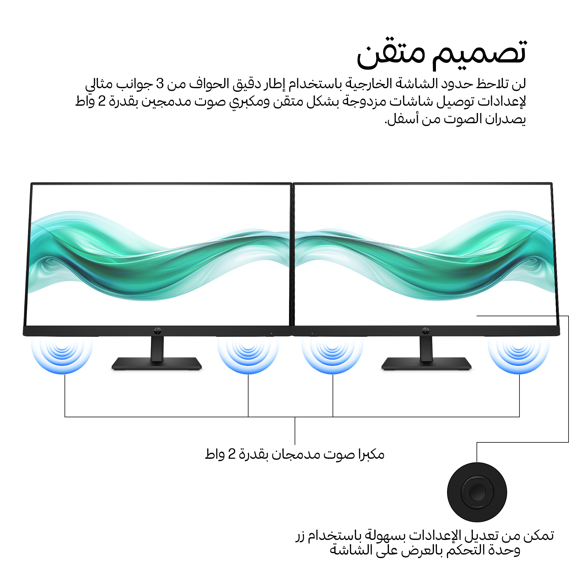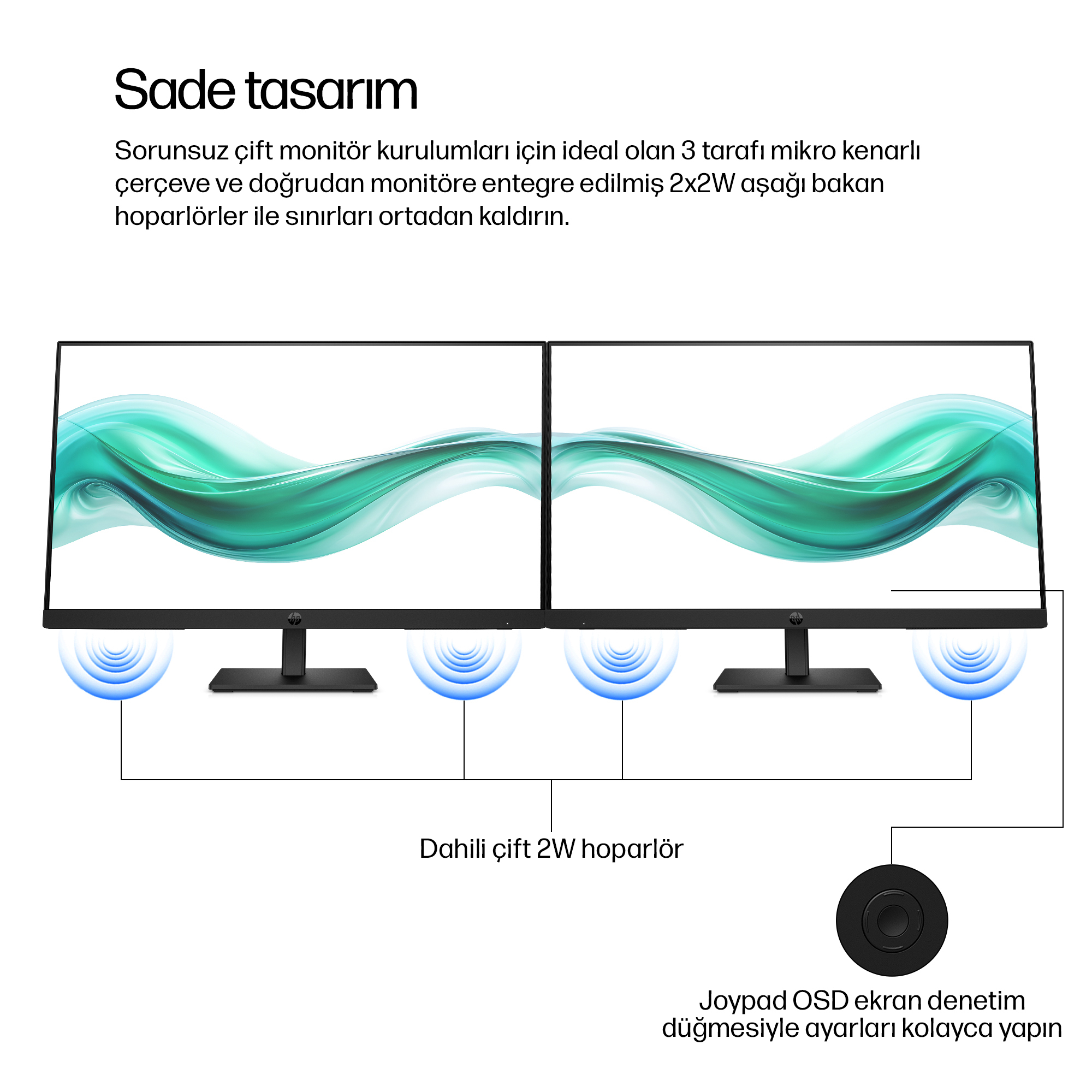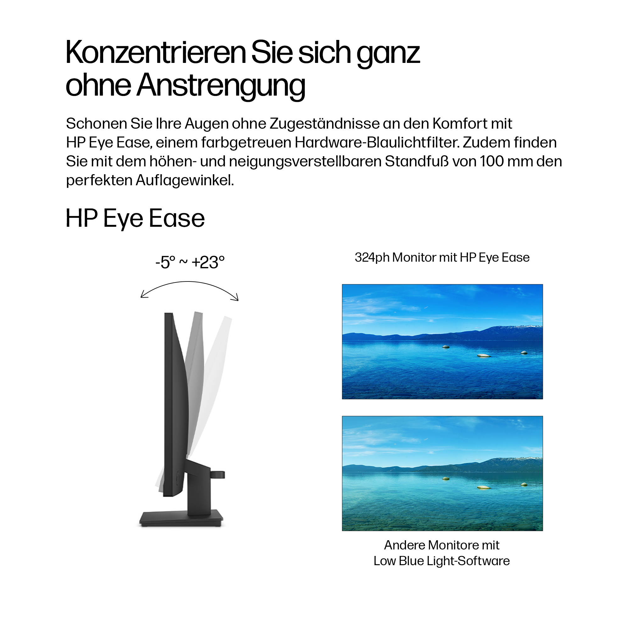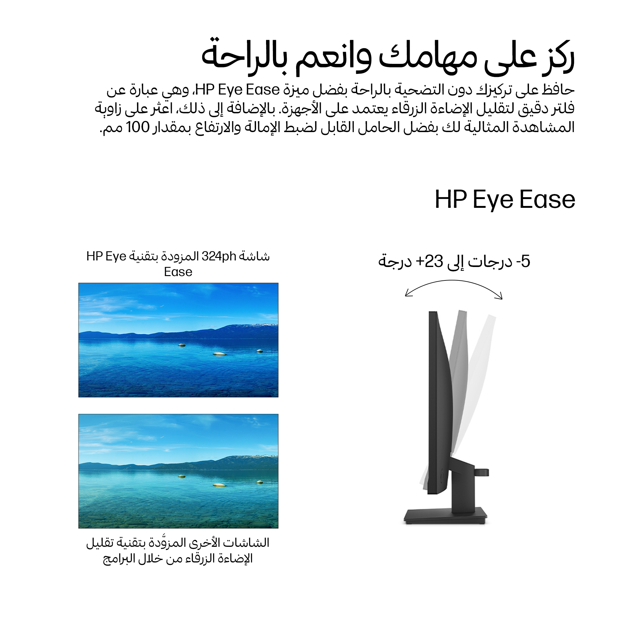 The HP Series 3 Pro 23.8 inch FHD Monitor – 324ph computer monitor features a modern, minimalist design with a slim profile that fits effortlessly into any office setting. Its matte black finish and narrow bezels provide a professional aesthetic while maximising screen space. The adjustable stand offers flexibility, allowing users to tailor the viewing angle for optimal comfort throughout the workday. This monitor balances style and function, making it a valuable addition to any business environment.