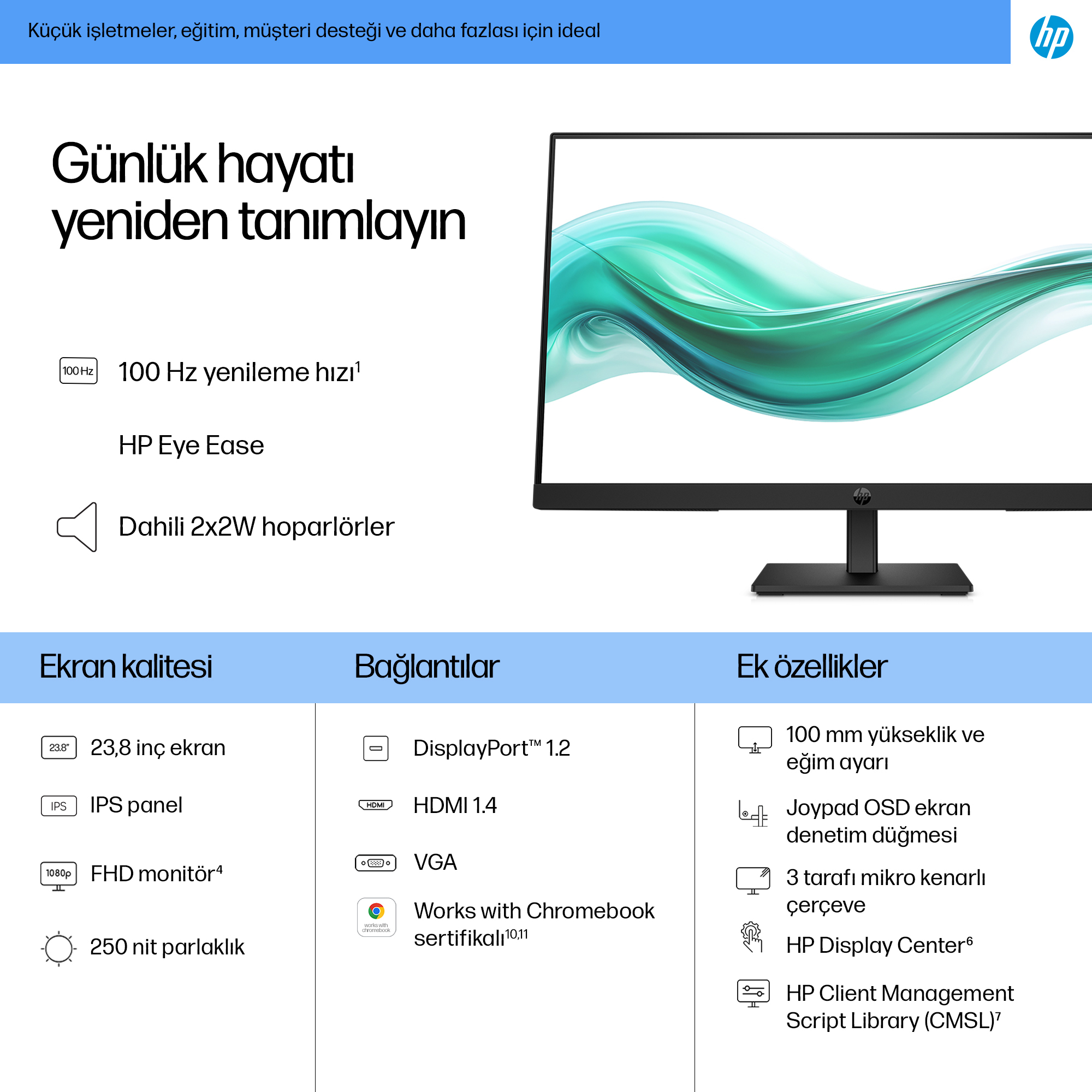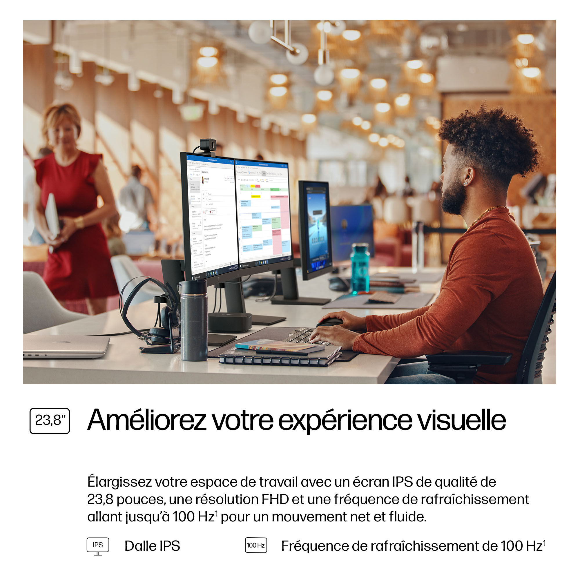 - 23.8 inch Full HD (1920 x 1080) IPS panel delivers sharp, vibrant images with wide viewing angles for collaborative workspaces.