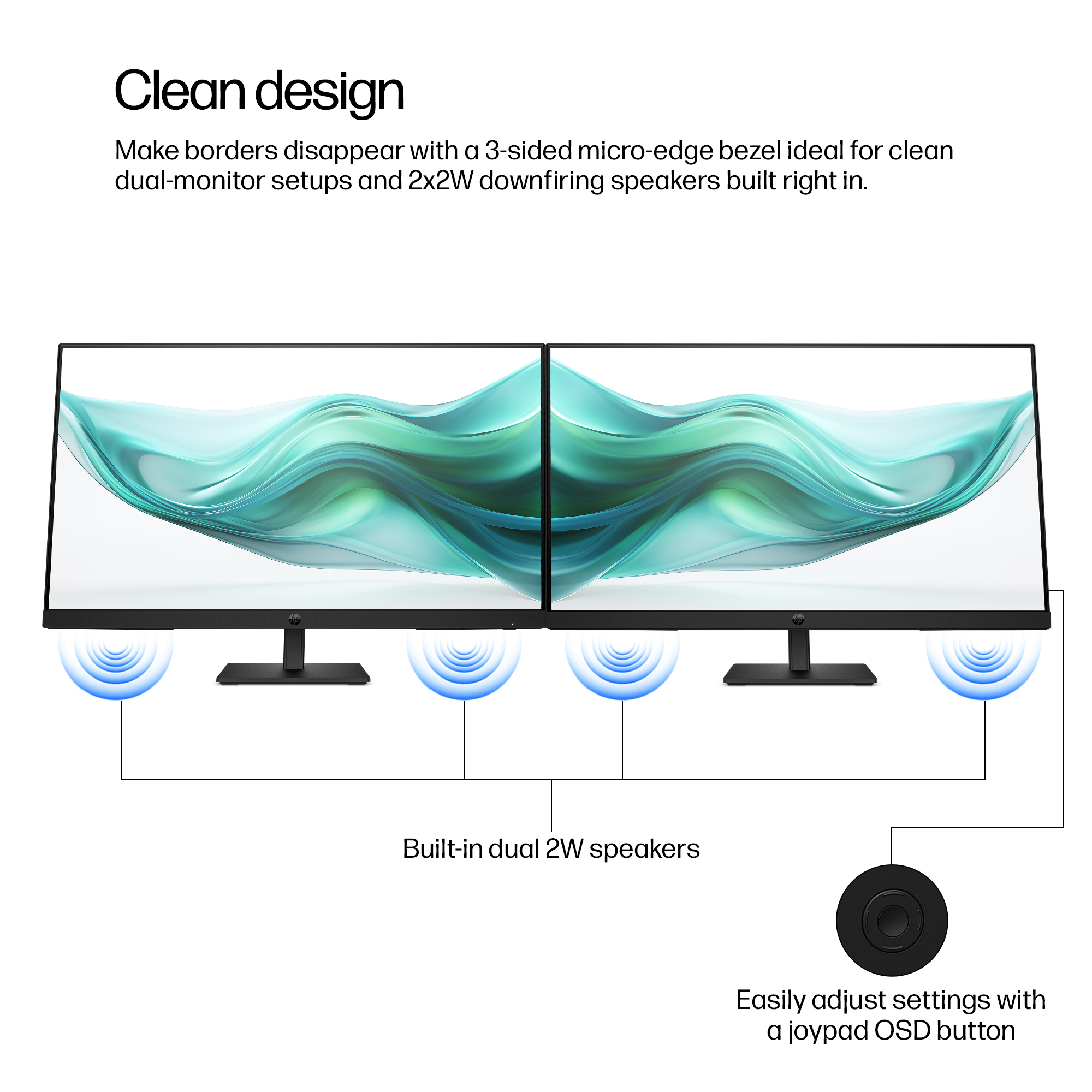 - 27-inch Full HD (1920 x 1080) display delivers sharp, vibrant images ideal for detailed work and video conferencing.