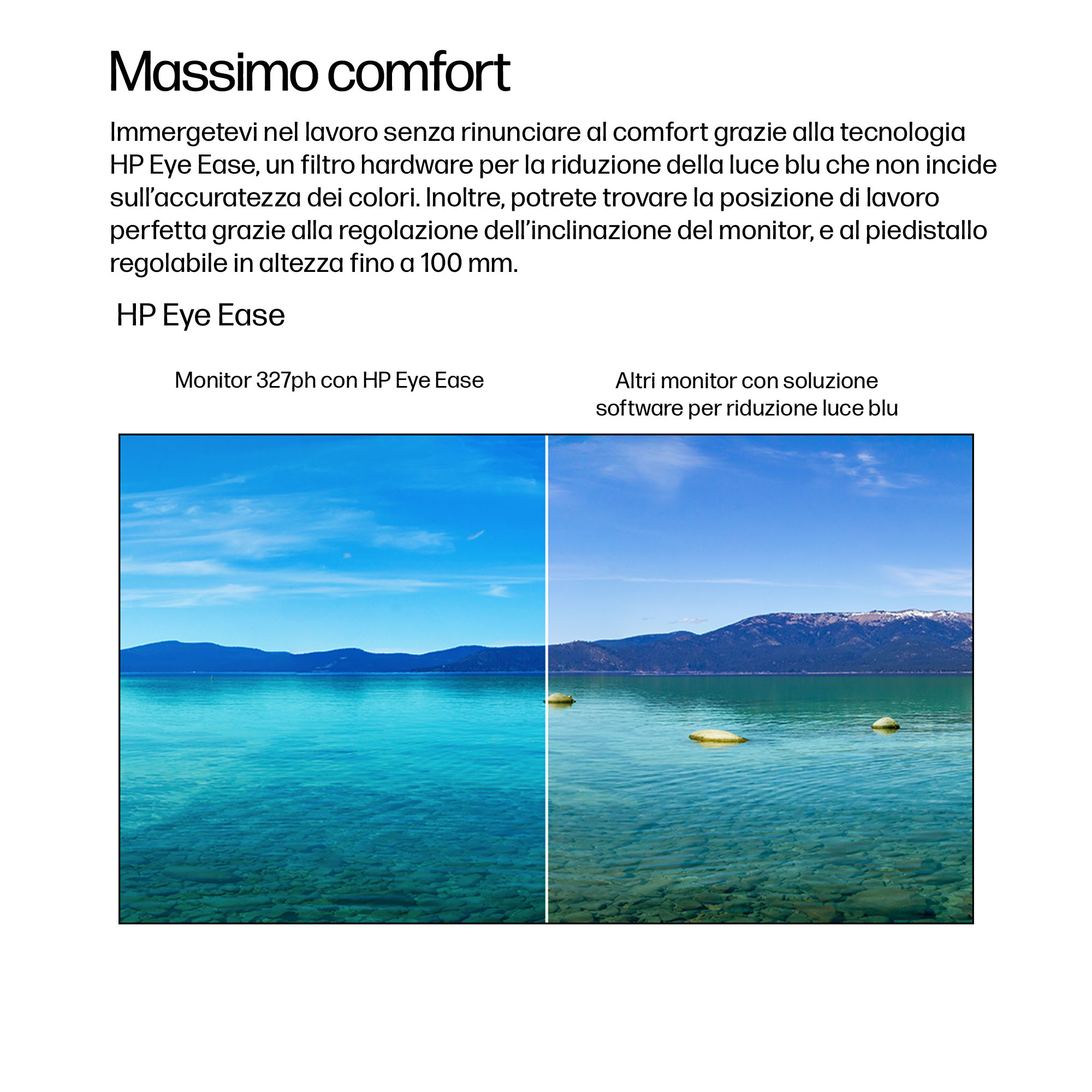 The HP Series 3 Pro 27 inch FHD Monitor – 327ph computer monitor features a sleek, minimalist design with narrow bezels that maximise screen real estate. Its matte black finish complements professional office environments, while the sturdy stand provides stable support with easy tilt adjustments. This monitor balances aesthetics and functionality, making it a smart addition to any modern workspace.