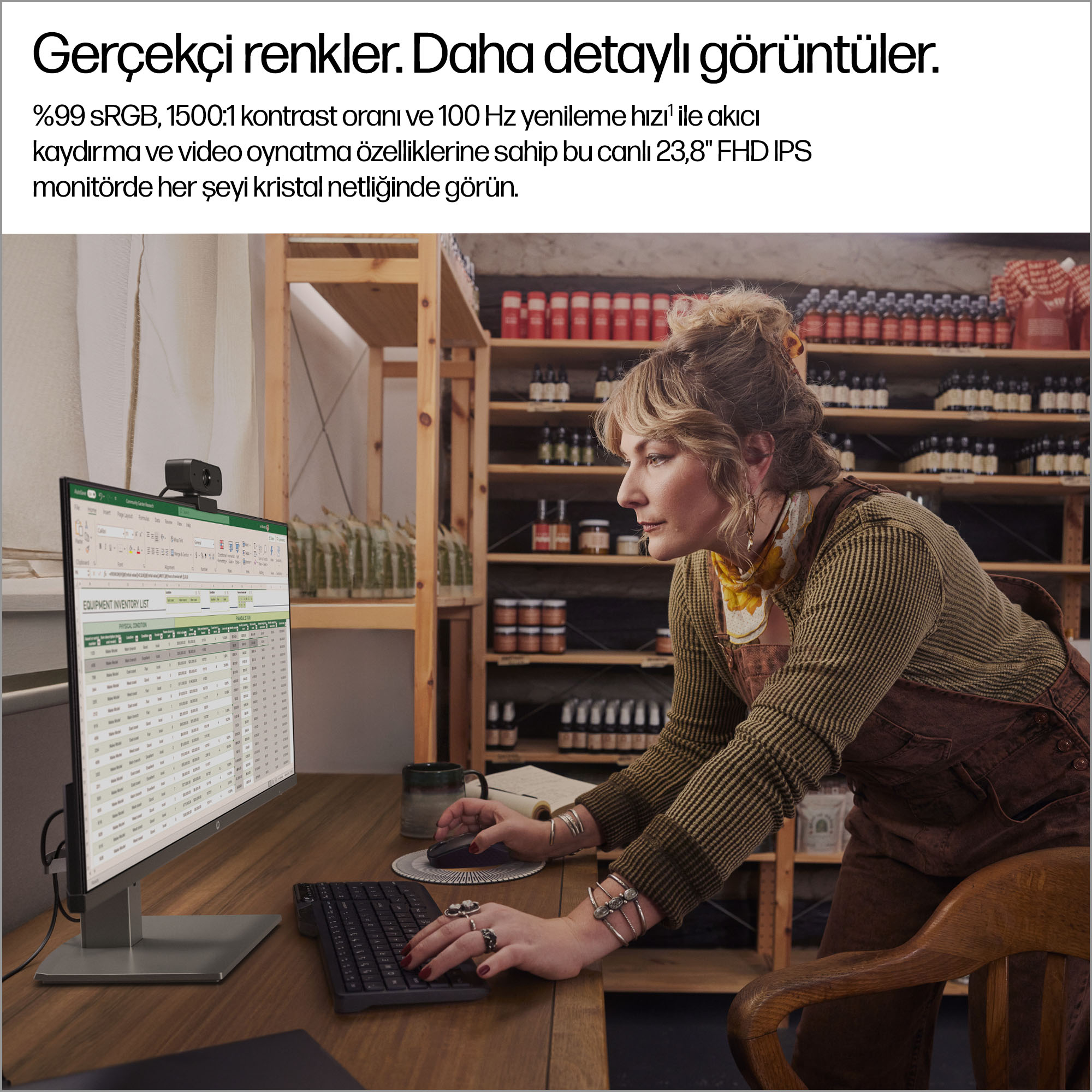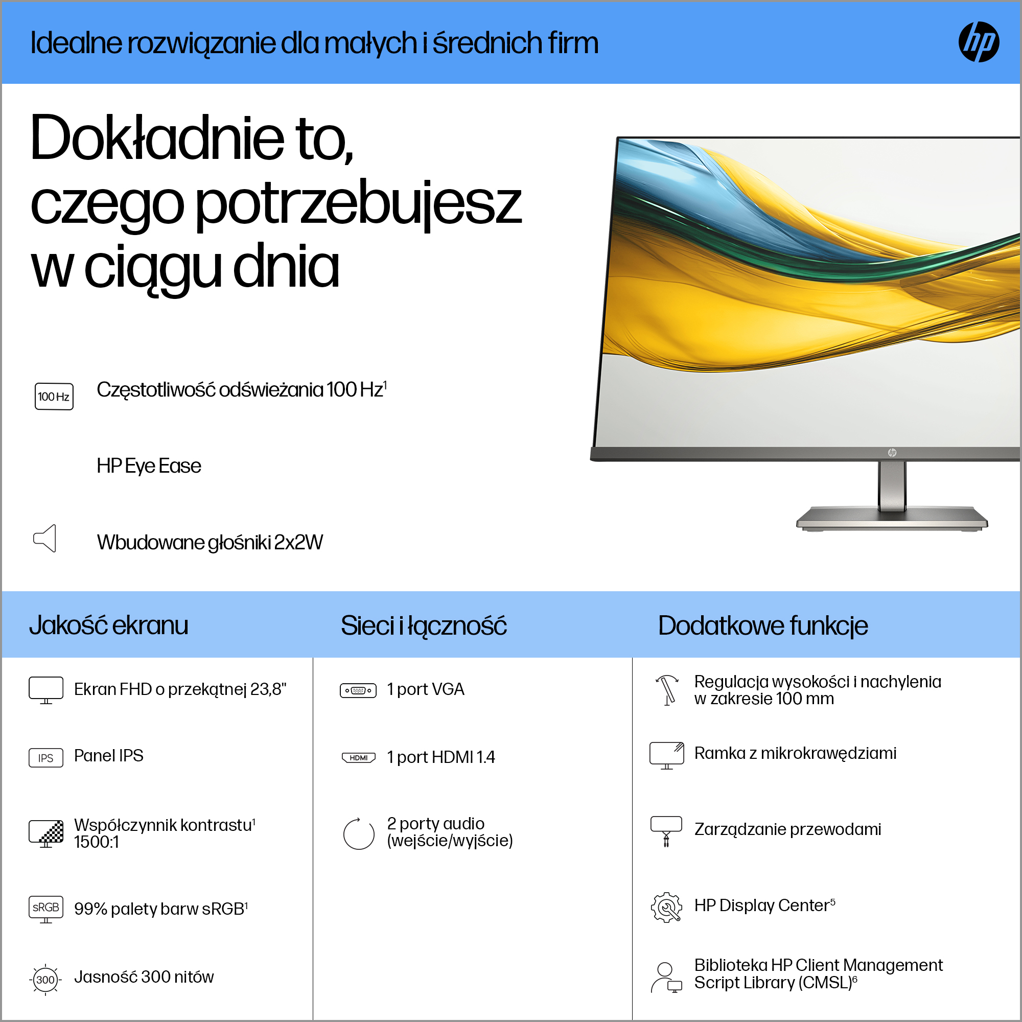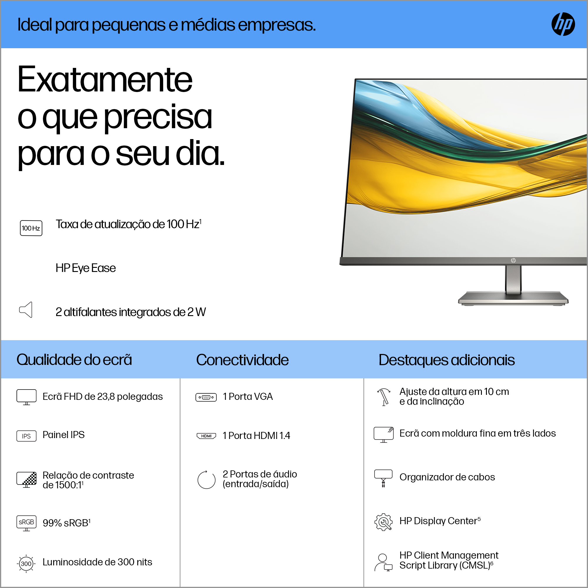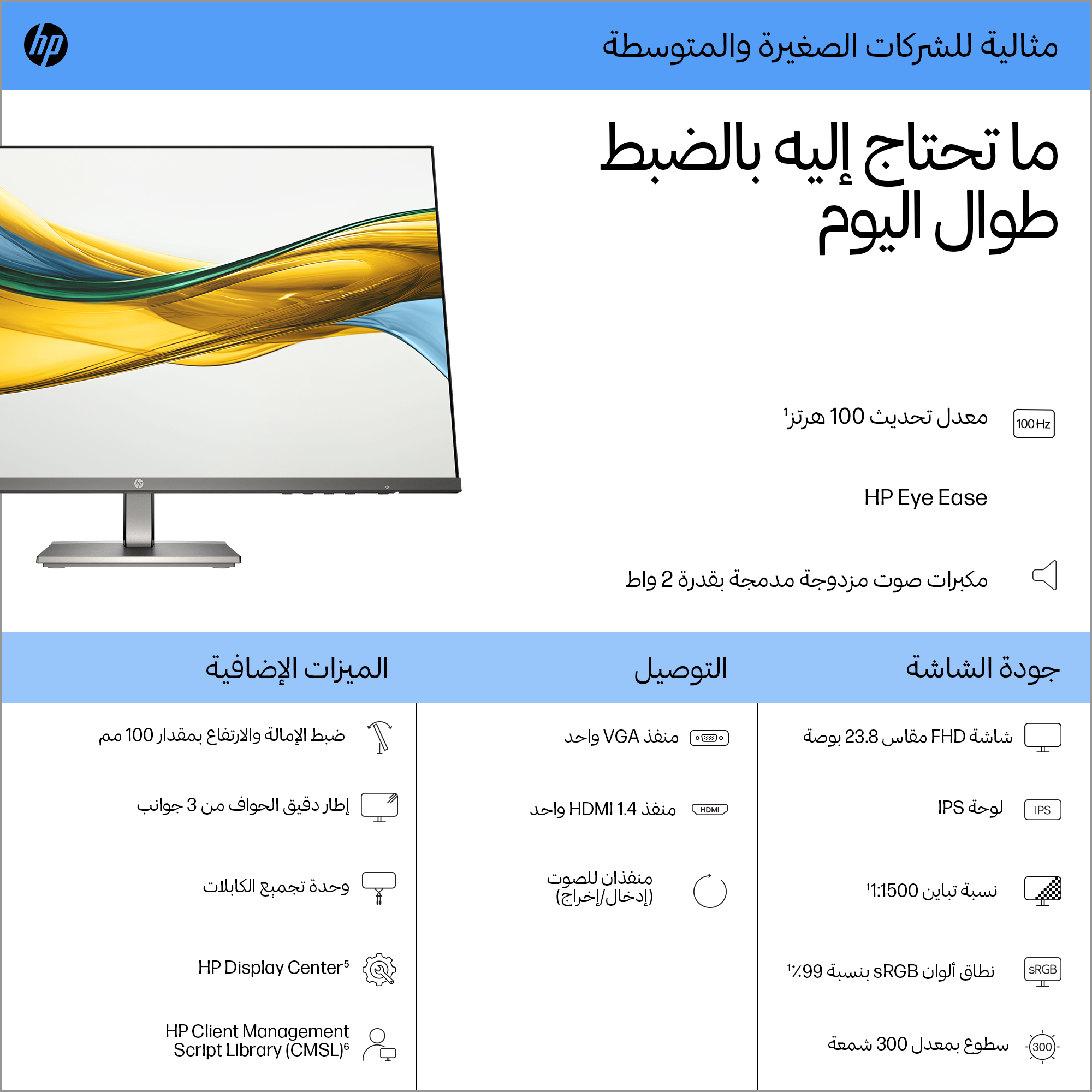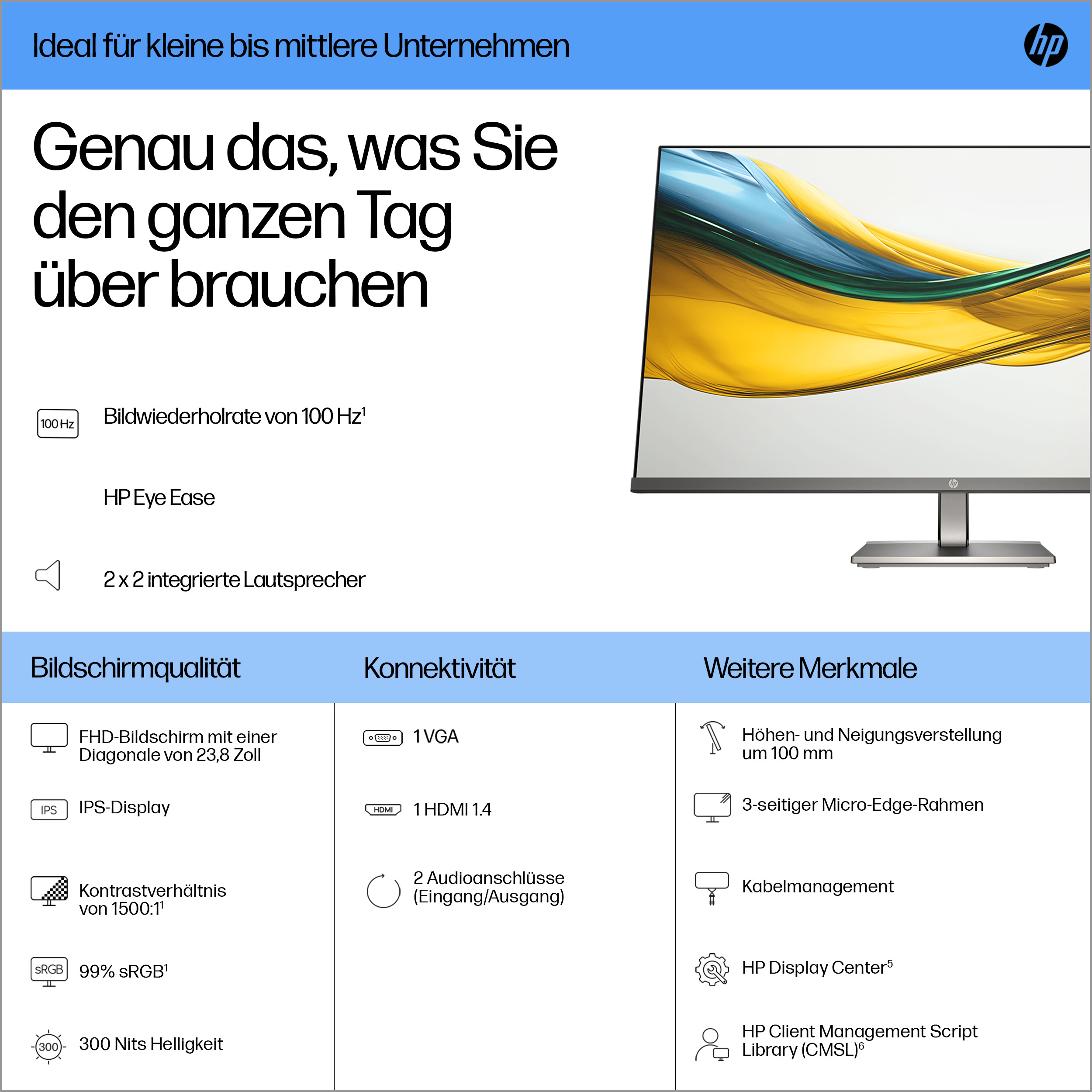 - 23.8 inch Full HD (1920 x 1080) IPS panel delivers sharp, vibrant images with wide viewing angles for collaborative work.