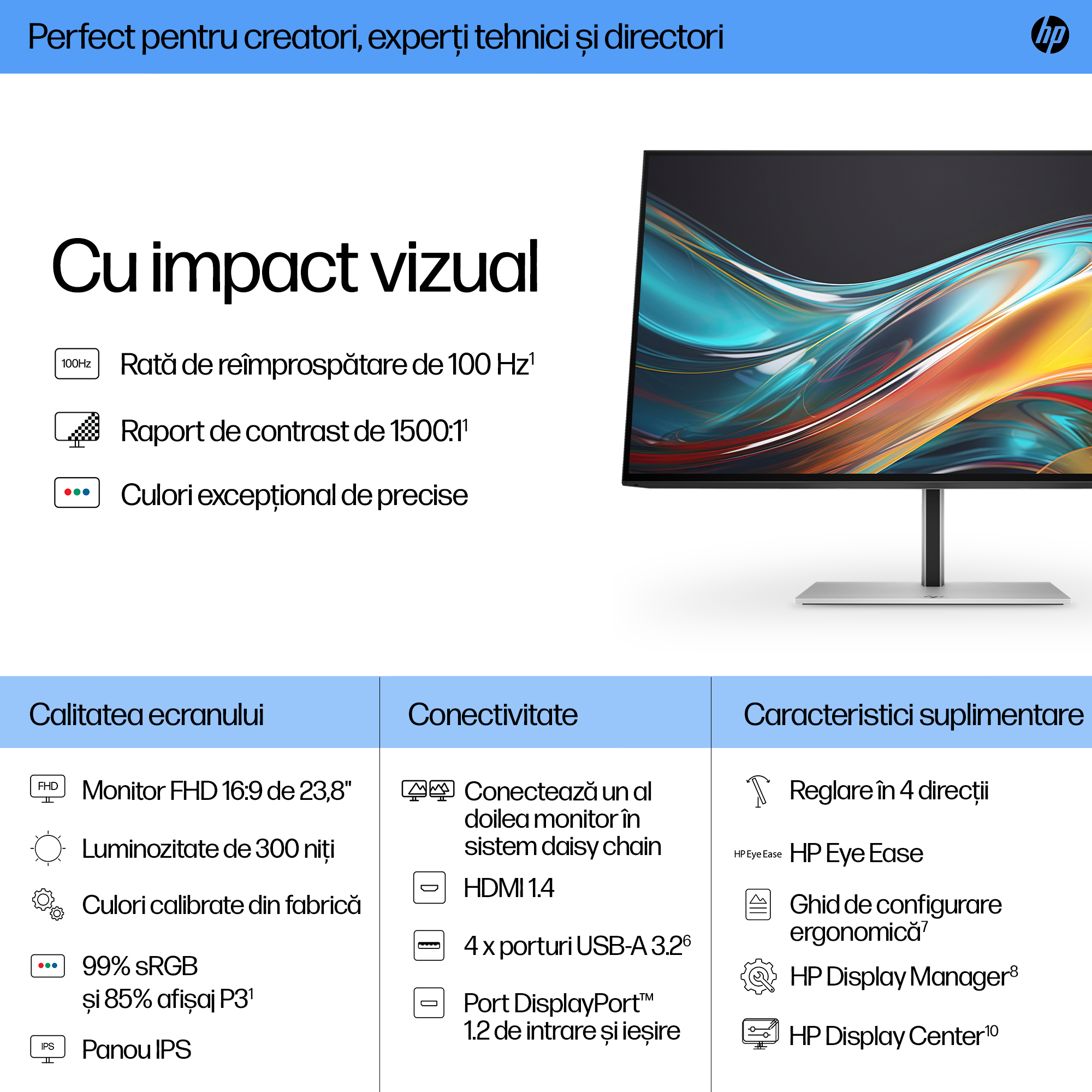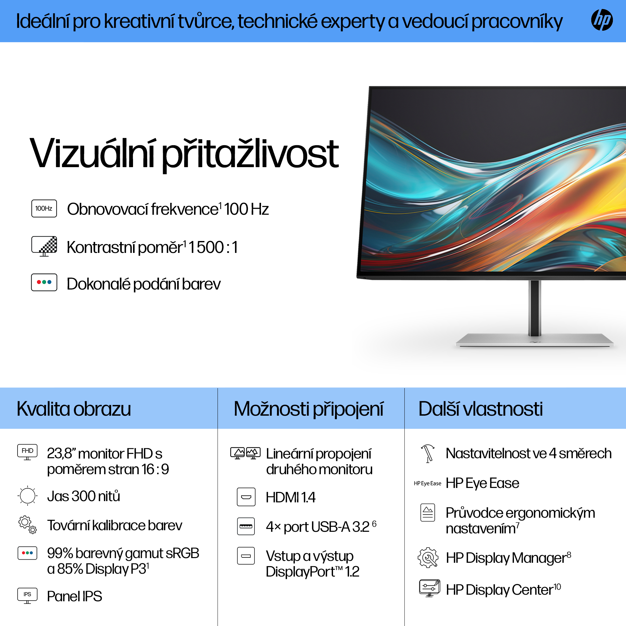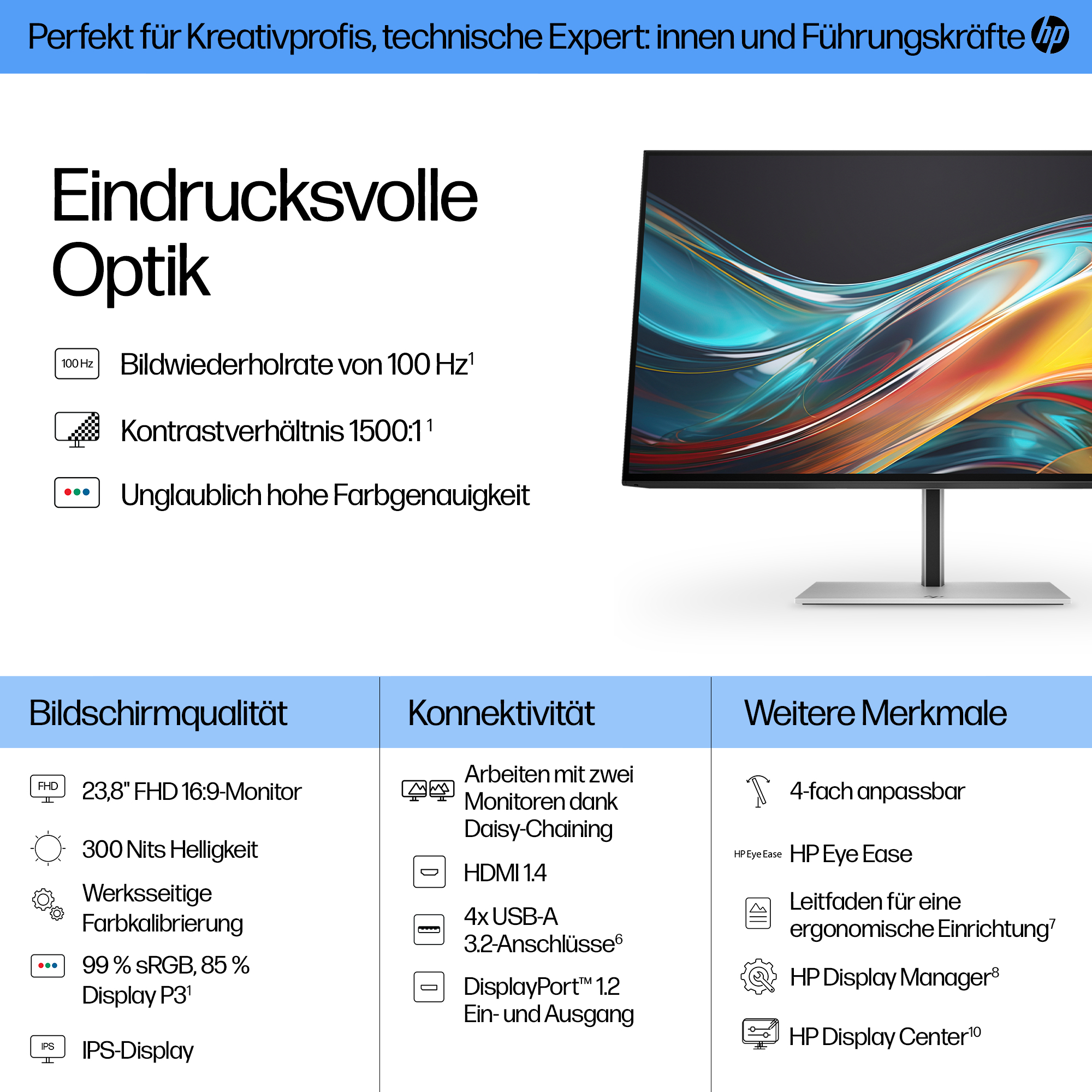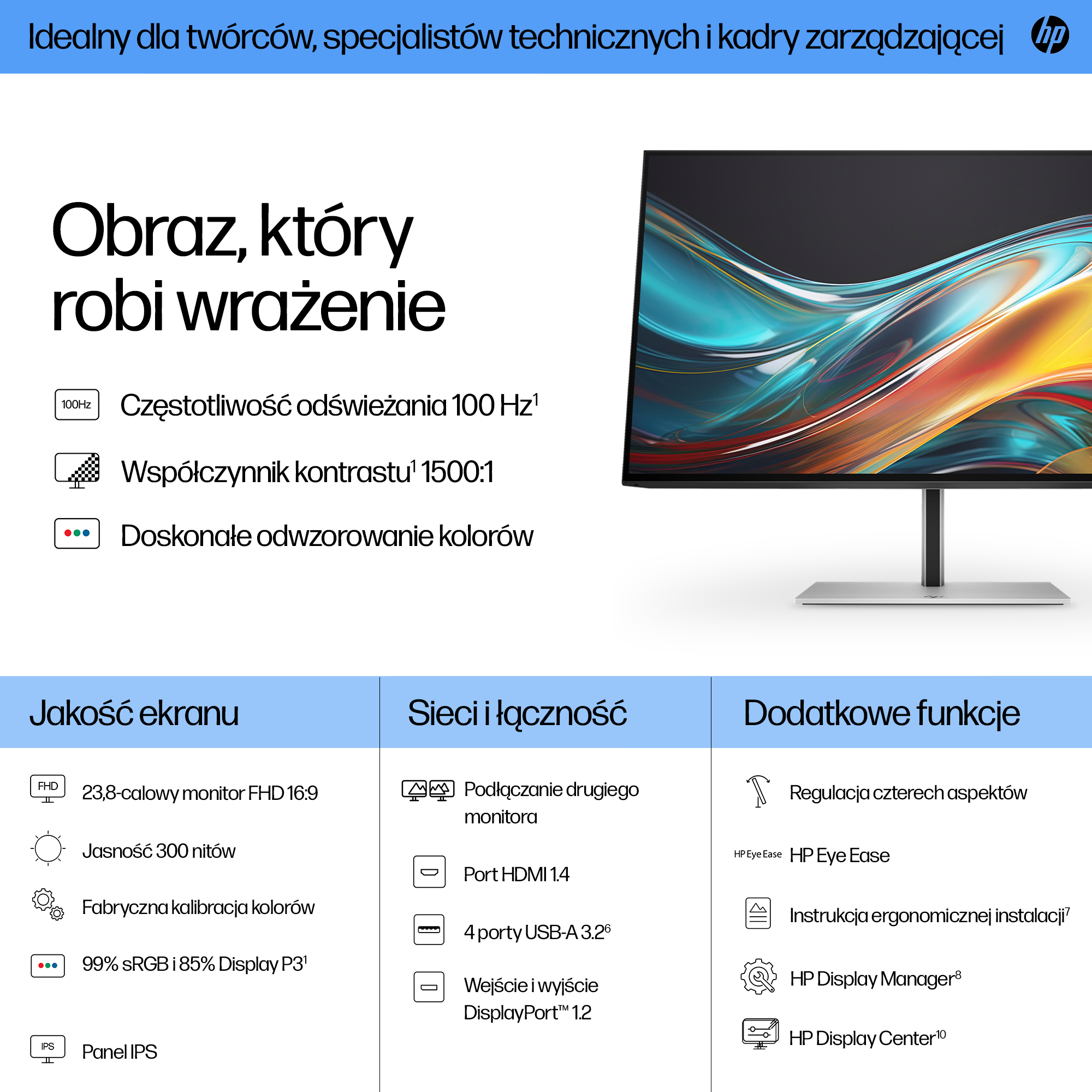 • 23.8-inch Full HD (1920 x 1080) display delivers sharp, clear images for detailed work and presentations.