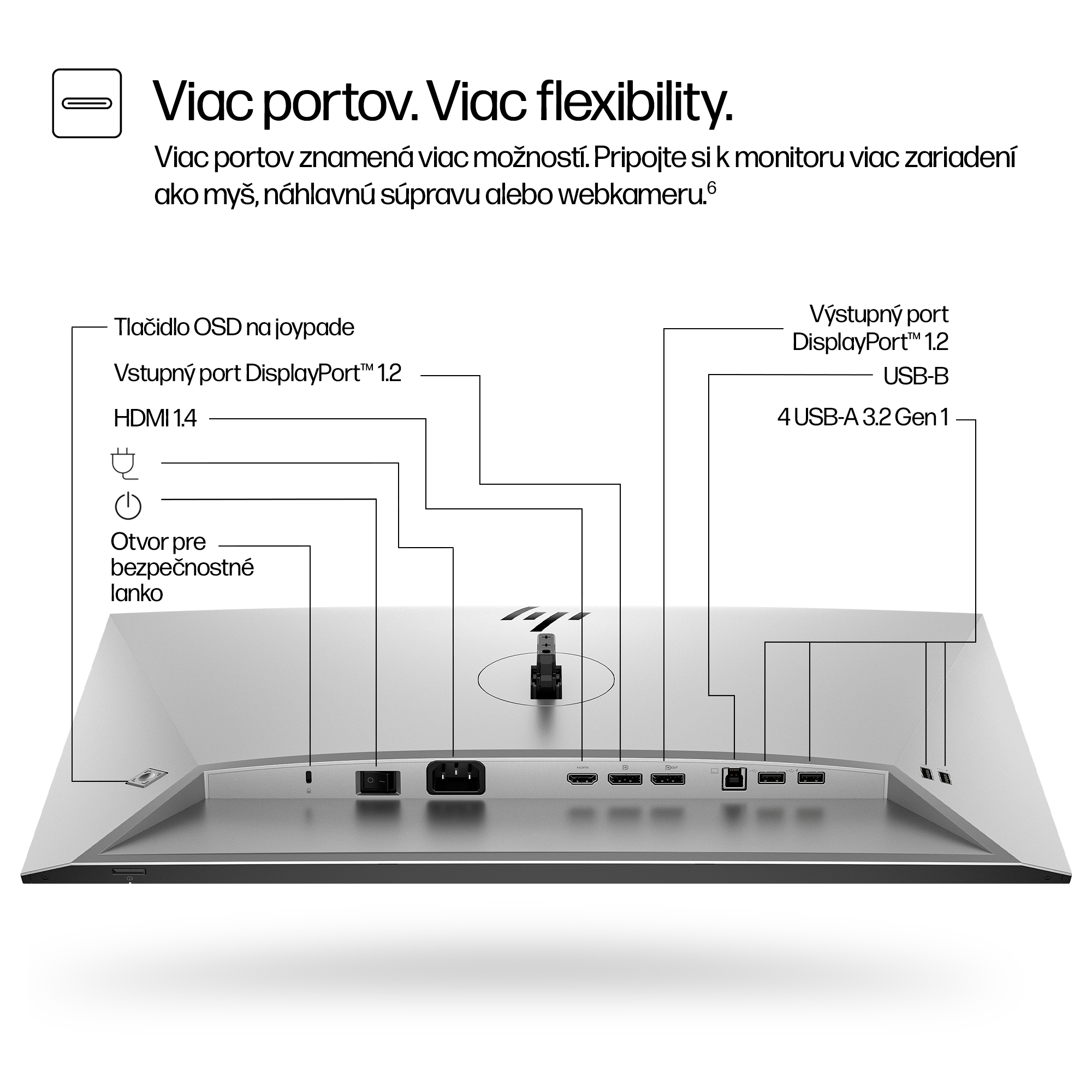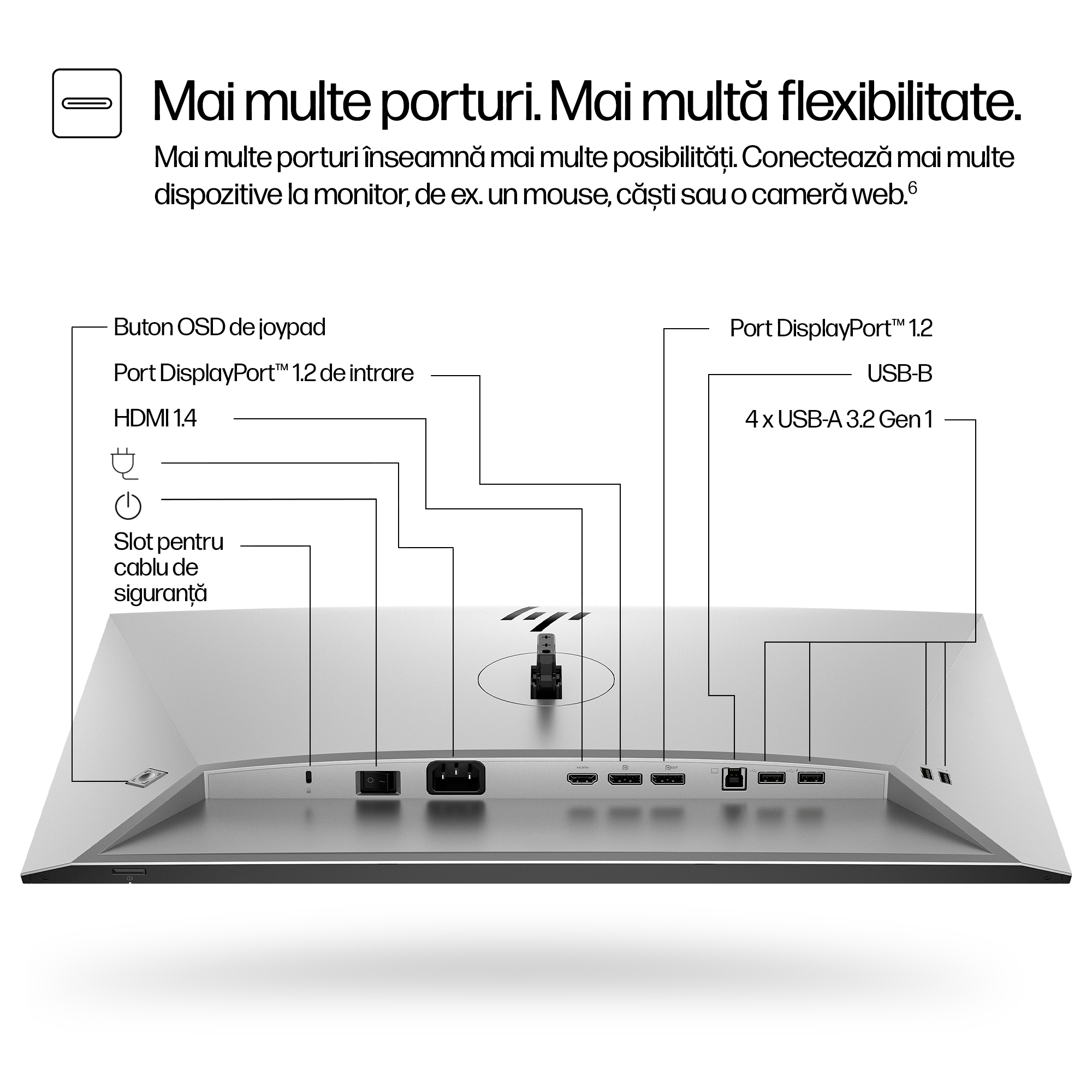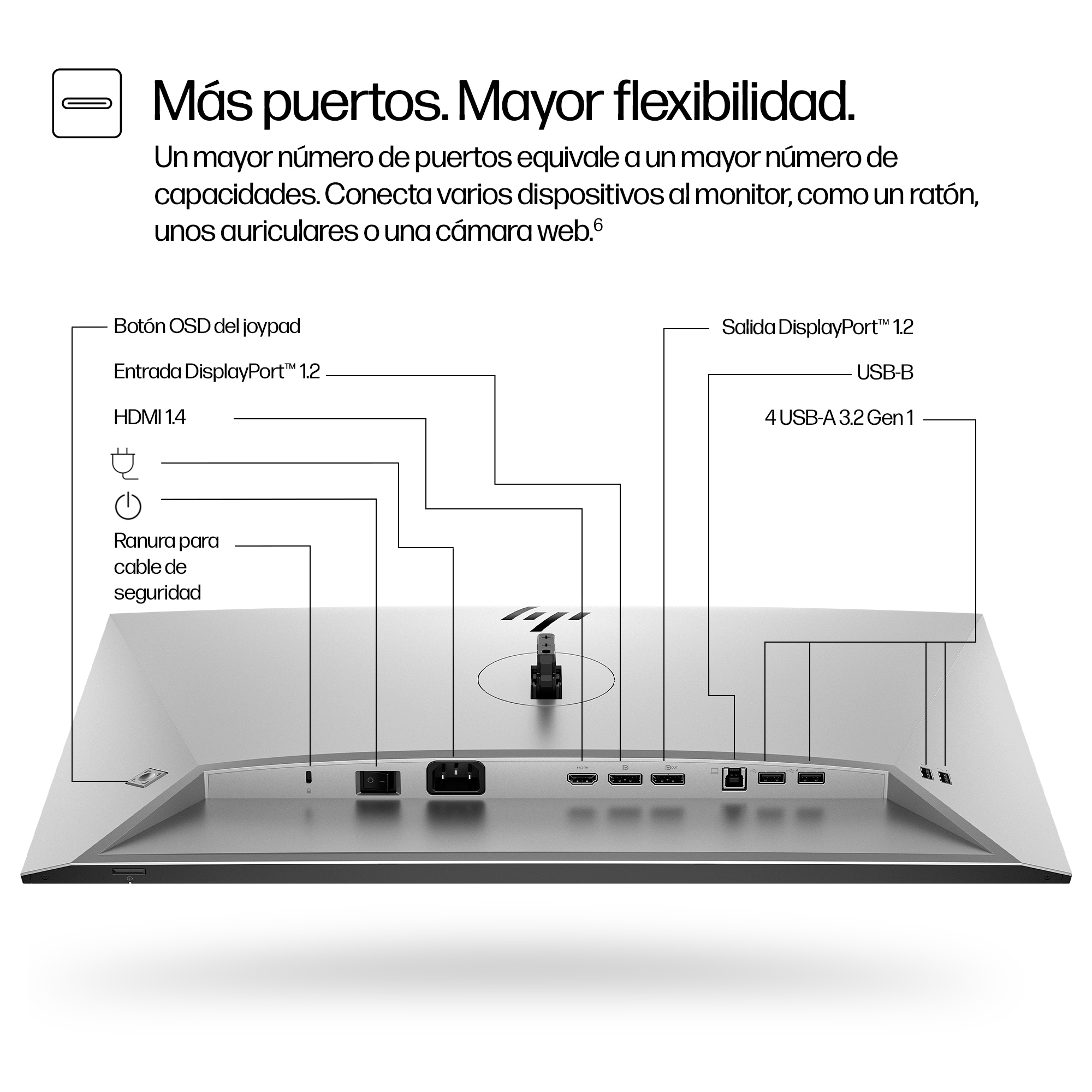 The HP Series 7 Pro 23.8 inch FHD Monitor – 724pf computer monitor features a modern, minimalist design with slim bezels that maximise screen real estate. Its matte black finish complements any professional workspace, while the sturdy stand provides stability. The overall aesthetic is clean and functional, reflecting the needs of contemporary hybrid workplaces.