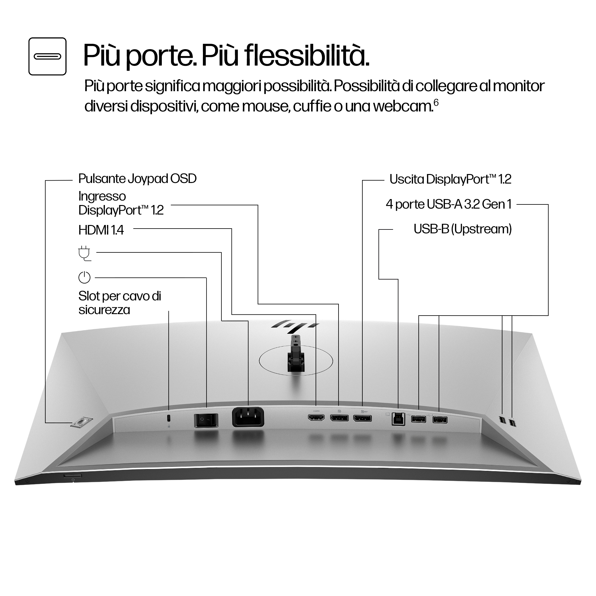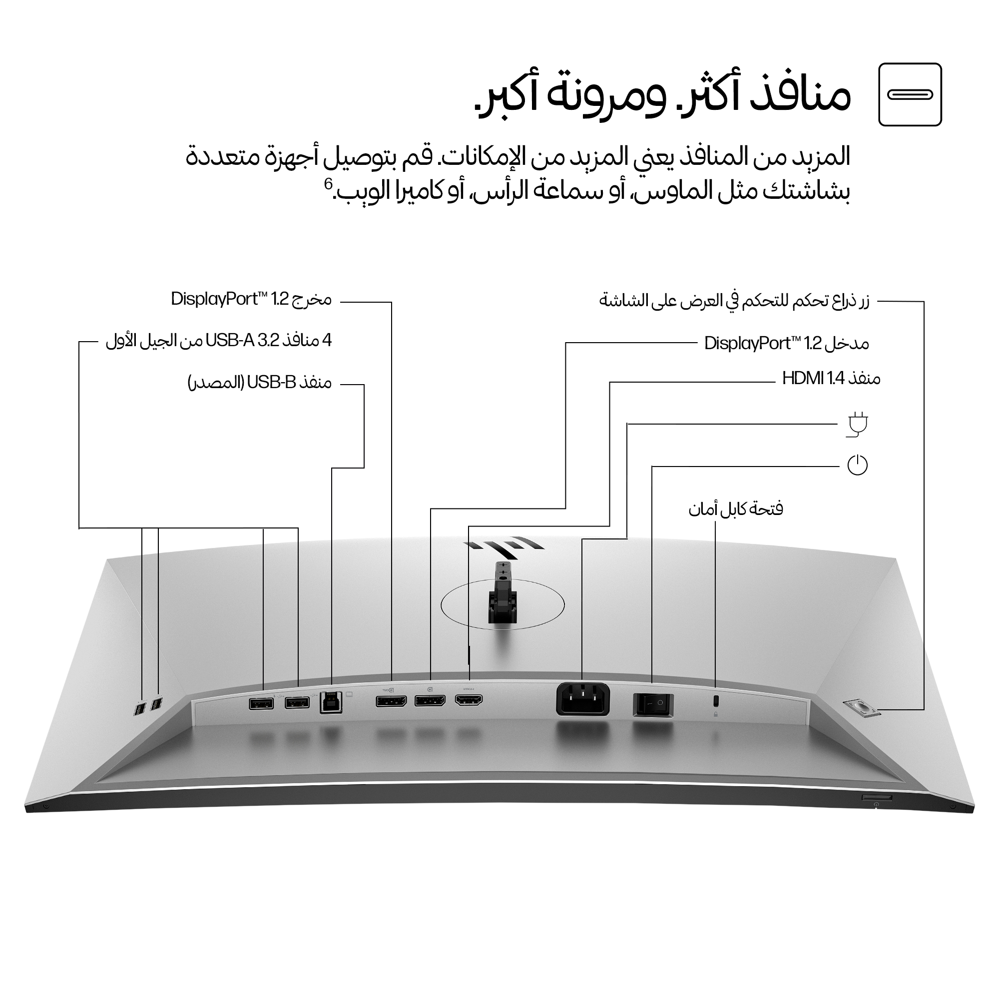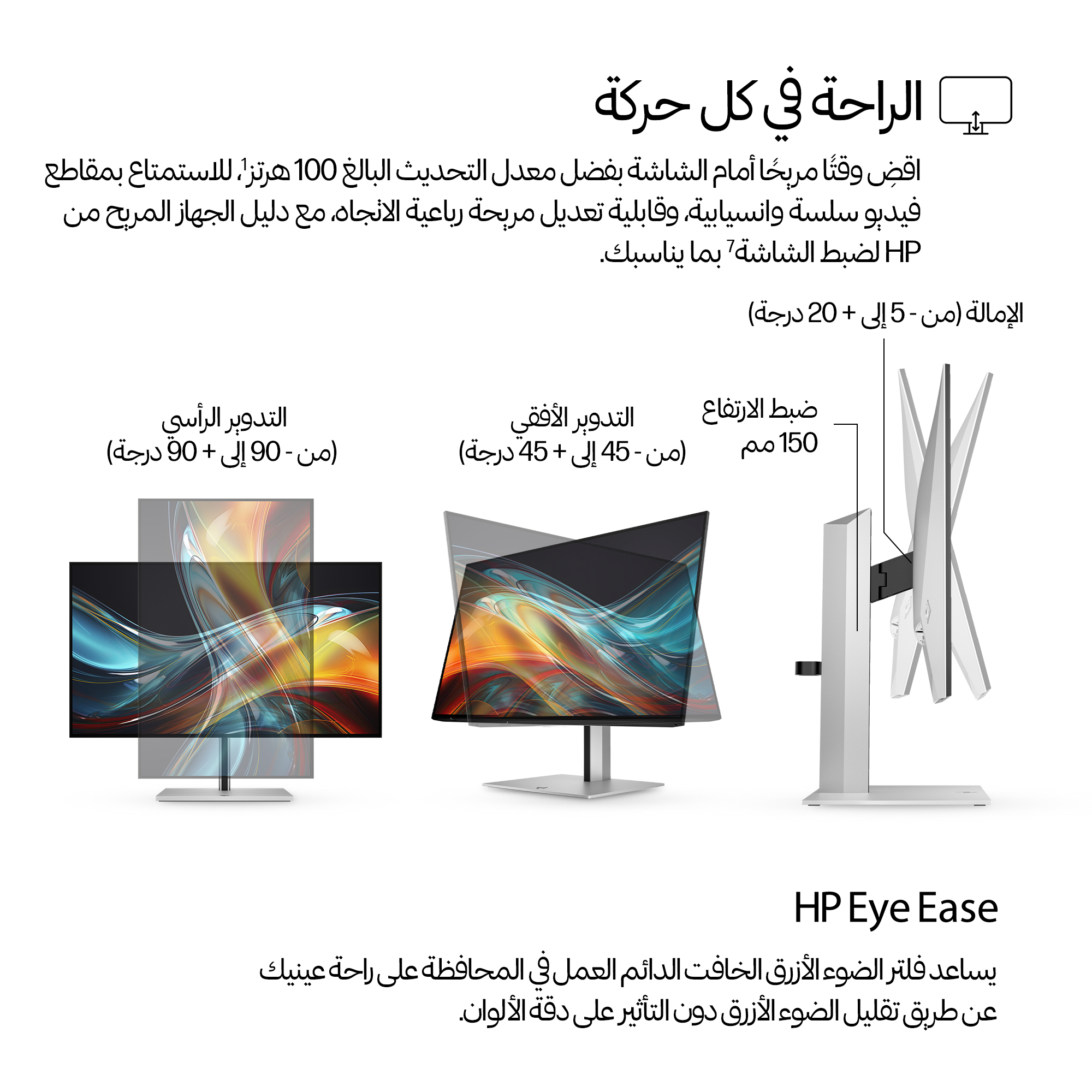 • Ergonomic stand with height, tilt, swivel, and pivot adjustments to support comfortable, all-day use.