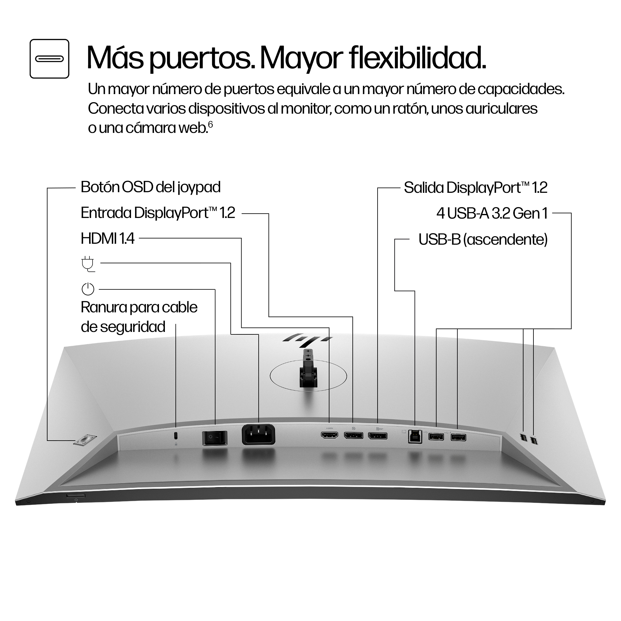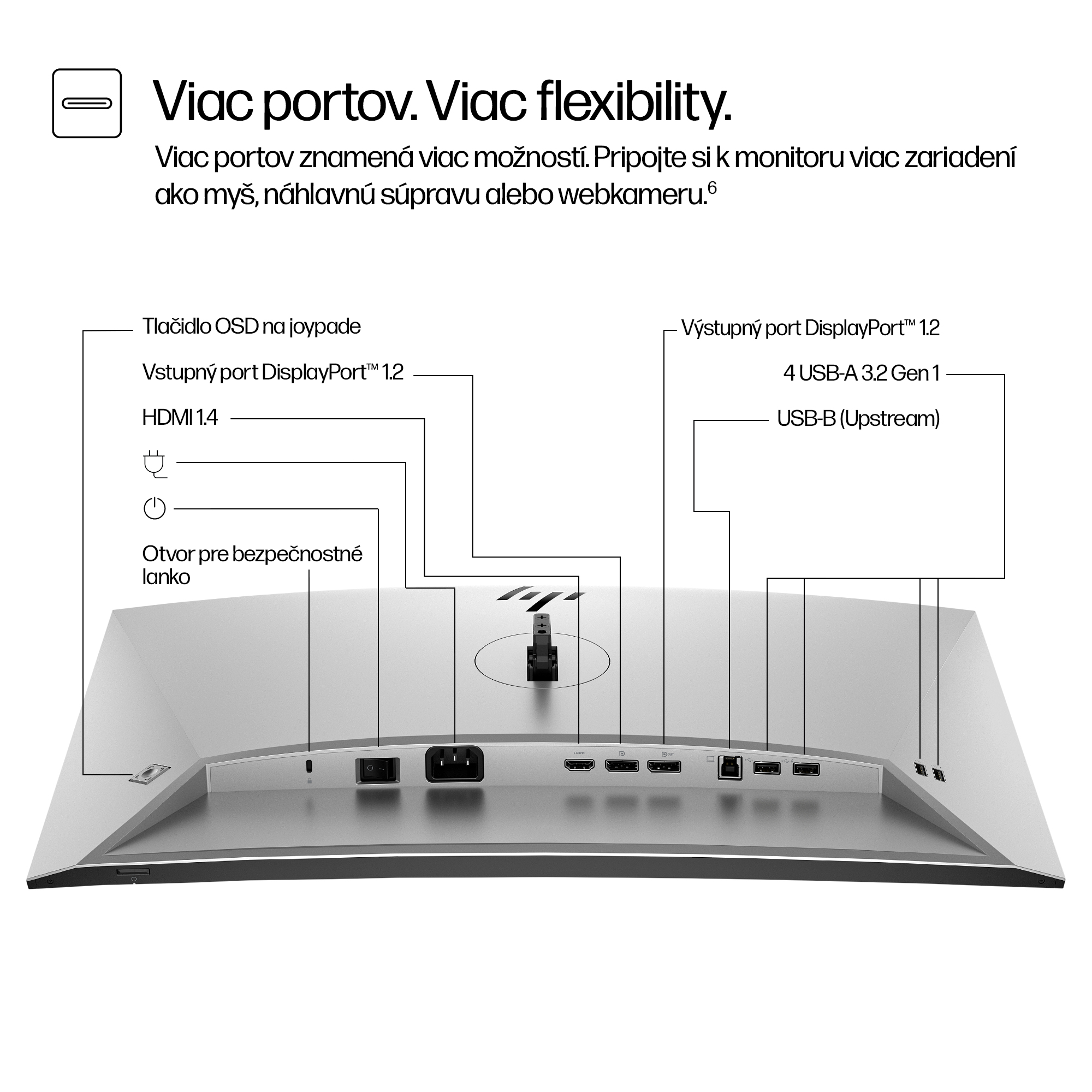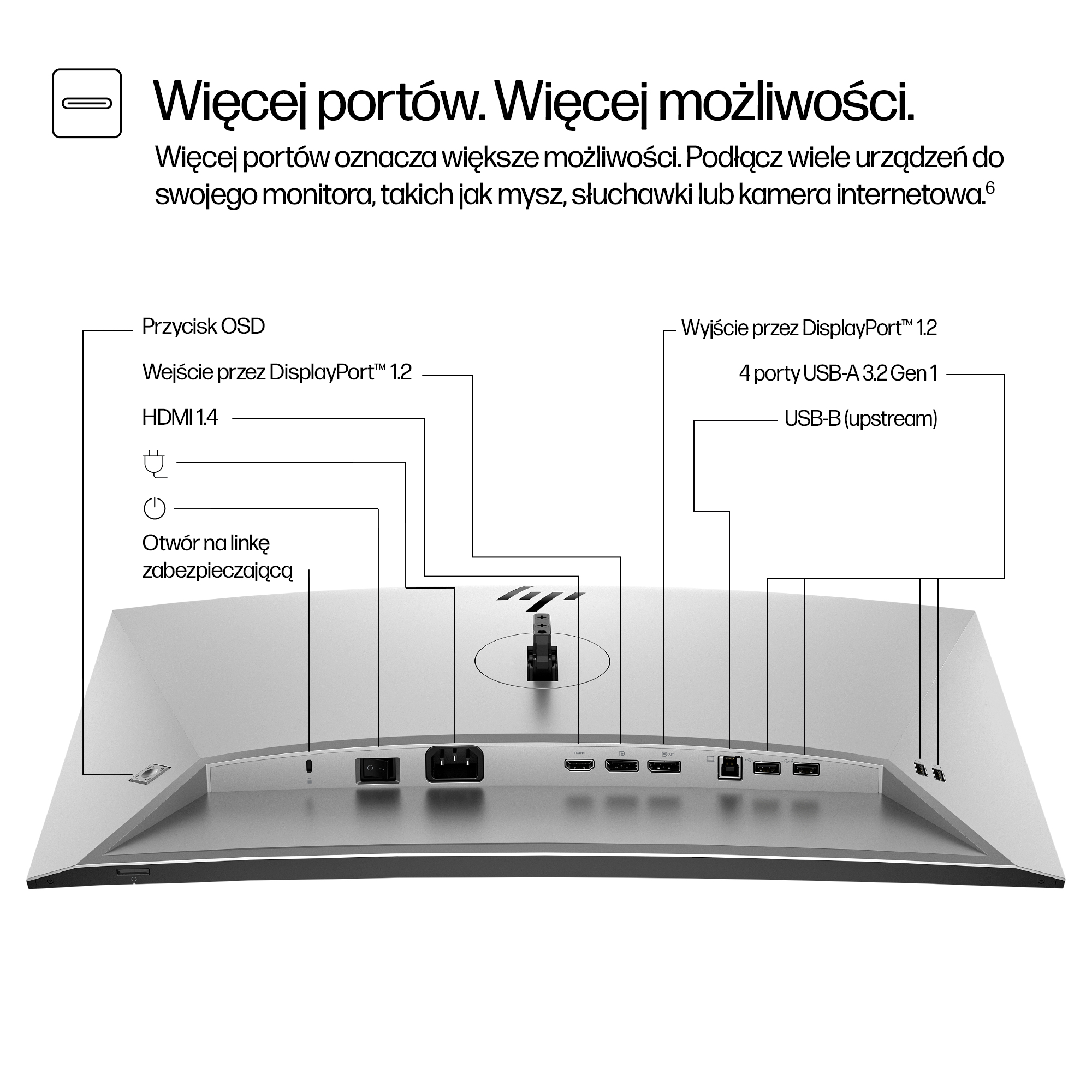 • Ergonomic stand with height, tilt, swivel, and pivot adjustments to support comfortable, all-day use.