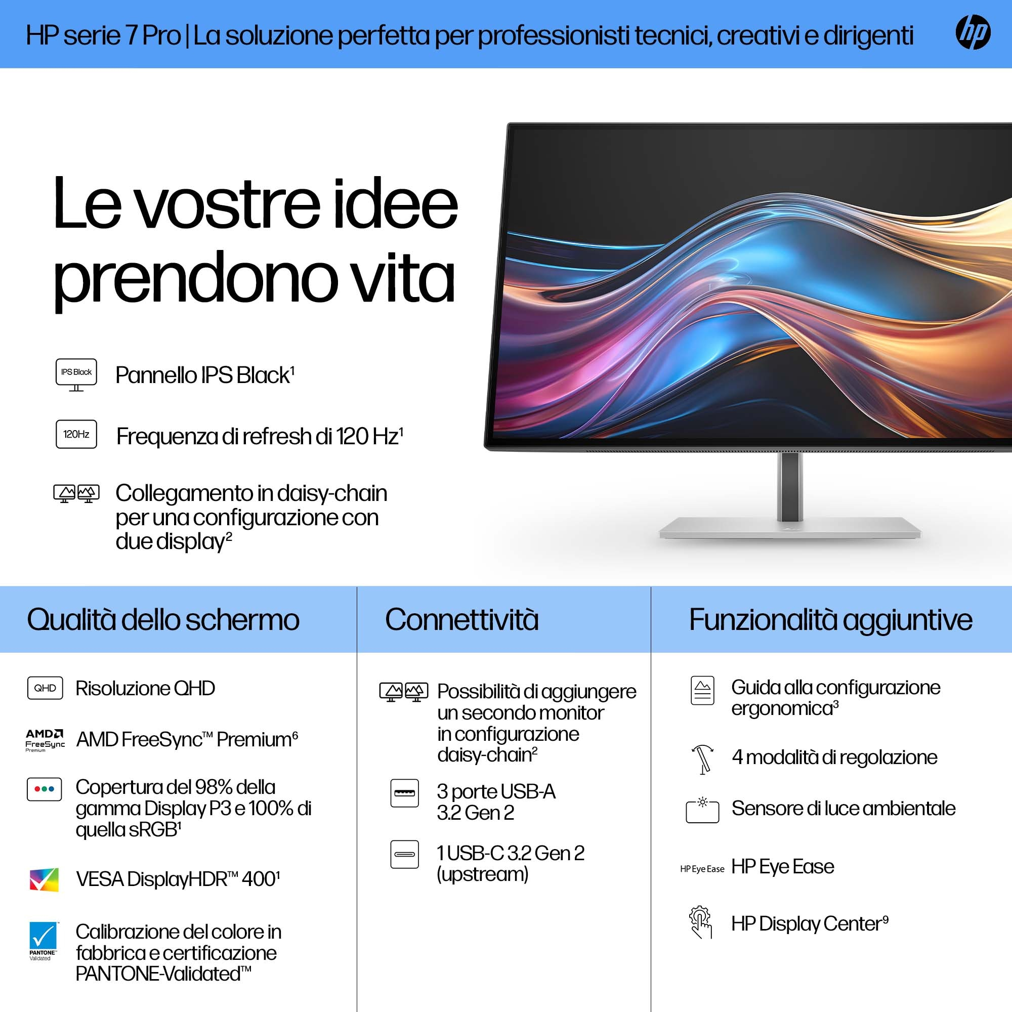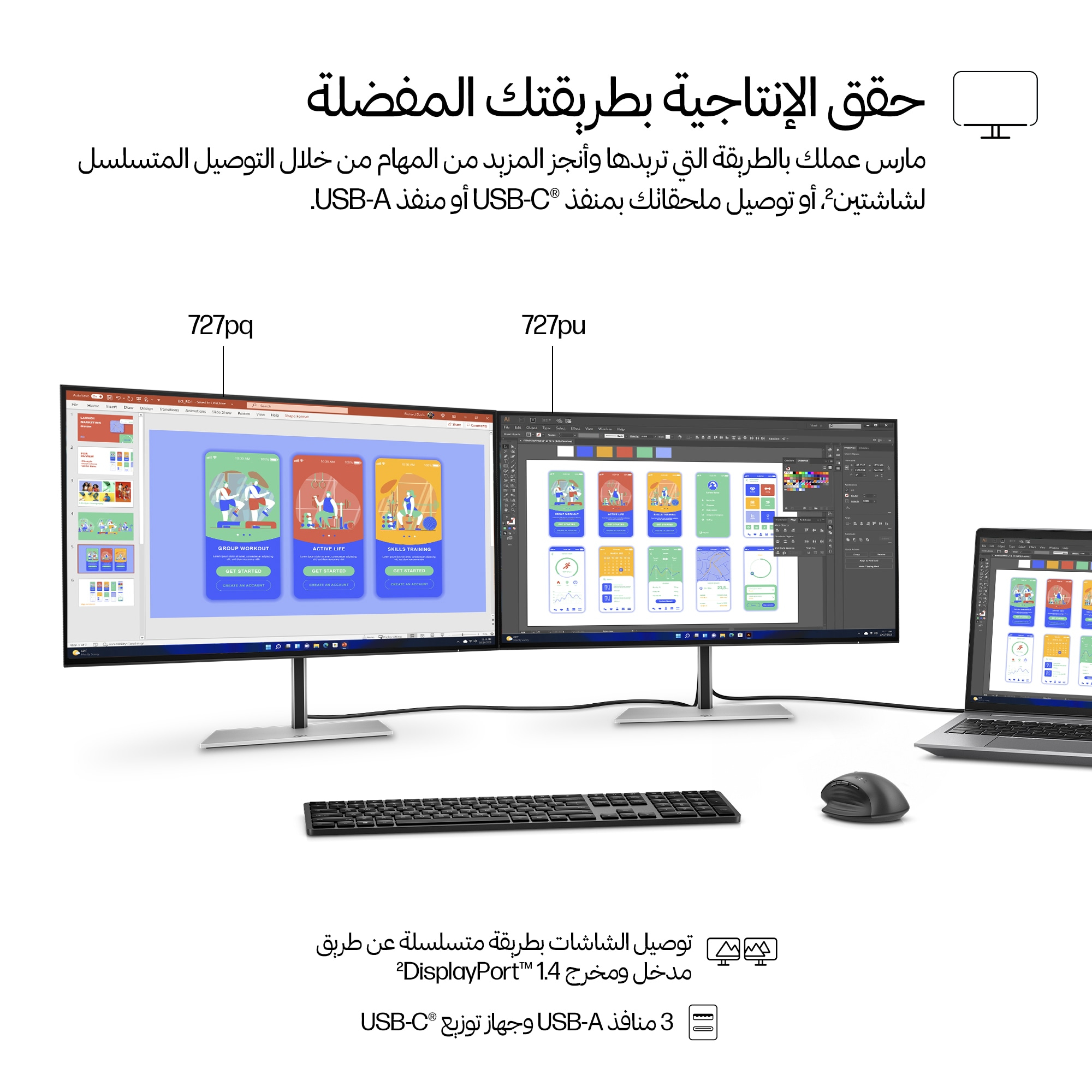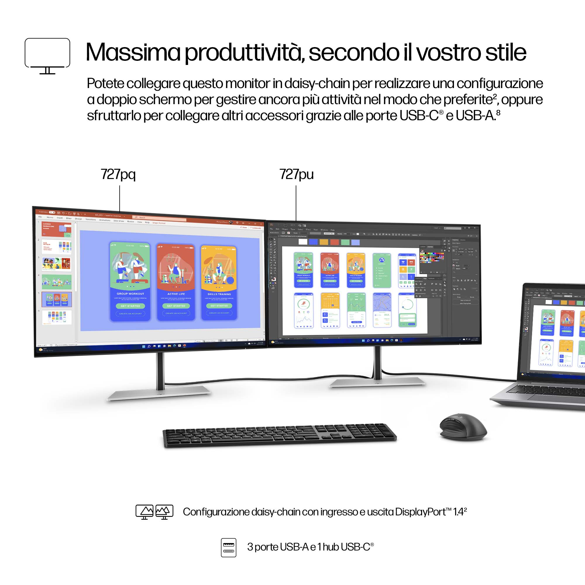 - 27-inch QHD (2560 x 1440) resolution delivers sharp, vibrant visuals for detailed workflows and presentations.