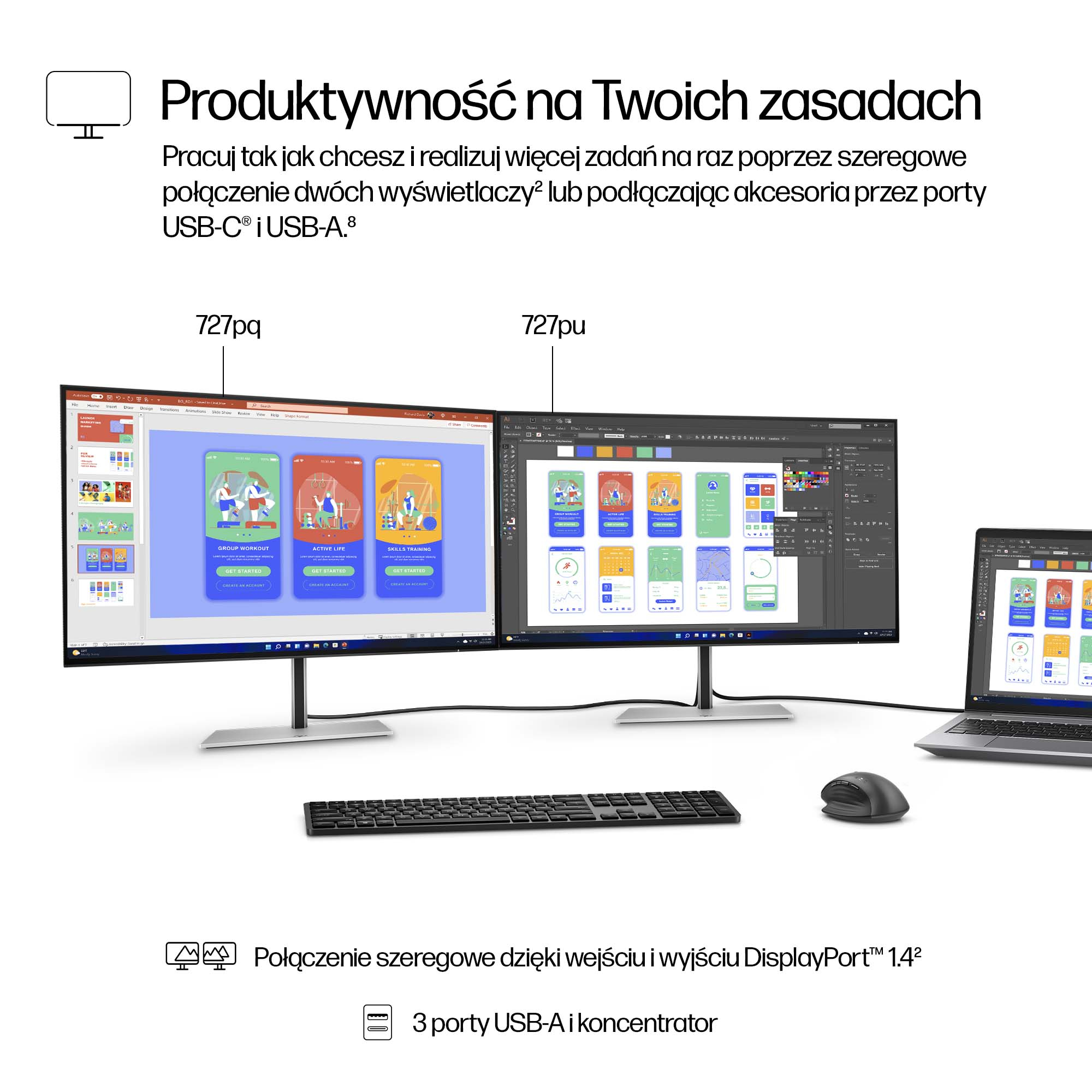 - The 27-inch display size strikes a balance between ample screen real estate and desk space efficiency, ideal for hybrid work setups.