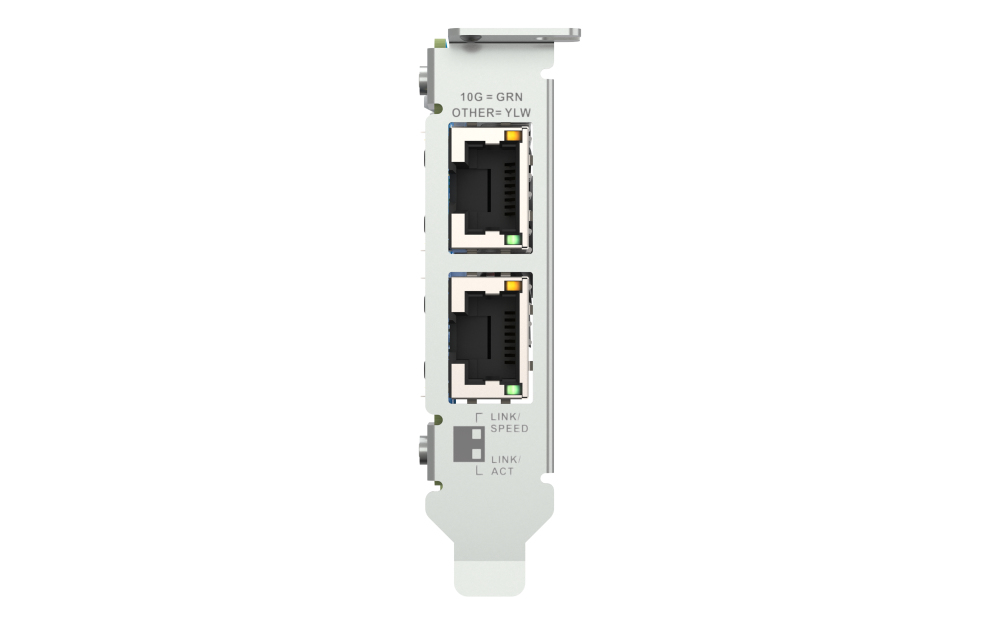 - Its dual RJ45 ports provide backward compatibility with 1GbE networks, allowing gradual infrastructure upgrades.