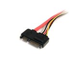 The StarTech.com SATA22PEXT SATA cable features a sleek, low-profile design that fits easily into tight spaces within server racks and desktop setups. Its flexible yet sturdy build allows for easy routing and cable management, maintaining a clean and professional workspace. The connectors are designed for secure, snap-in connections that prevent accidental disconnections during operation.