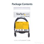 The StarTech.com TBLT3MM1M Thunderbolt cable features a sleek, professional design with a matte black finish that complements modern office aesthetics. Its flexible yet robust cable jacket resists tangling and wear, ensuring durability in high-usage environments. The compact connectors provide a secure fit without adding bulk, making it an unobtrusive addition to any workstation.