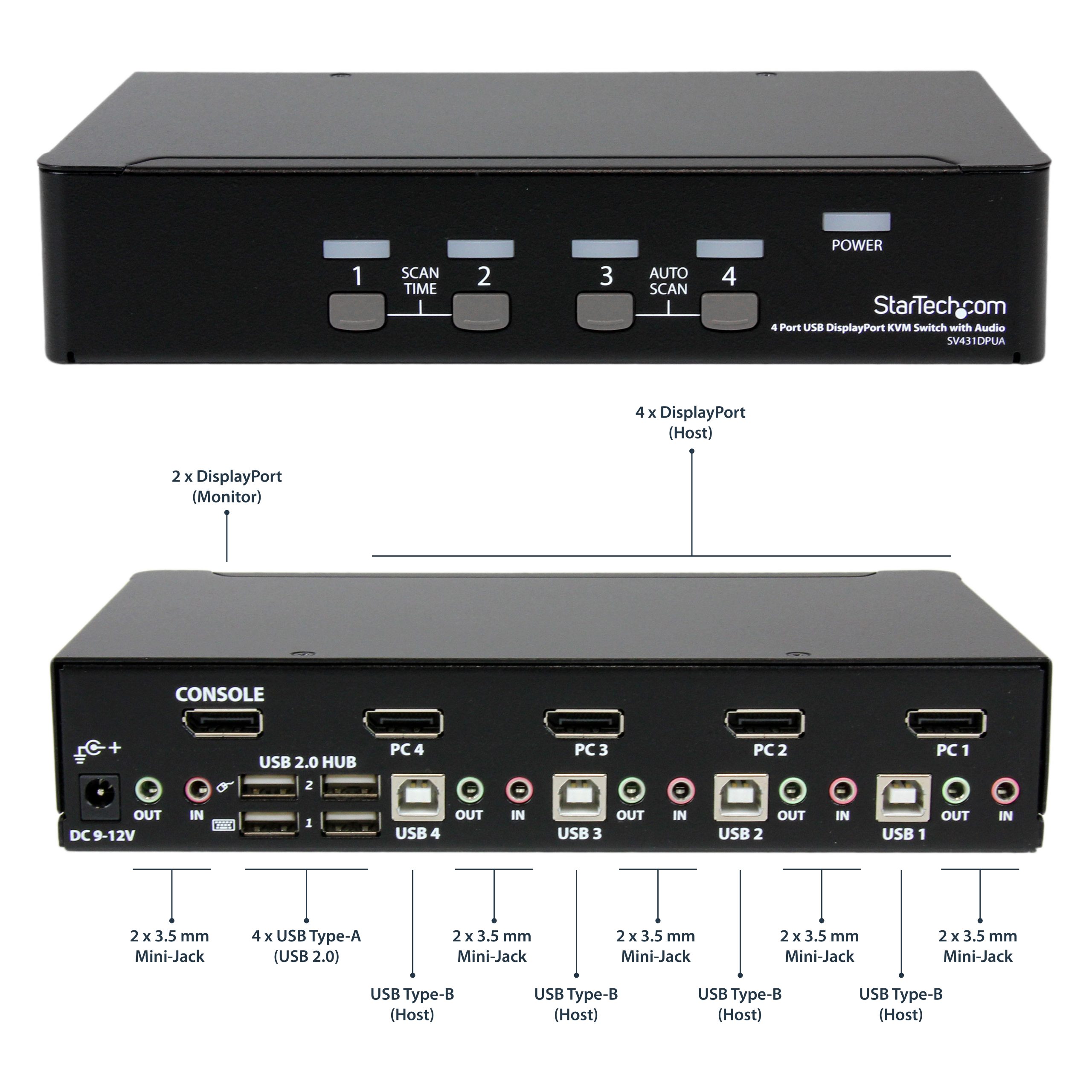 - The StarTech.com SV431DPUA KVM switch supports DisplayPort 1.2, enabling resolutions up to 4K UHD at 60Hz, ideal for high-definition applications and detailed graphical work.