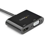 The StarTech.com DP2VGAHD20 video cable adapter features a sleek, compact form factor with a sturdy molded housing that withstands daily use. Its lightweight design makes it highly portable for IT professionals managing multiple workspaces. The black finish complements professional office aesthetics, blending seamlessly with existing AV equipment.