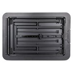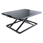 The StarTech.com LAPTOP-SIT-STAND desktop sit-stand workplace boasts a sleek, modern aesthetic with a matte black finish that complements any office décor. Its minimalist design ensures it blends effortlessly into professional environments without overwhelming desk space. The smooth edges and sturdy construction provide a premium feel, reflecting its focus on both form and function.