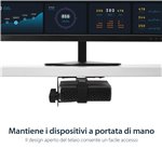 - Improves workspace organisation by freeing up desk space and reducing trip hazards.