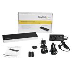 The StarTech.com USB3DOCKH2DP laptop dock/port replicator features a sleek, matte black finish that complements any professional workspace. Its compact footprint allows it to fit comfortably on desks without overwhelming the area. The sturdy build quality ensures durability for daily use, while the intuitive port layout provides easy access to all connections. Overall, it balances functionality with a modern aesthetic suitable for any office environment.