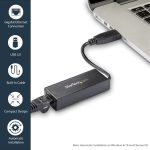 The StarTech.com USB31000S network card features a sleek, compact design that fits easily into any workspace or mobile setup. Its durable casing ensures longevity, while the lightweight build makes it highly portable for on-the-go professionals. The device’s minimalist aesthetic complements modern office environments, reflecting a balance of functionality and style.