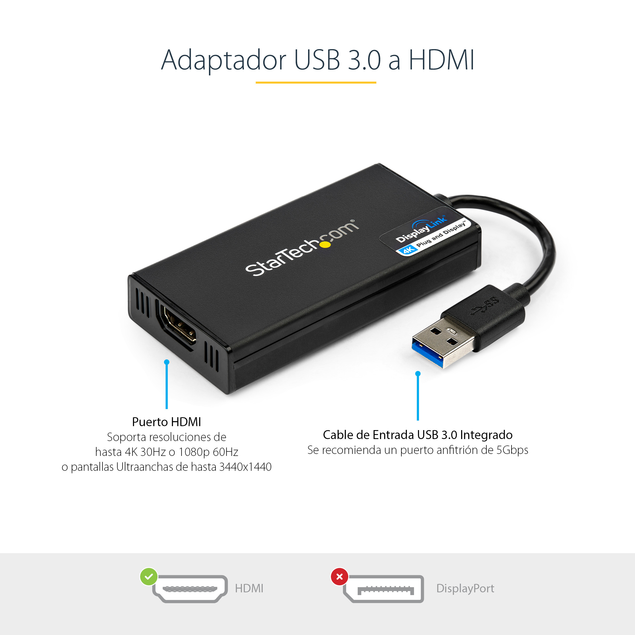• Requires available USB 3.0 port for optimal performance; USB 2.0 may limit resolution and refresh rates.