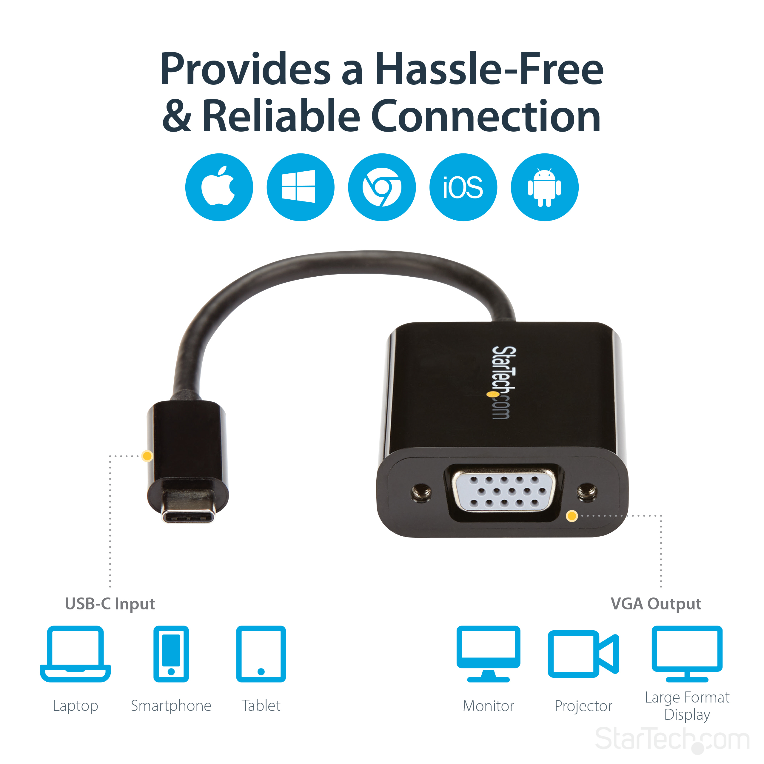 • Plug-and-play USB-C to VGA connectivity