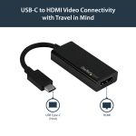 The StarTech.com CDP2HD4K60 USB graphics adapter features a sleek, compact design that fits easily into any workspace or travel bag. Its durable casing ensures longevity, while the minimalist aesthetic complements professional environments. The lightweight form factor makes it convenient for IT teams to deploy across multiple locations or for employees working remotely.