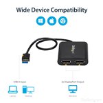 - Enhances workspace efficiency by enabling multiple monitors from a single USB port.
