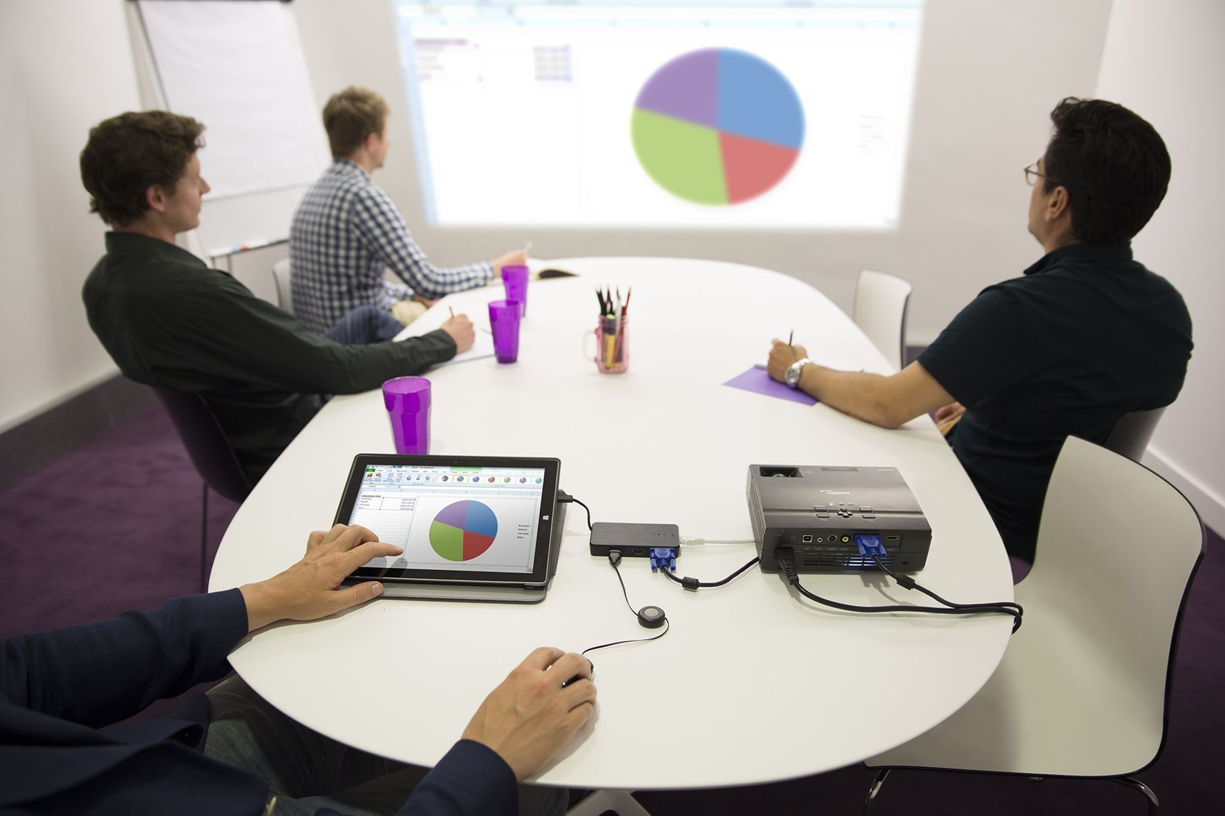 - Supports high-resolution displays, enabling crisp visuals for presentations and multitasking.